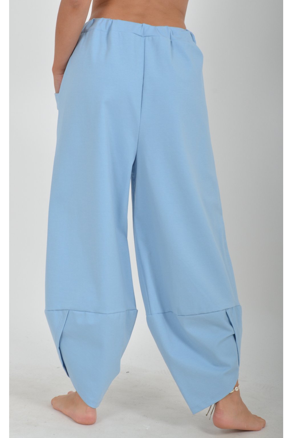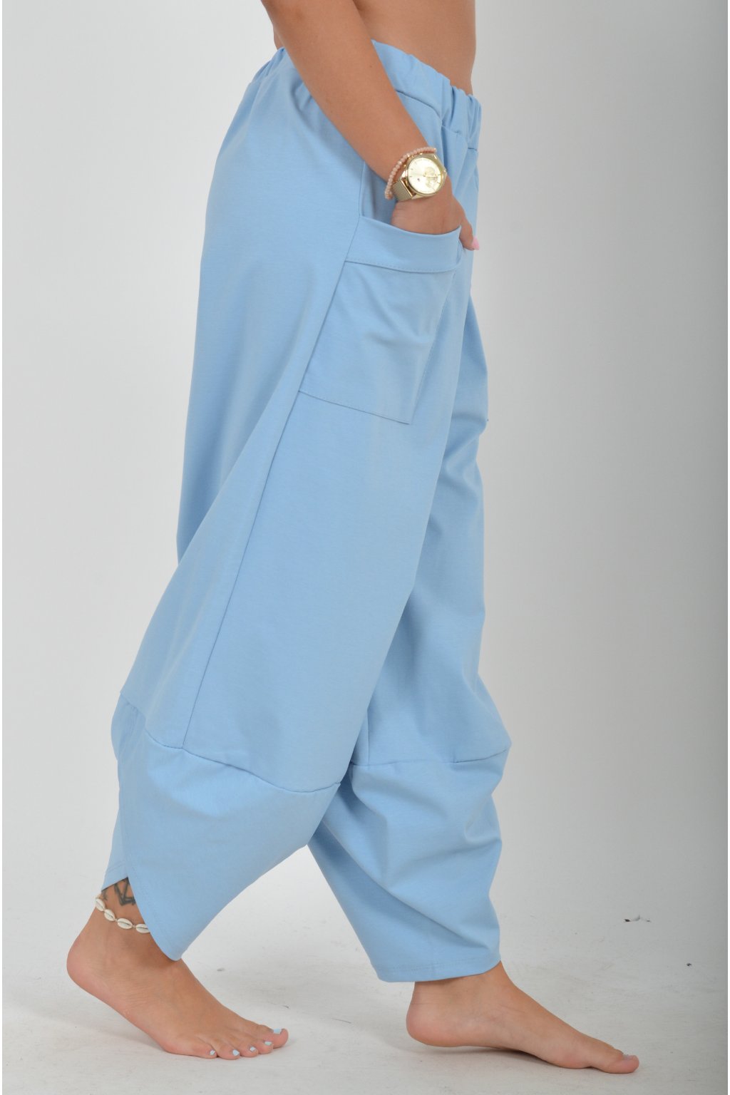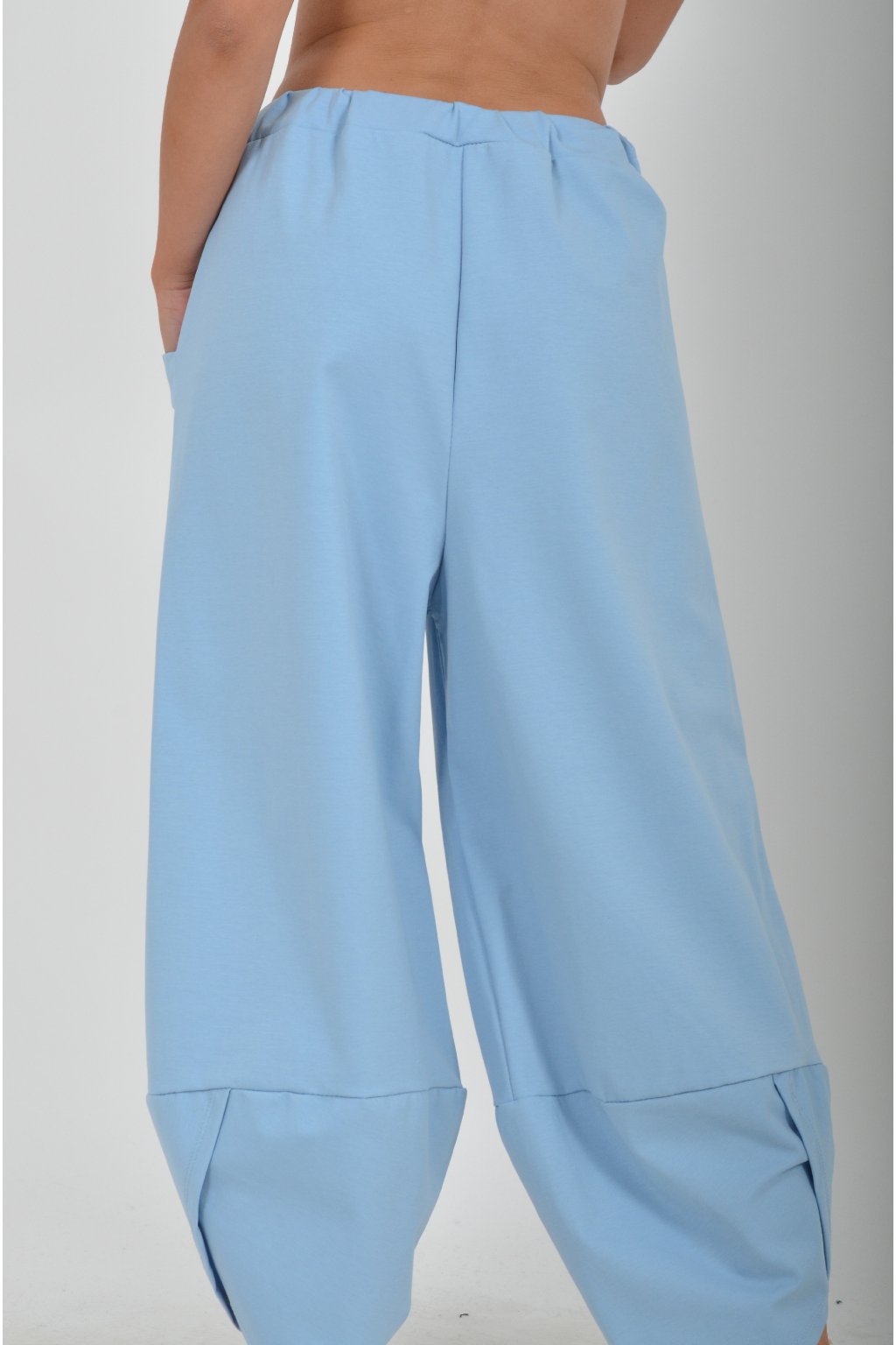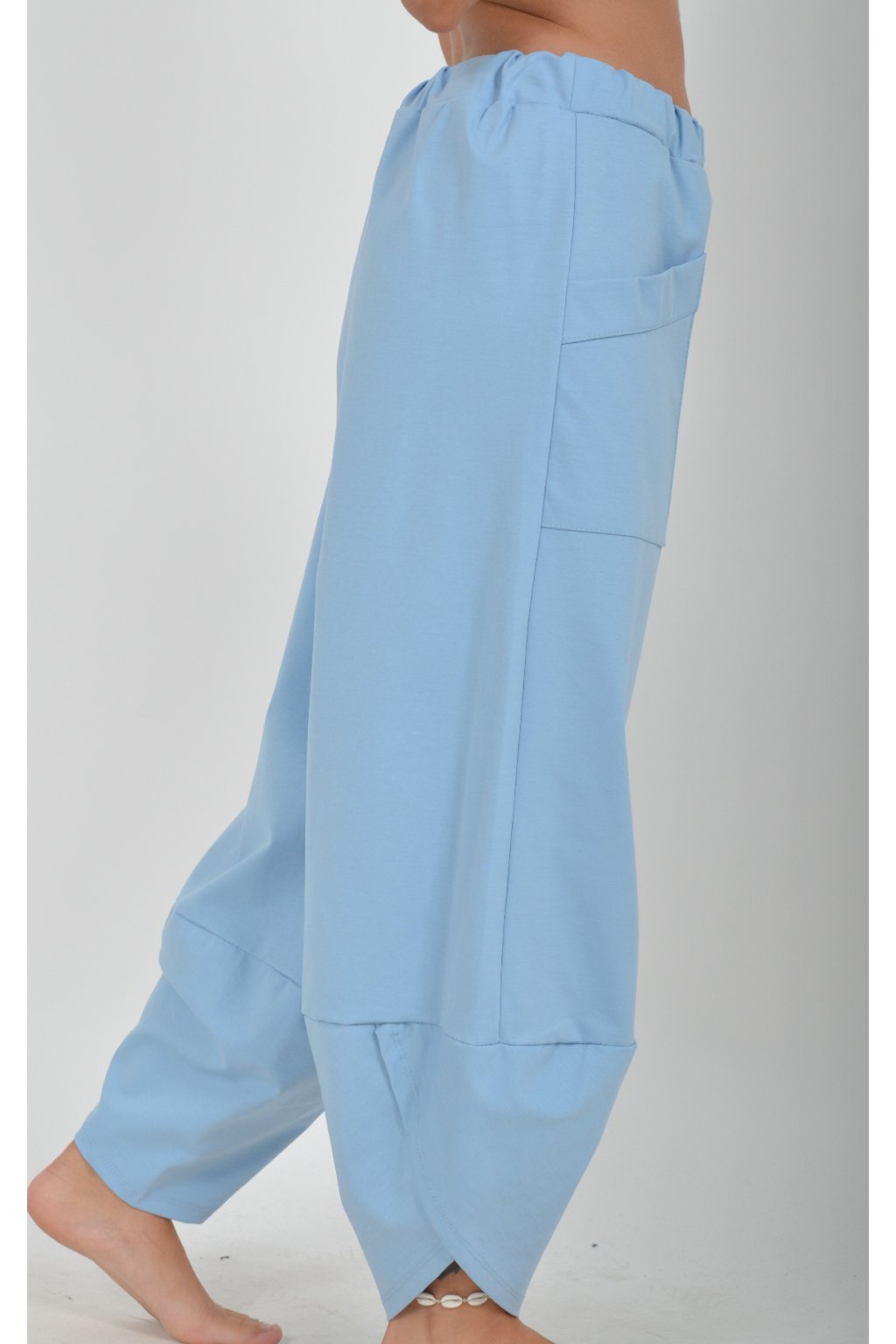 Volnější kalhoty teplákového stylu s kapsami v přední části. Mají v pase zapracovanou gumu a jsou velice příjemné pro pohodlné nošení.