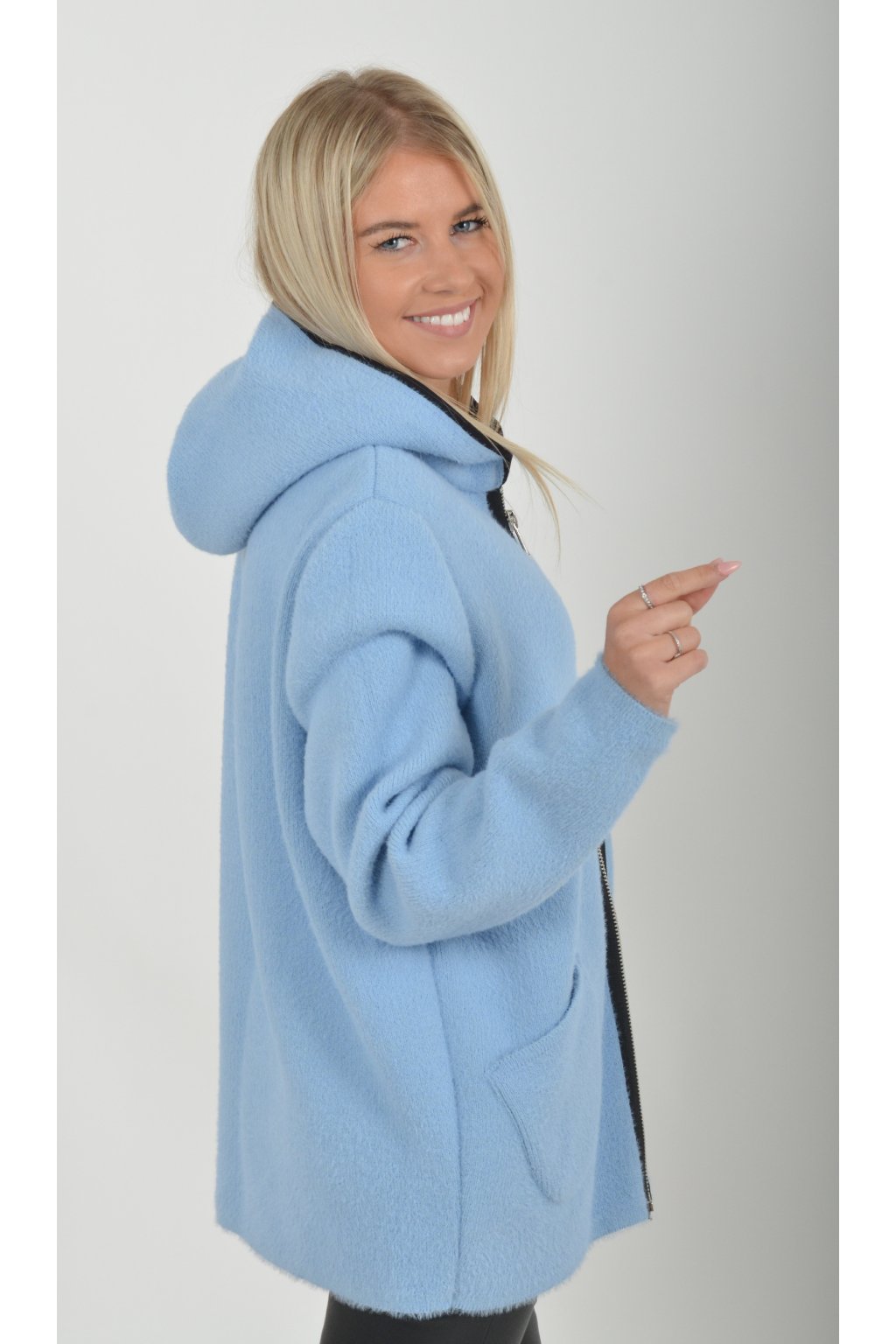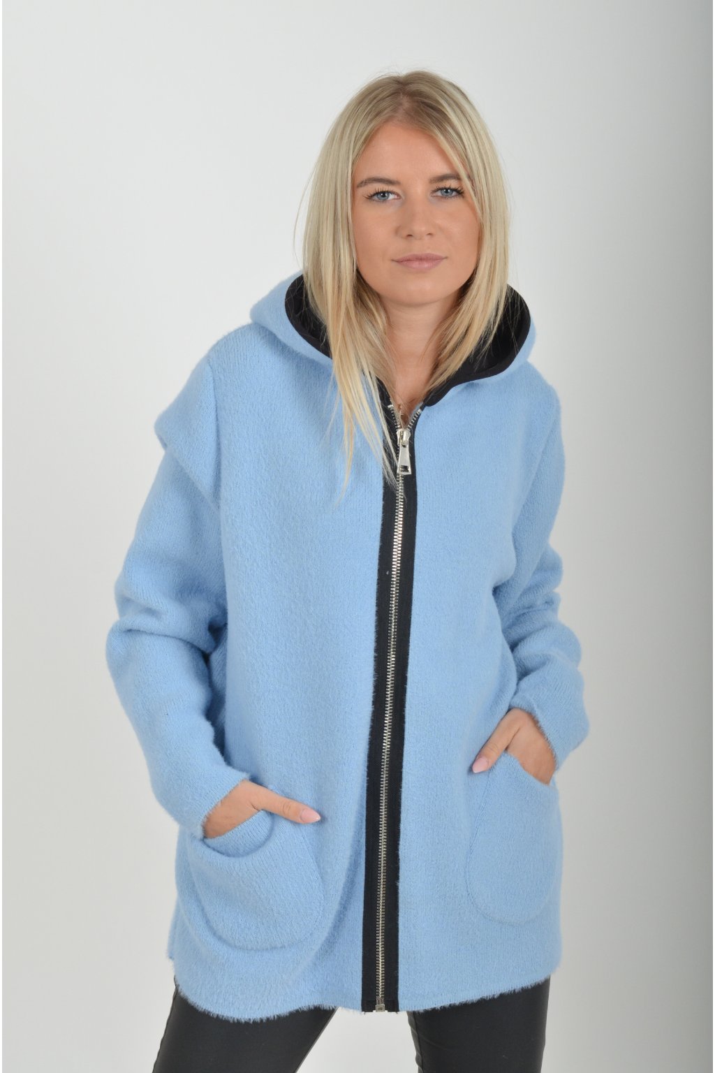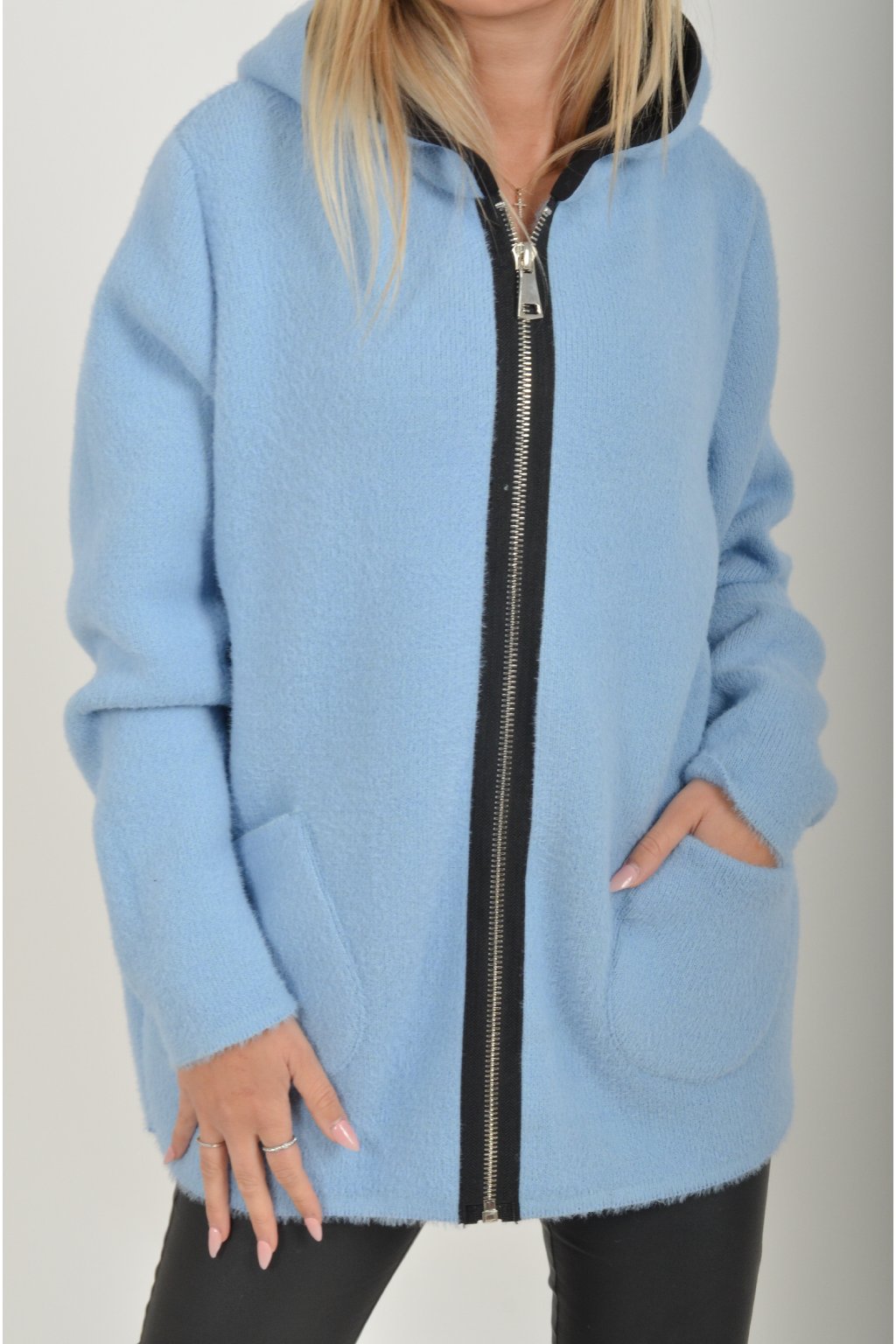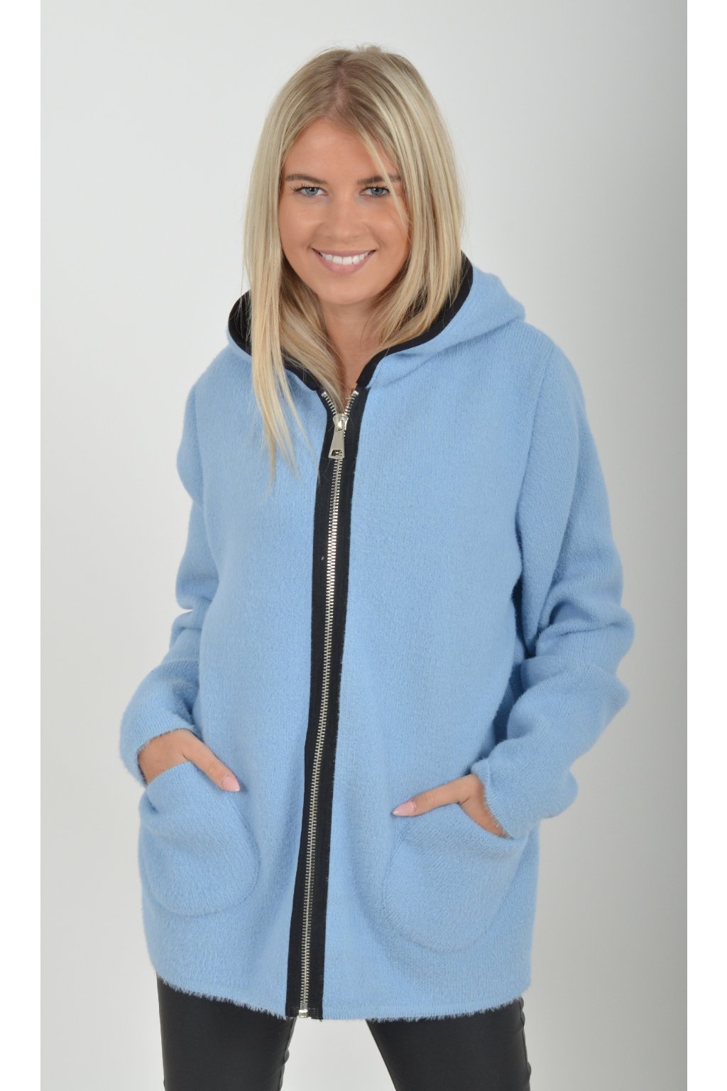Teplý svetr na zip, v přední části má kapsy. Materiál je velice příjemný.