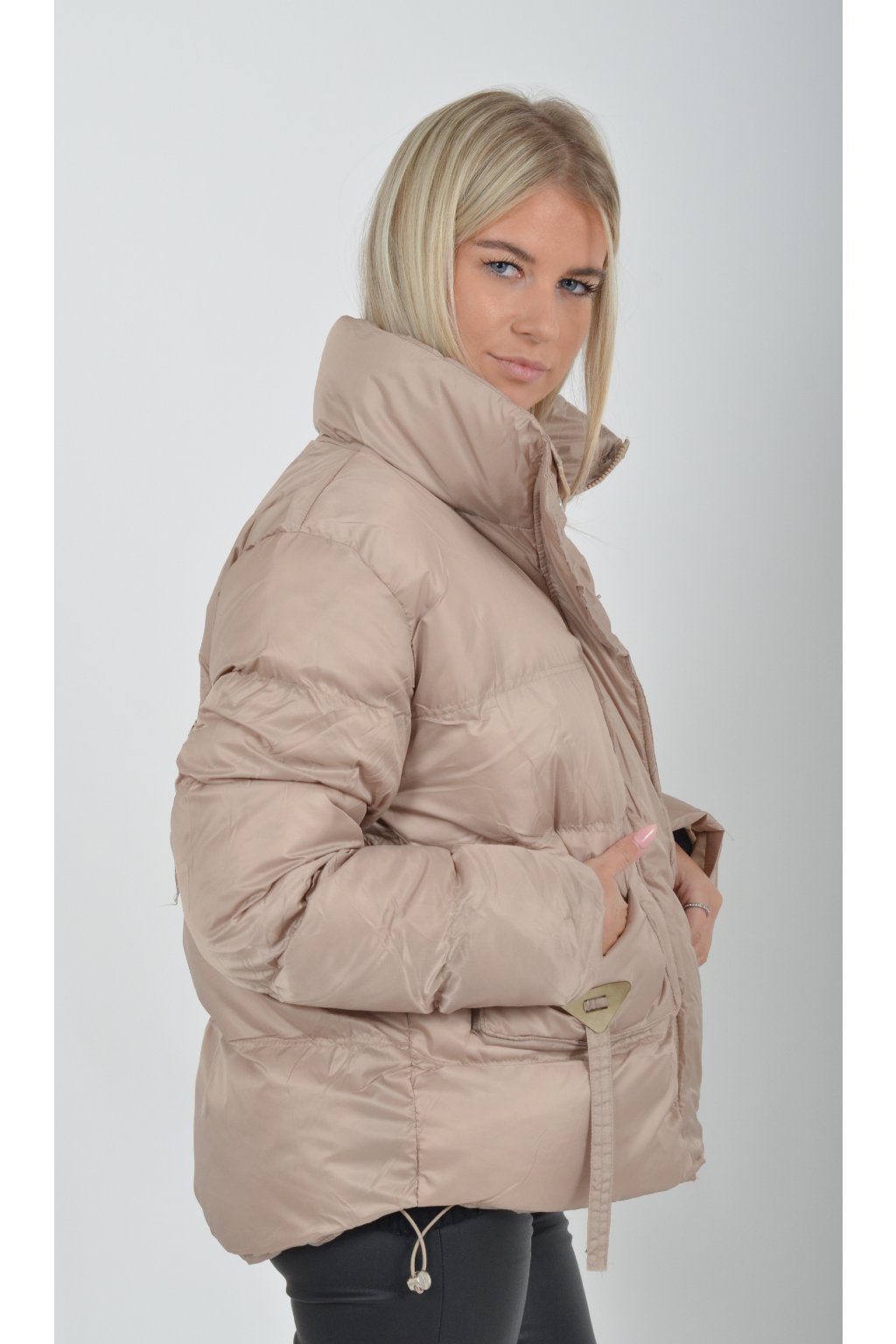Prošívaná zimní bunda. V přední části má kapsy as na bocích jsou šňůrky pro libovolné stažení. Je vyrobena z velice příjemného materiálu. Jako doplněk doporučujeme šátek z naší nabídky.