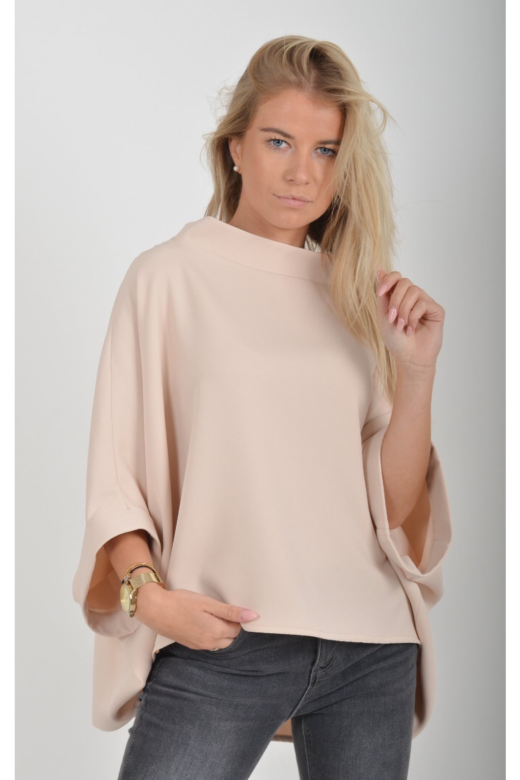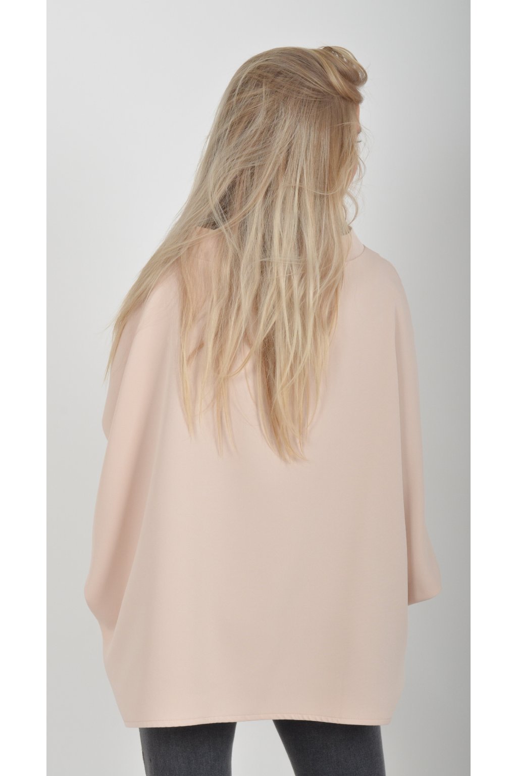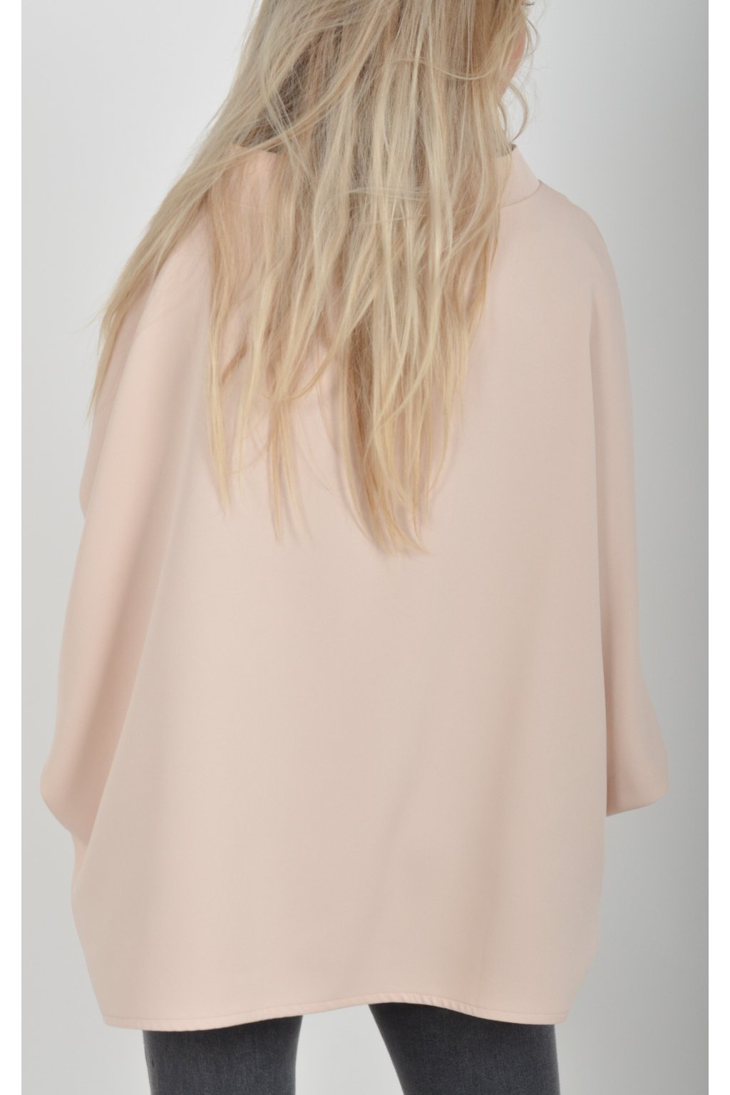 Halenka s netopýřím rukávem vhodná jak pro společenské události, tak i volnočasové nošení. Je vyrobena z velice příjemného a pevného materiálu. Přední část halenky je kratší než zadní. Je volnějšího střihu.