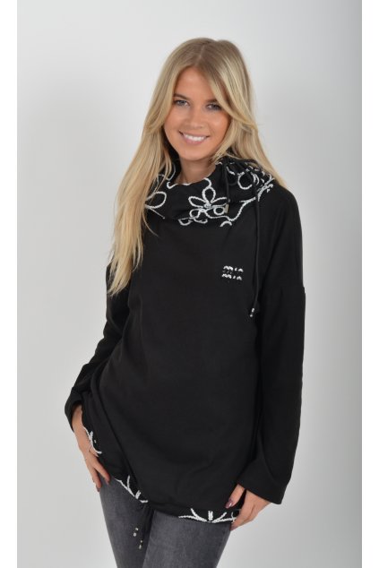 Mikina s vyšívaným vzorem na kapuci a spodní části. Je vyrobena z velice příjemného materiálu na dotek. Ve spodní části a u krku má zapracovanou tkaničku, která slouží k libovolnému stažení. Hodí se jak k džínům, tak i k legínám. Heboučký materiál zaručí příjemně strávený den.