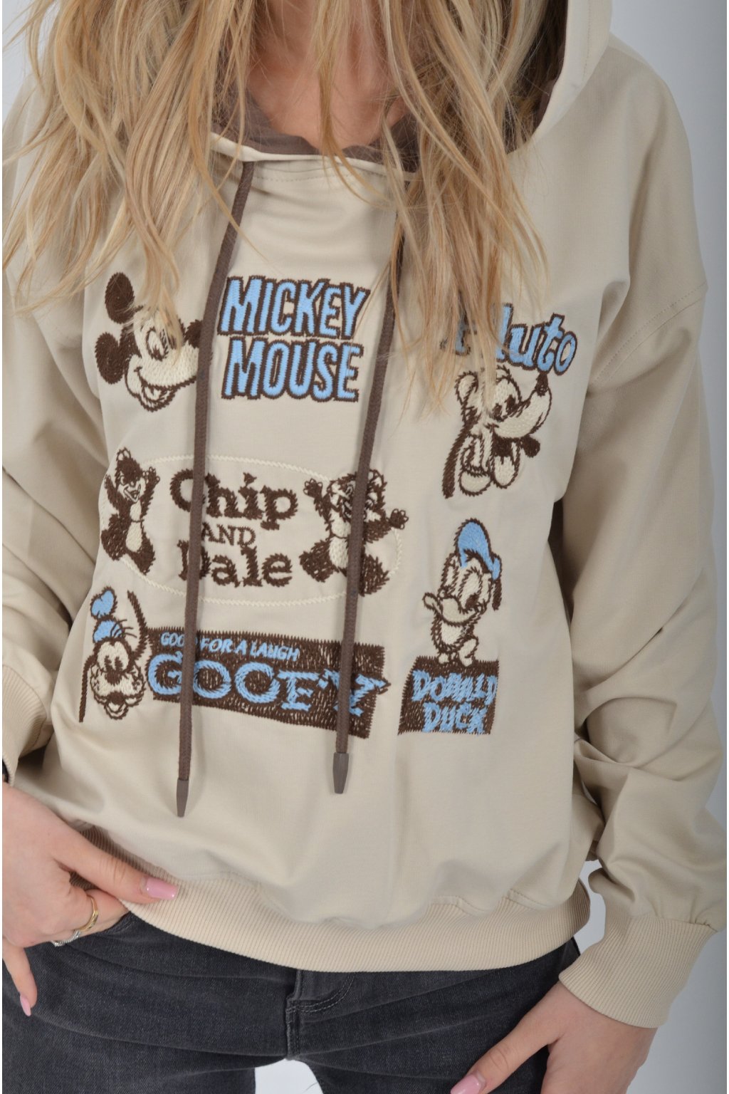 Mikina turecké značky Megi s dlouhým rukávem, kapucí a vyšívaným vzorem Mickey Mouse. Je ideální pro nošení do jarního počasí. Mikina je vyrobena z velice kvalitní turecké bavlny. Ve spodní části je do rantlu.