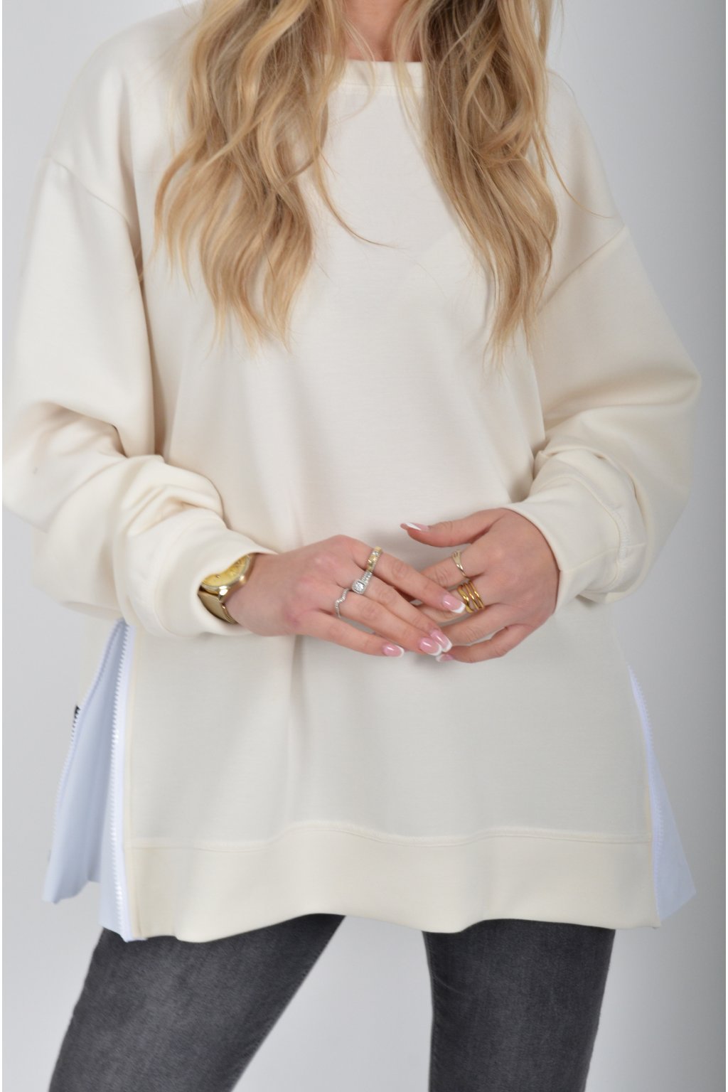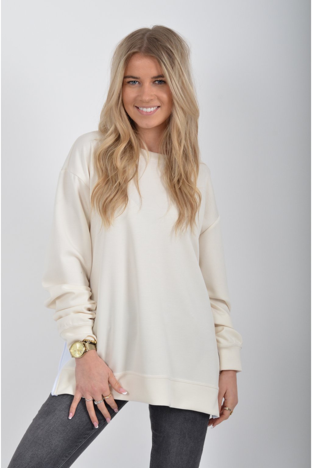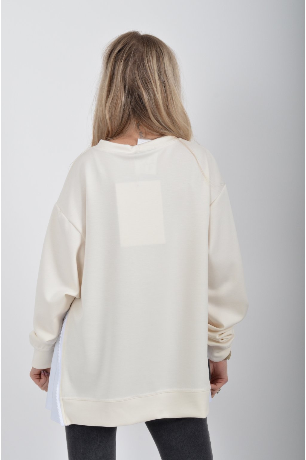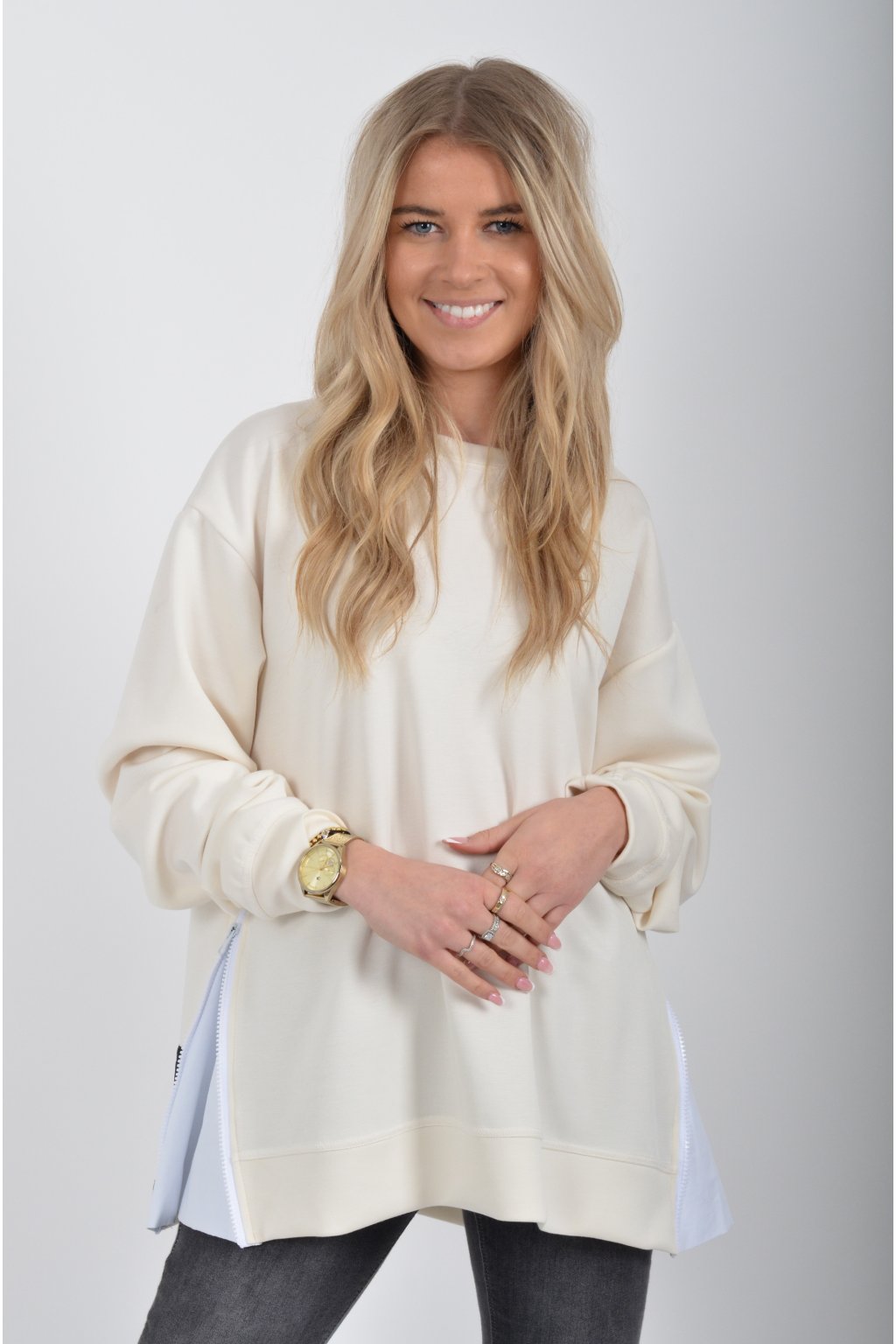 Mikina značky Miss City Official. Je vyrobena z velice příjemného materiálu. Na bocích má zipy, pomocí kterých lze udělat na halence rozparky.