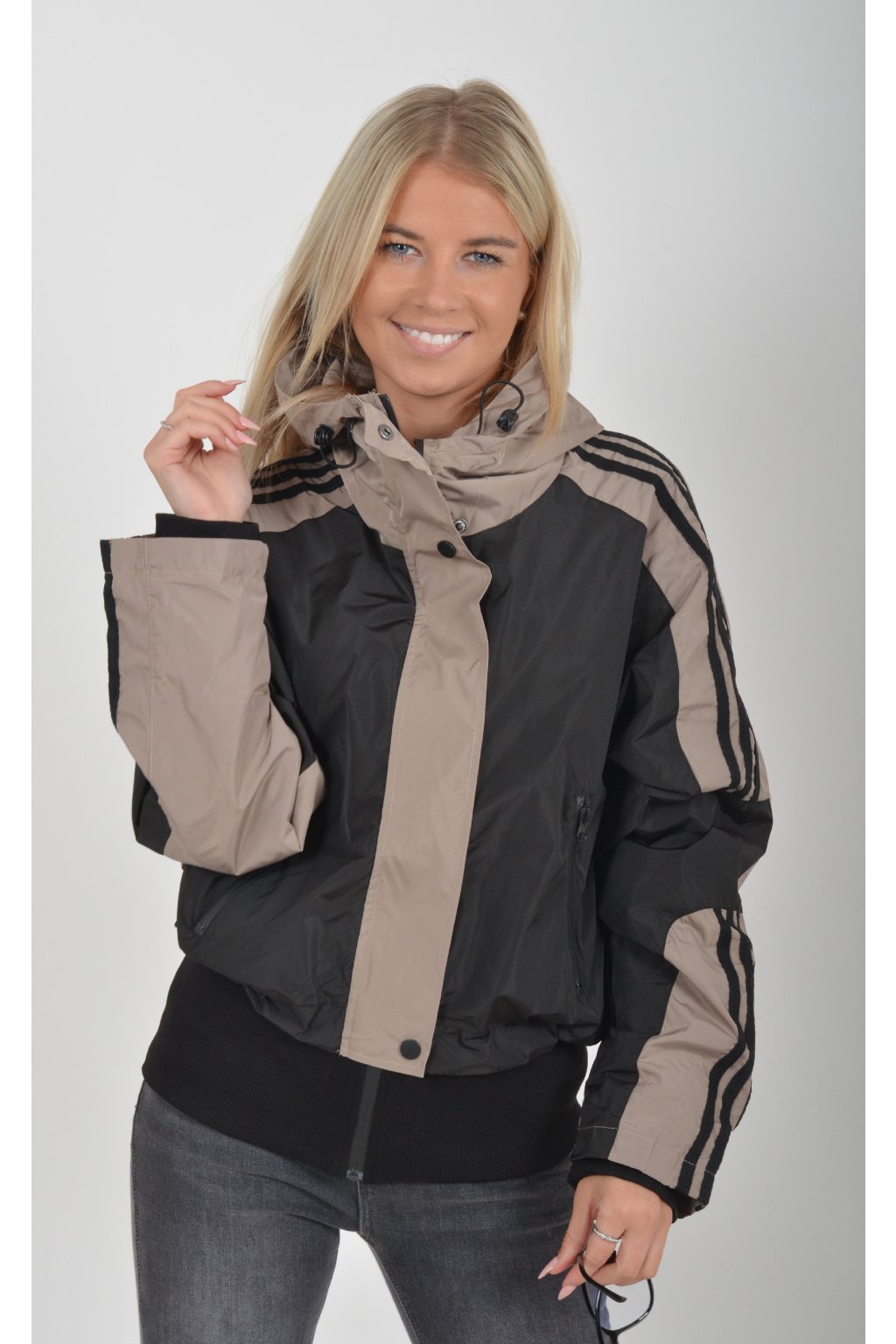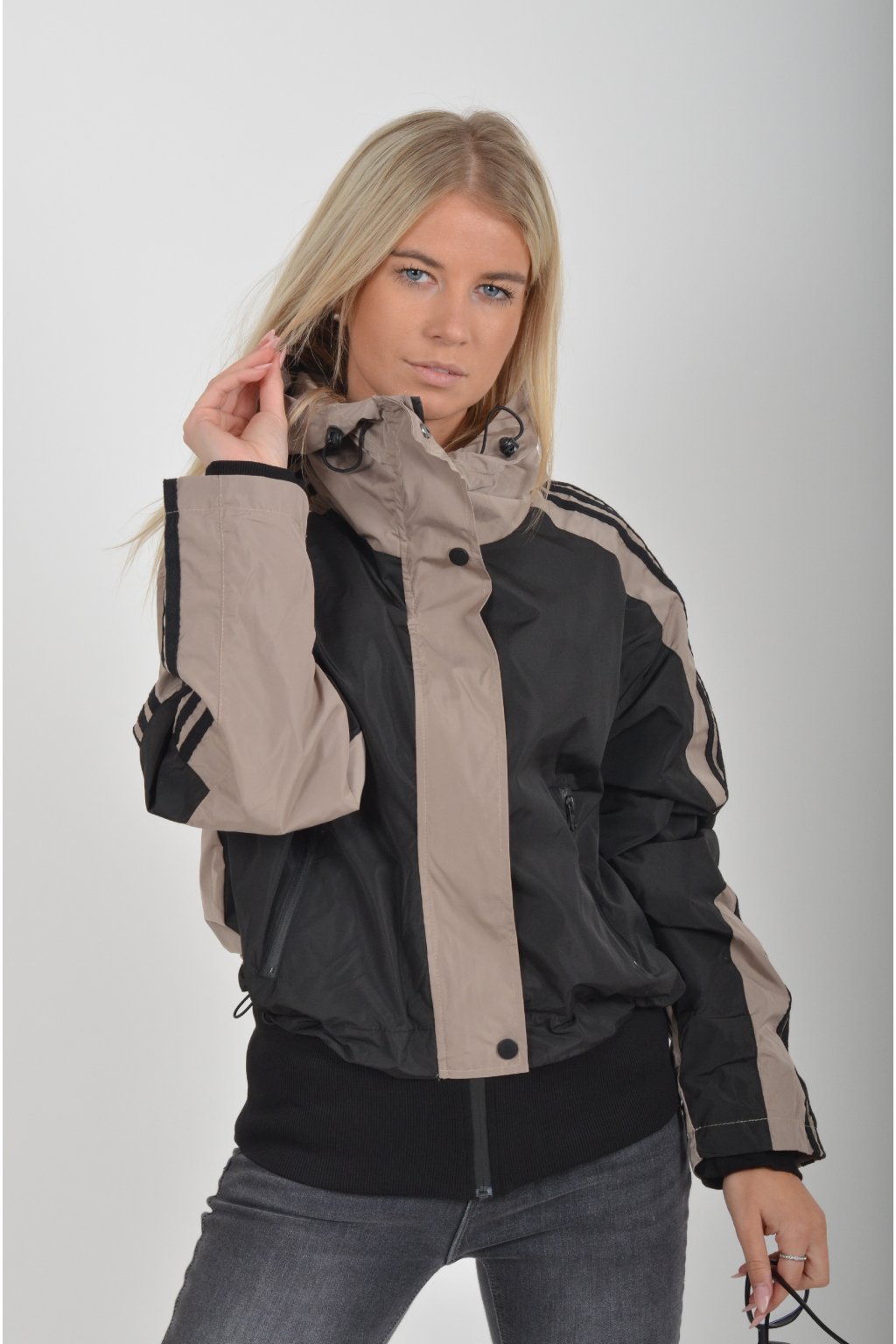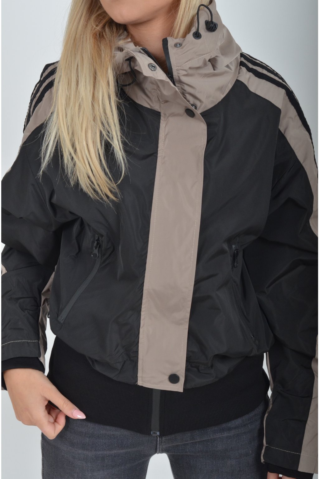 Přechodová nepromokavá bunda s podšívkou a náplety ve spodní části a na rukávech. Ve spodní části a u krku je zapracovaná guma pro libovolné stažení. Bunda má zapínaní na zip přes který je lem na patenty. V přední části jsou kapsy na zip.