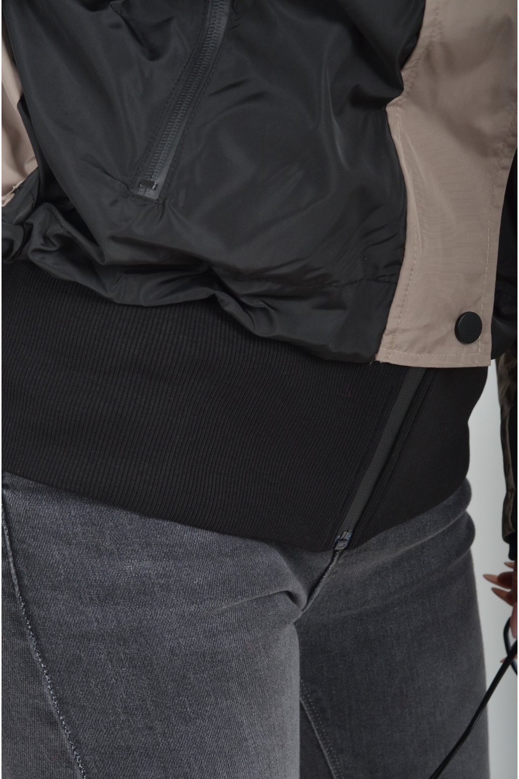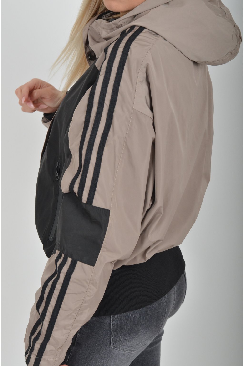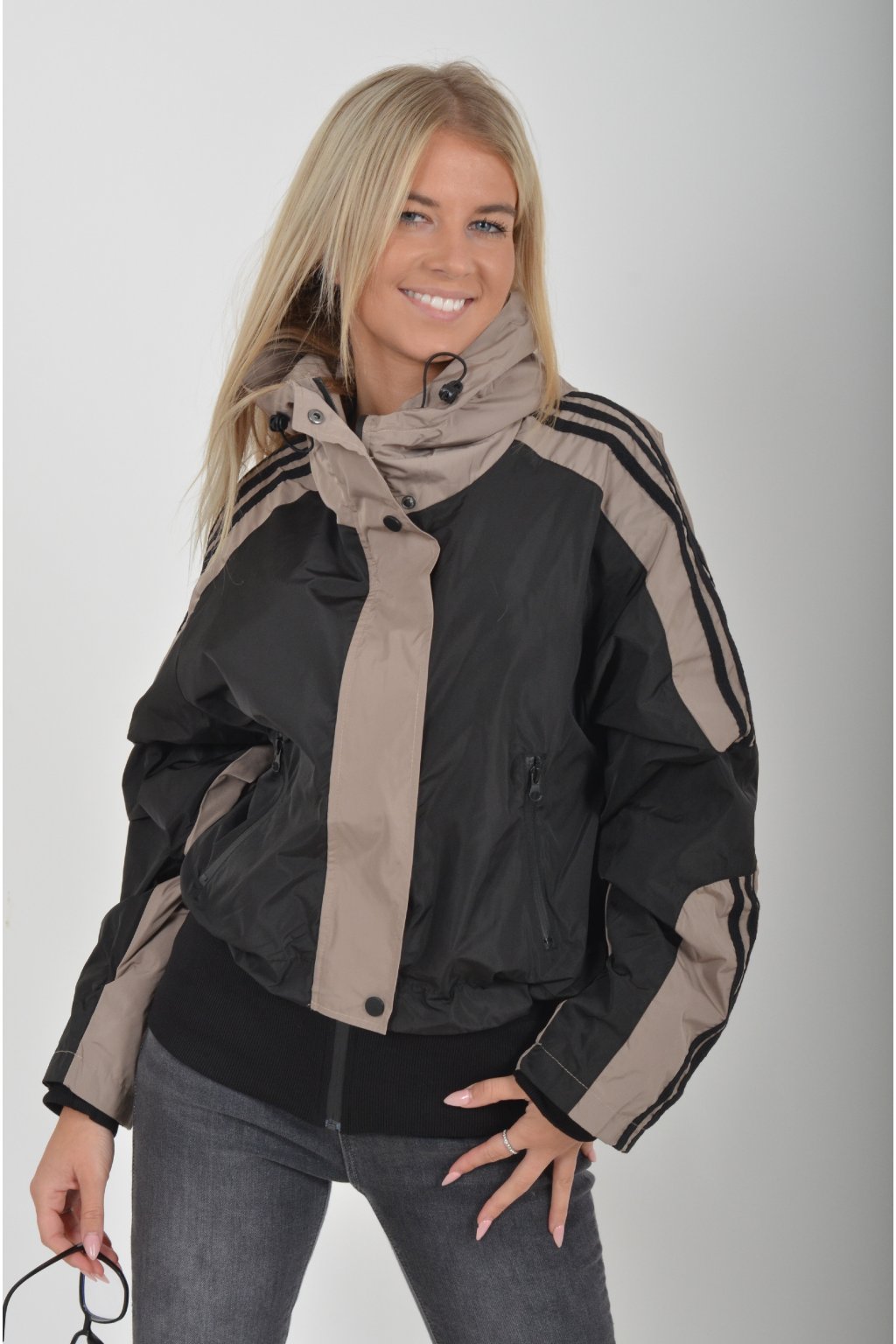 Přechodová nepromokavá bunda s podšívkou a náplety ve spodní části a na rukávech. Ve spodní části a u krku je zapracovaná guma pro libovolné stažení. Bunda má zapínaní na zip přes který je lem na patenty. V přední části jsou kapsy na zip.