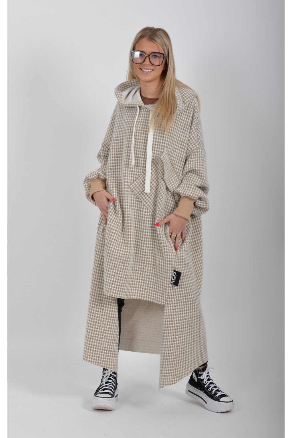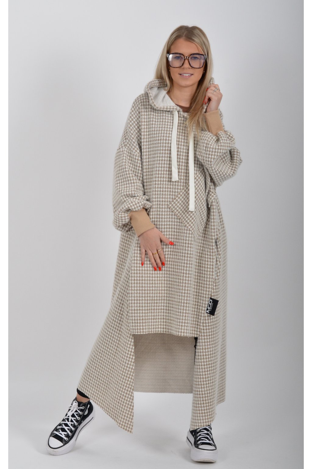 Mikinové dlouhé šaty značky Miss City Official. Šaty mají rovný střih, kapuci, kapsy v na bocích a jednu v přední části. Spodní část šatů je "vykouslá" Jsou vyrobené z velice příjemného, kvalitního a lehce zatepleného materiálu.