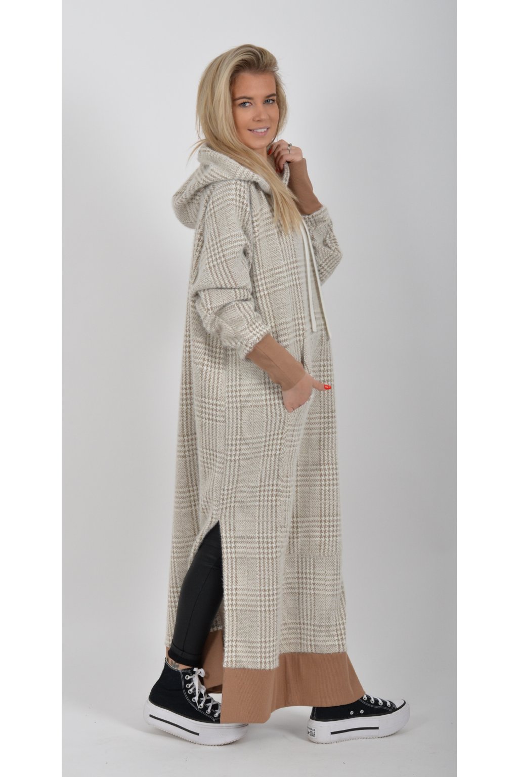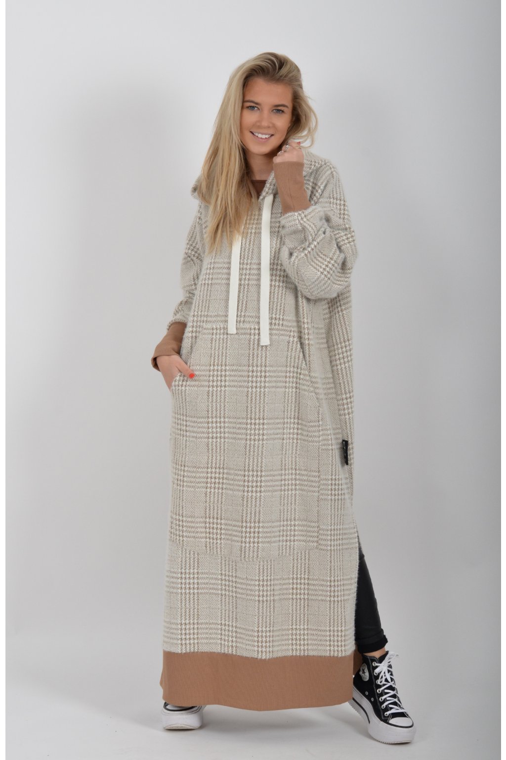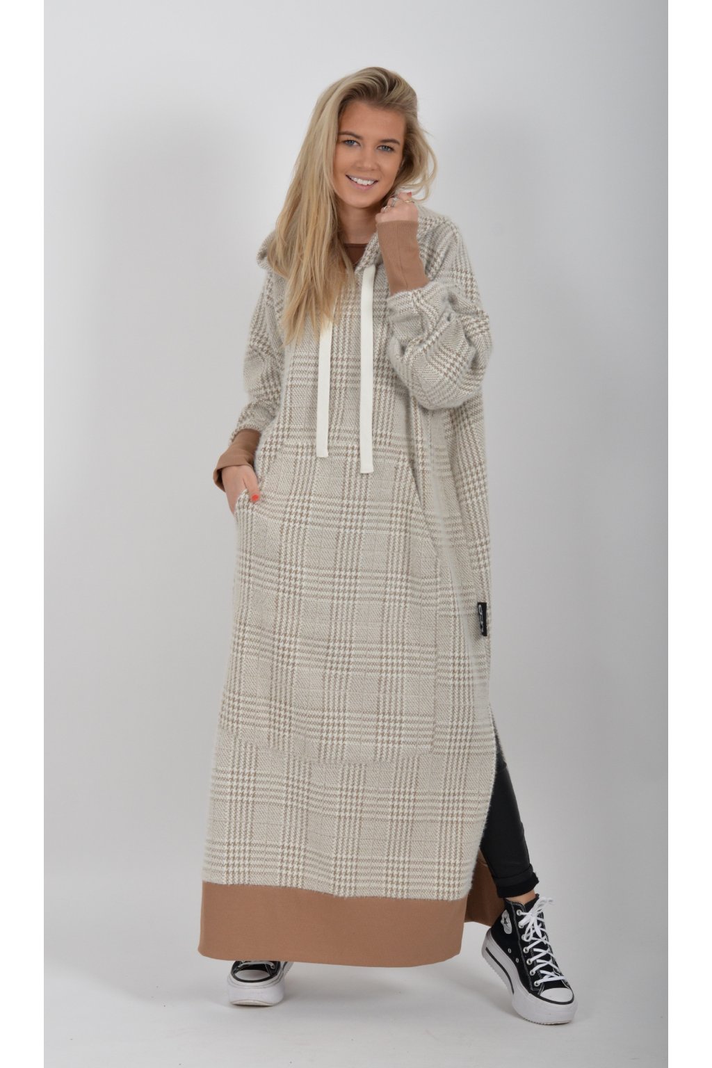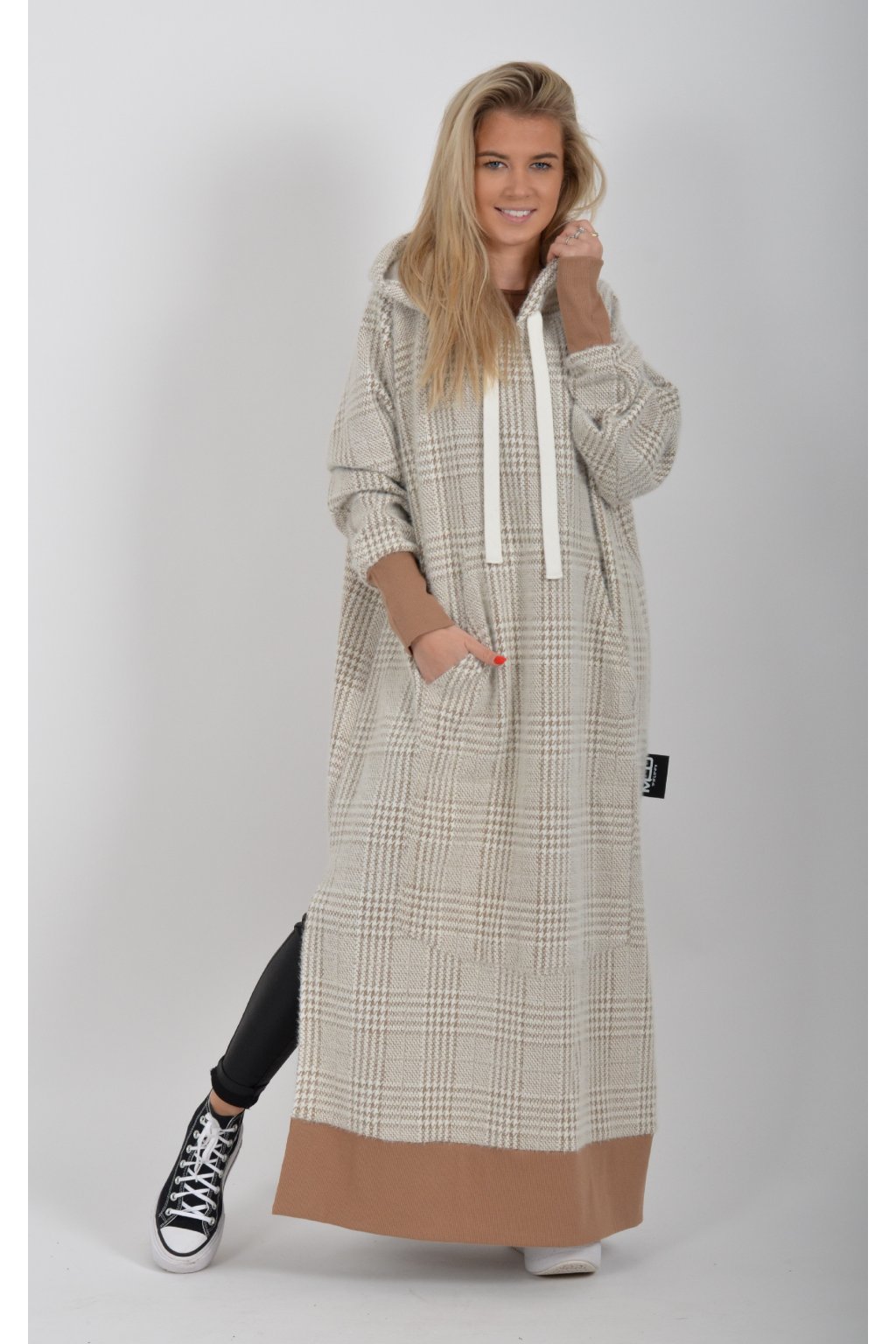 Mikinové dlouhé šaty značky Miss City Official. Šaty mají rovný střih, rozparky, dlouhý rukáv a kapuci. V přední části je našitá klokaní kapsa. Jsou vyrobené z velice příjemného, kvalitního a lehce zatepleného materiálu.