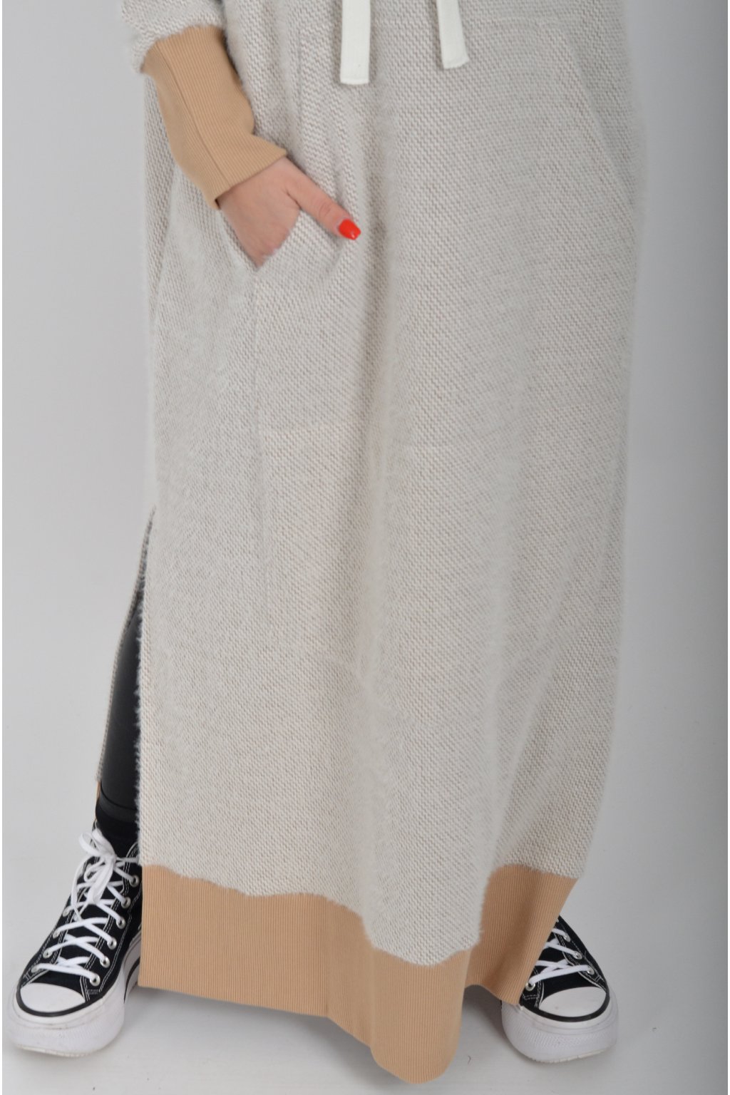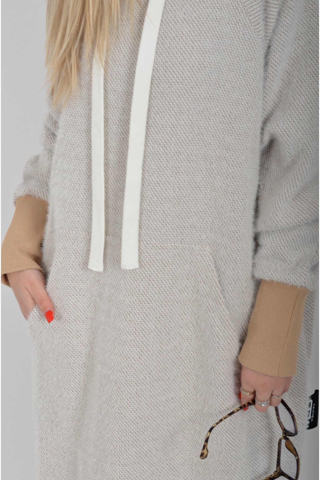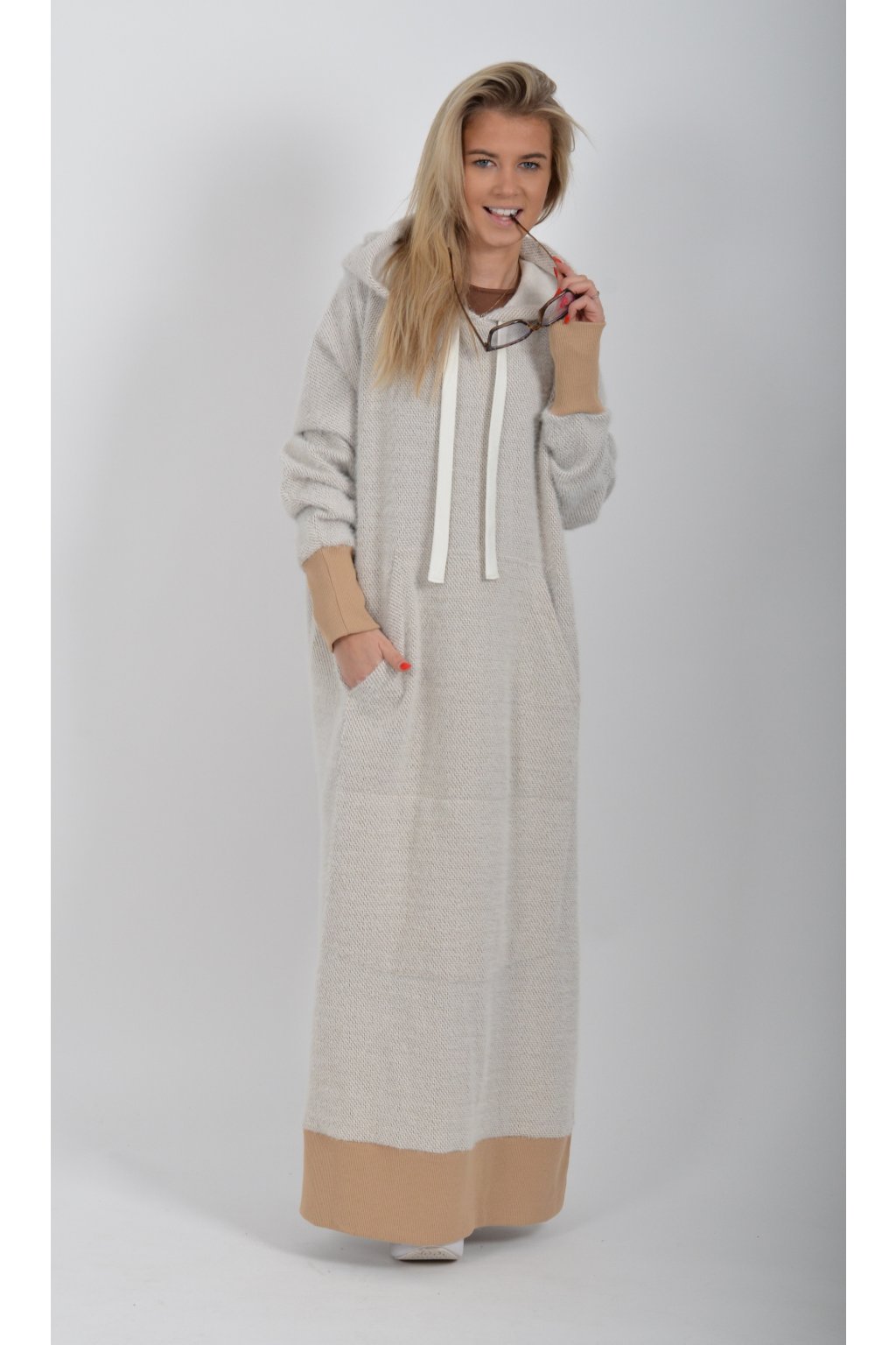 Mikinové dlouhé šaty značky Miss City Official. Šaty mají rovný střih, rozparky, dlouhý rukáv a kapuci. V přední části je našitá klokaní kapsa. Jsou vyrobené z velice příjemného, kvalitního a lehce zatepleného materiálu.