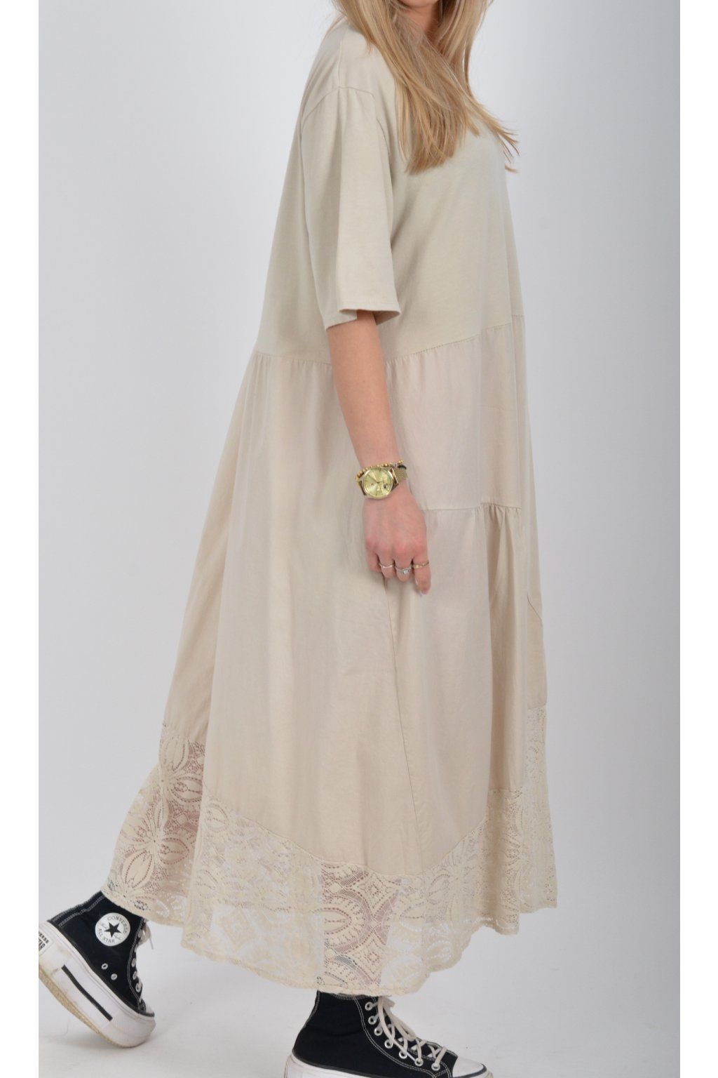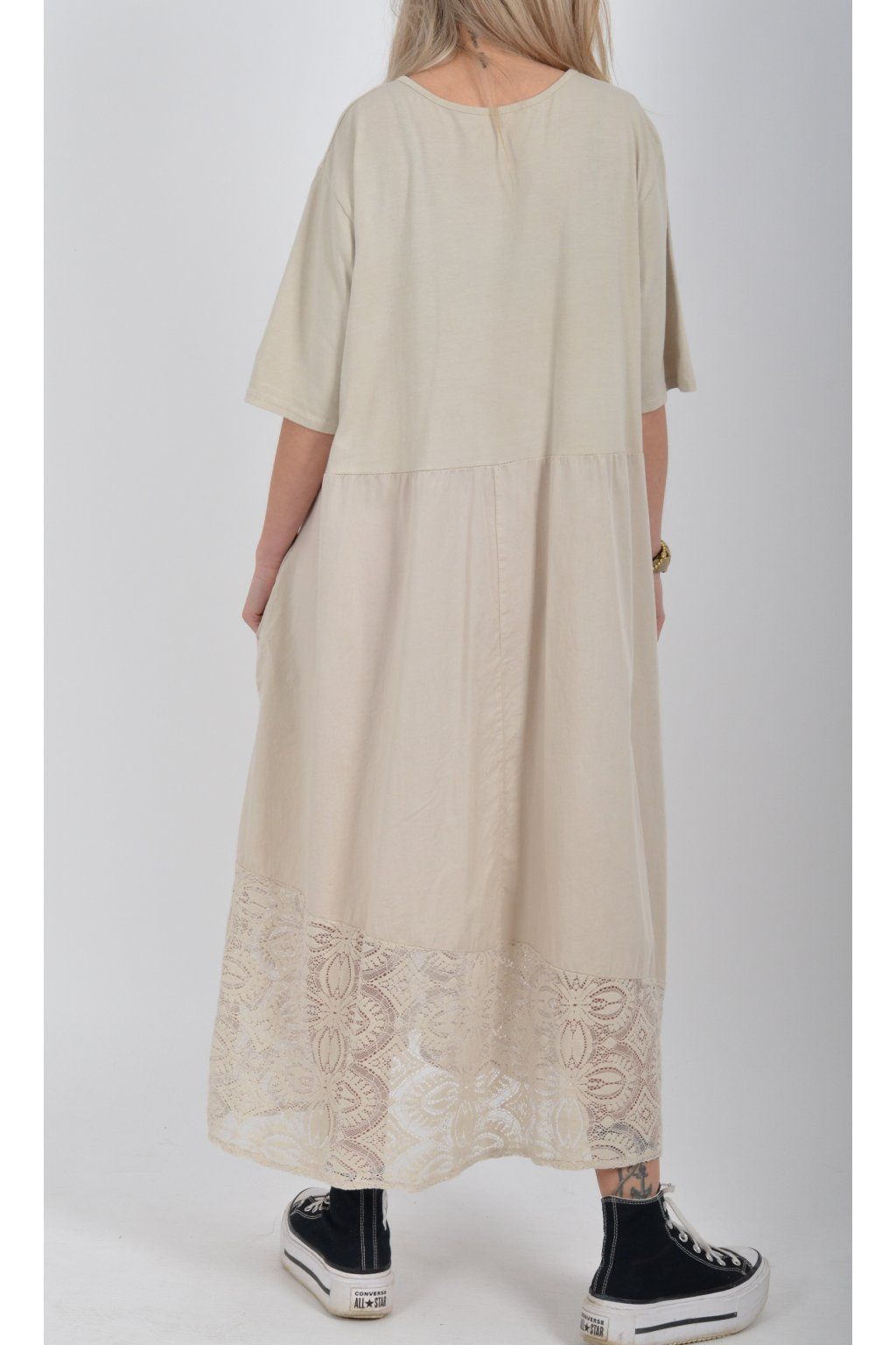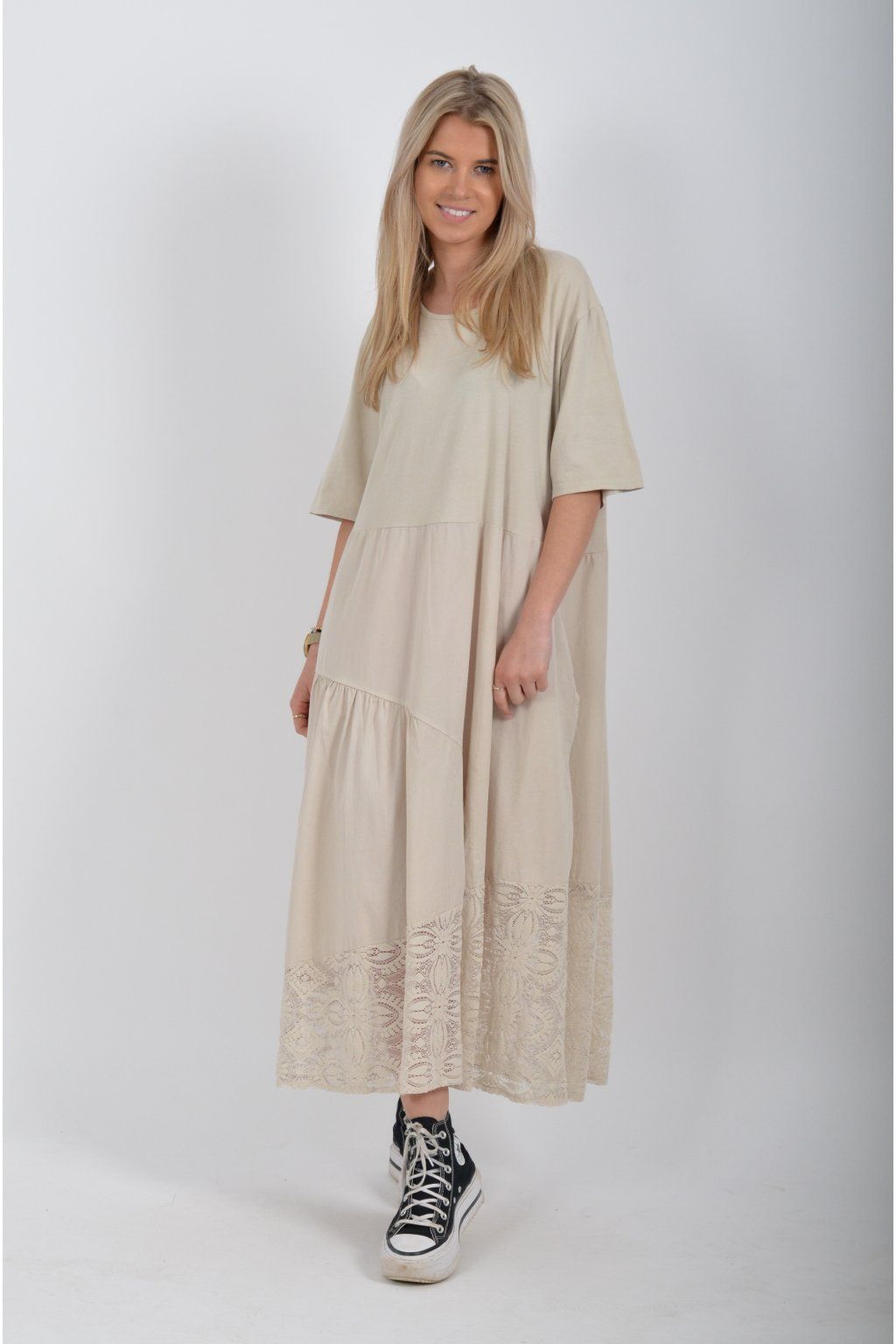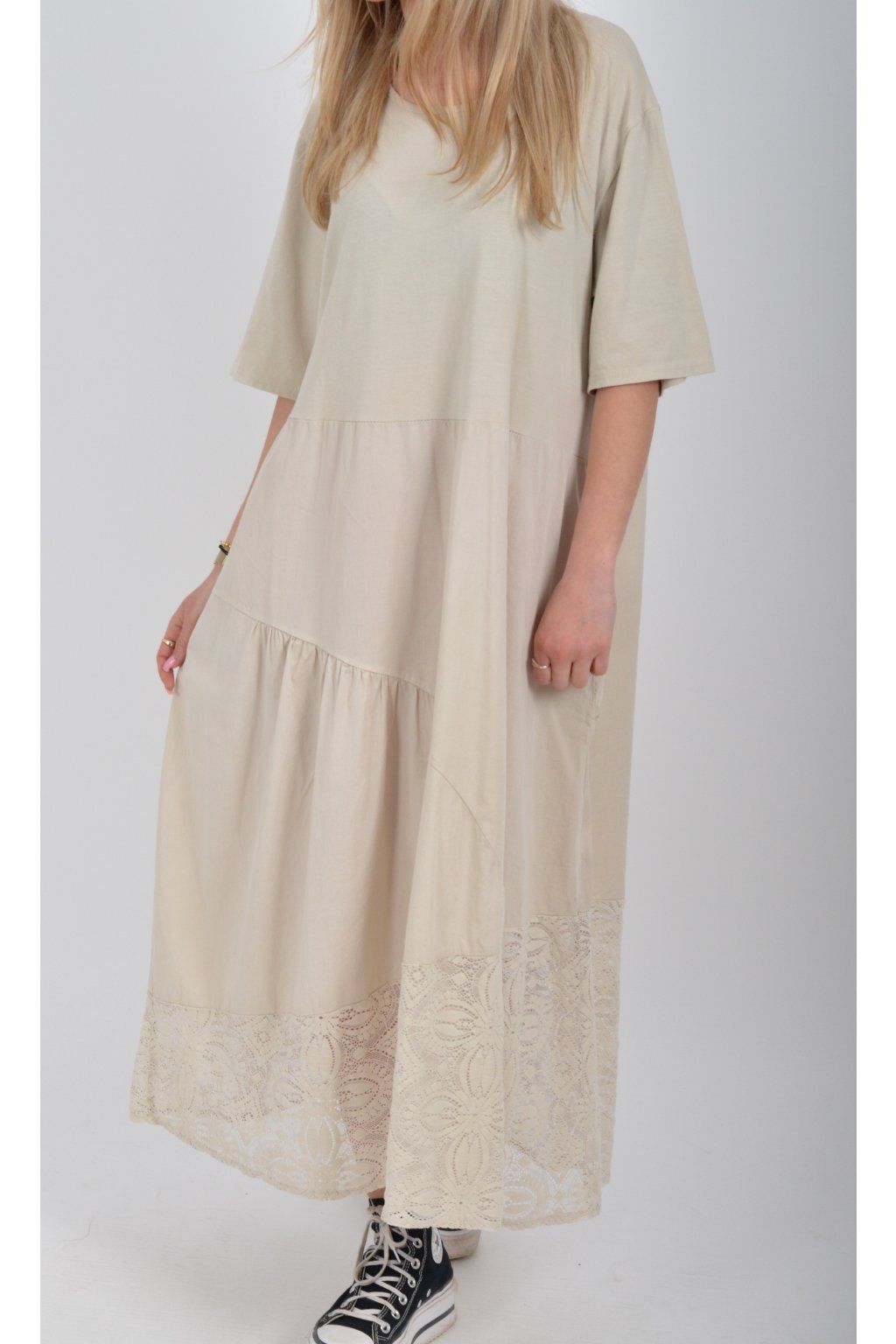 Zajímavé bavlněné šaty s krajkou ve spodní části. Šaty mají áčkový střih, na bocích kapsy a krátké rukávy. Jsou vyrobené z velice příjemného a lehce pružného materiálu.