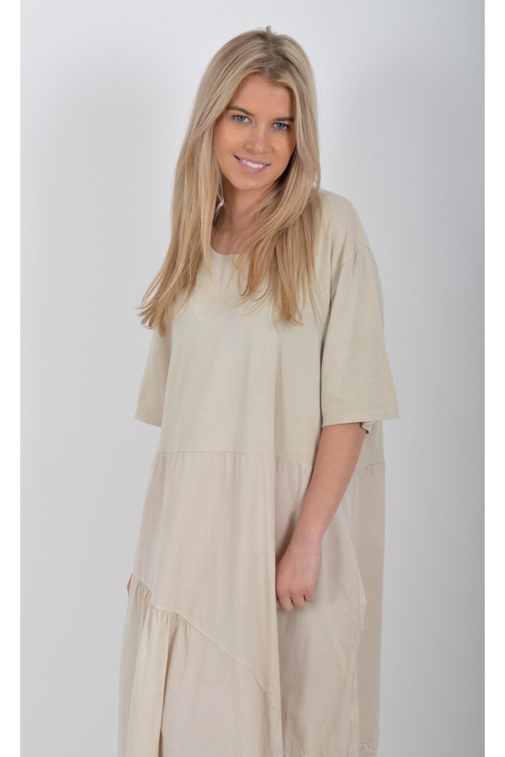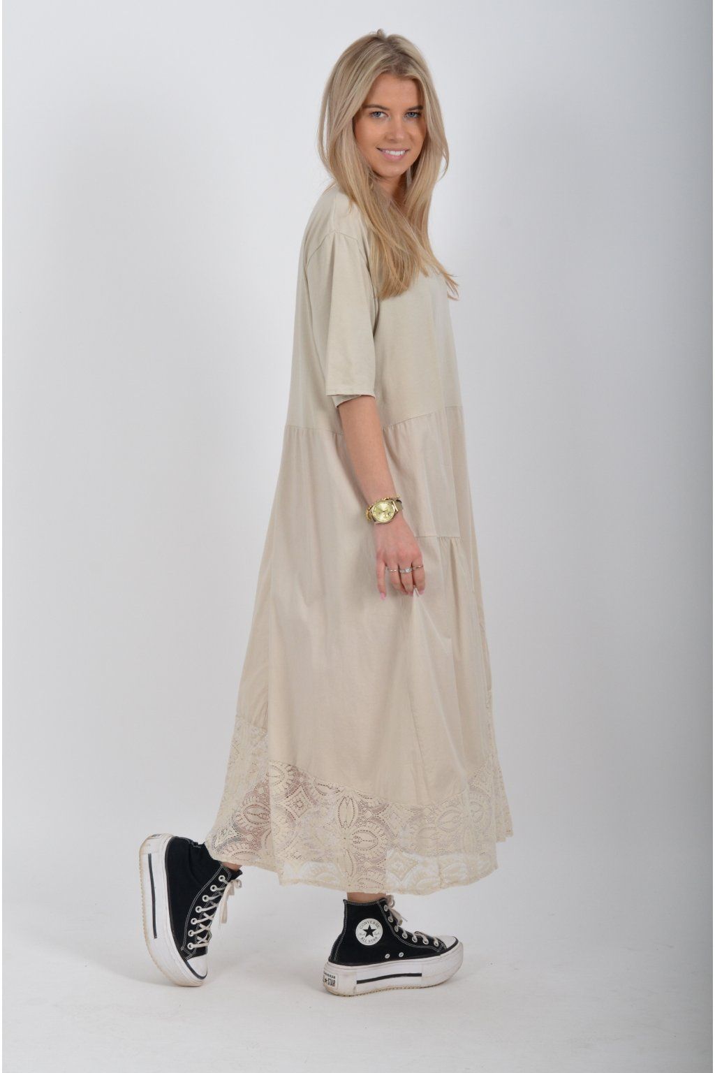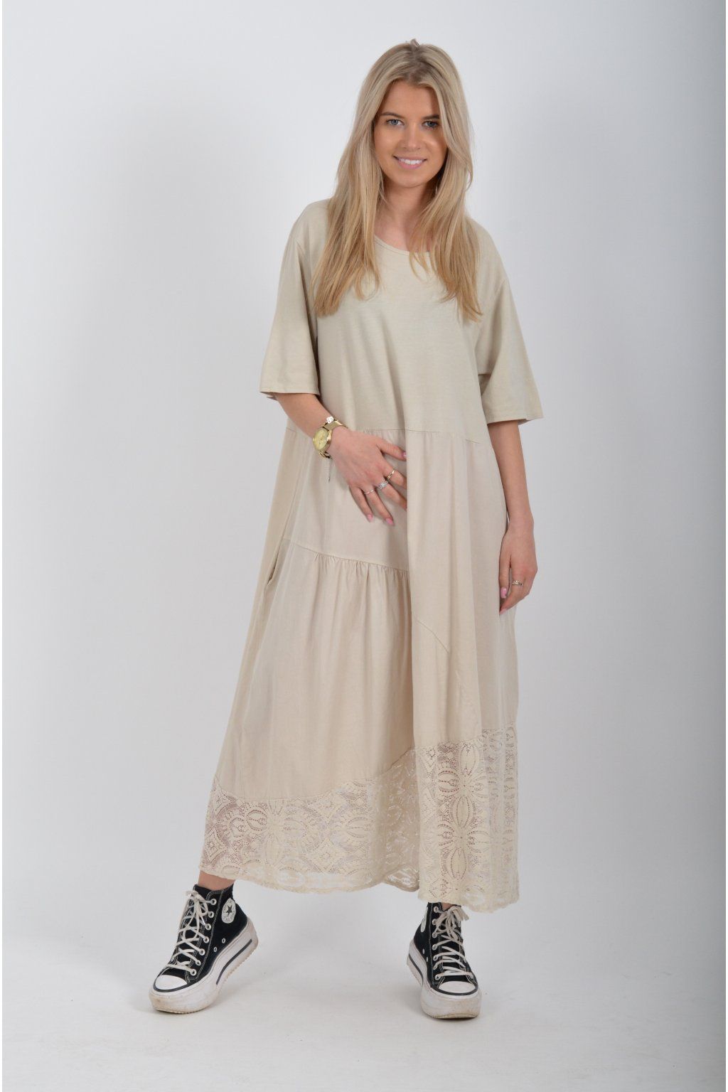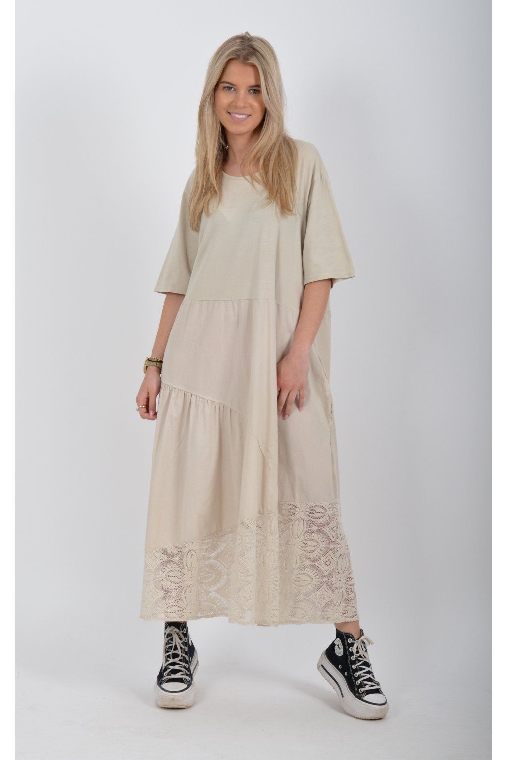 Zajímavé bavlněné šaty s krajkou ve spodní části. Šaty mají áčkový střih, na bocích kapsy a krátké rukávy. Jsou vyrobené z velice příjemného a lehce pružného materiálu.