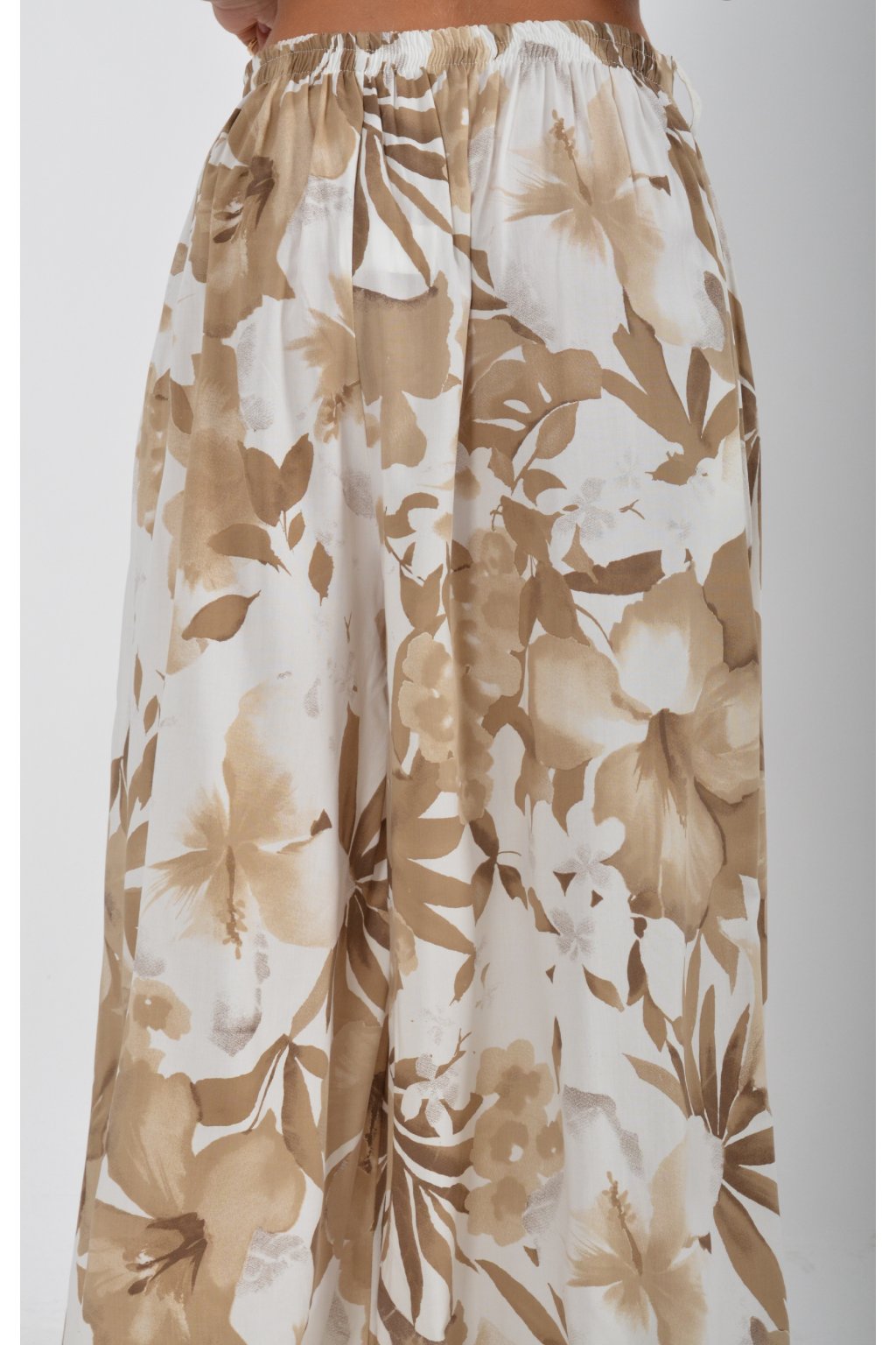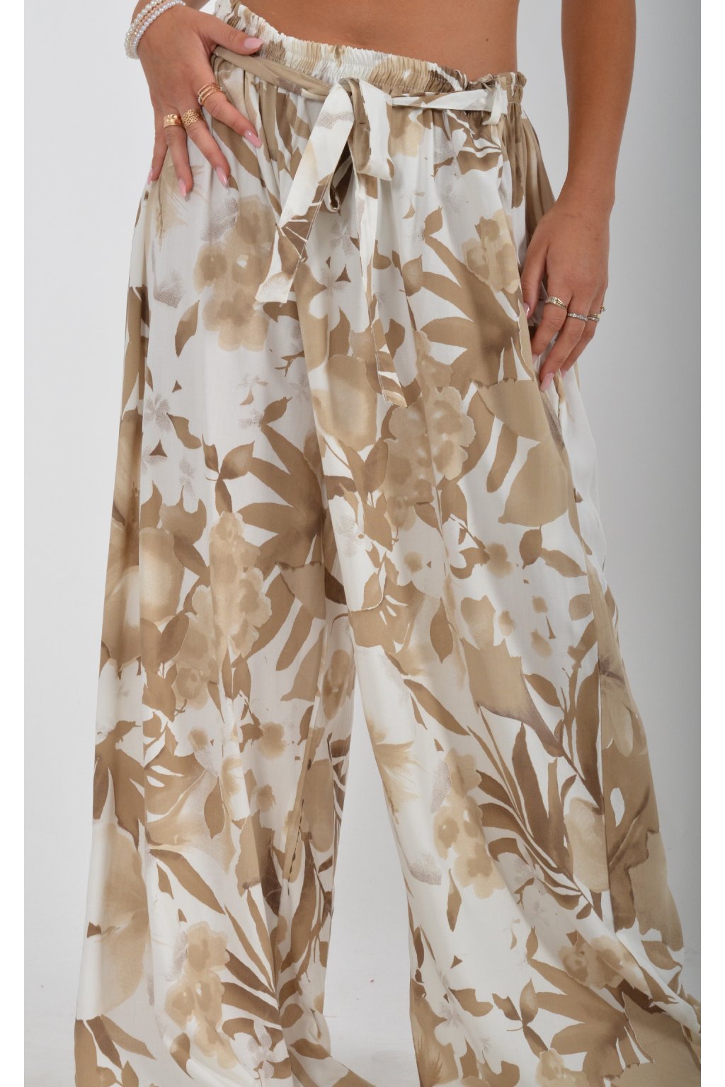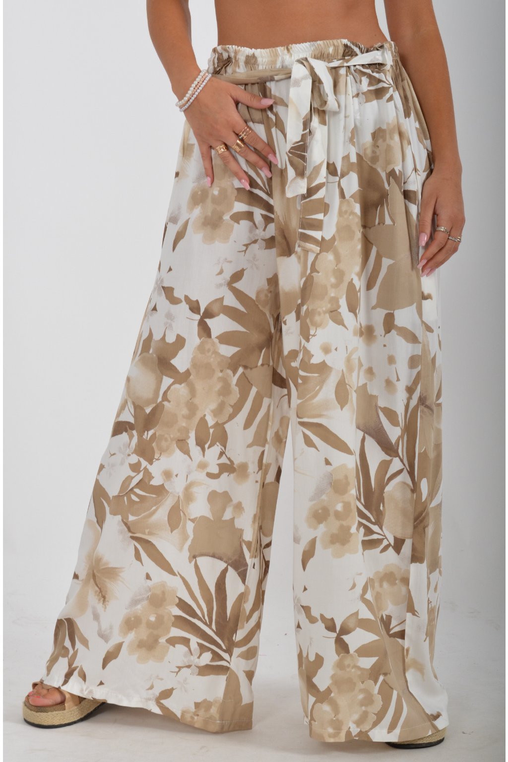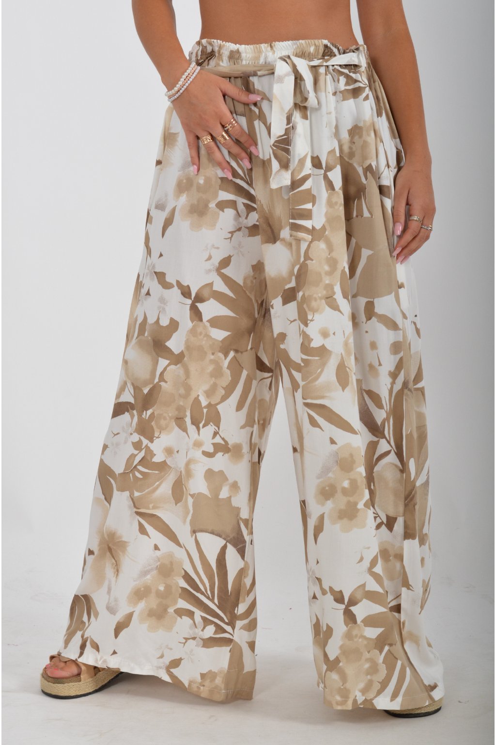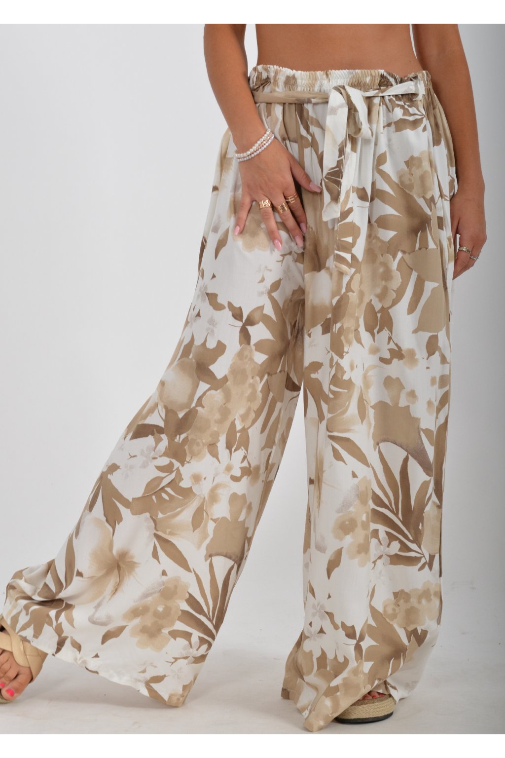 Dlouhé letní kalhoty z velice lehounkého a příjemného materiálu. Kalhoty mají vzor. V pase je zapracovaná guma a součástí kalhot je pásek pro libovolné stažení. Na bocích mají kapsy a jsou vhodné pro každodenní pohodlné nošení.