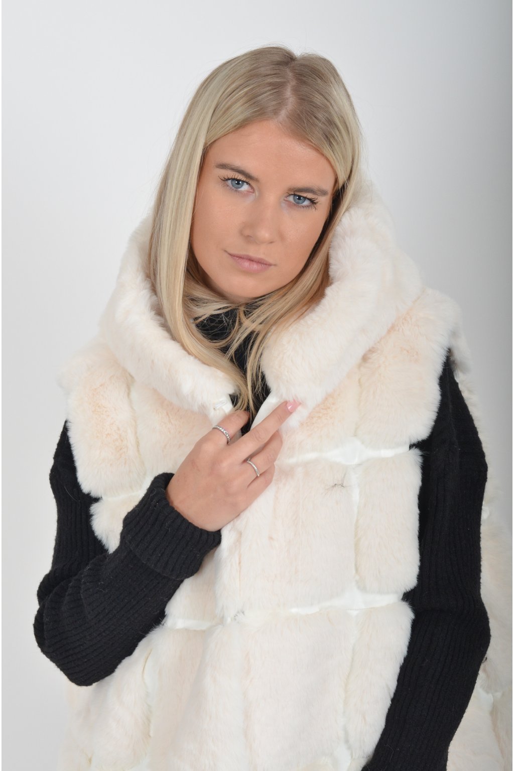 Luxusní kožíšek s podšívkou, kapucí a kapsami na bocích. Zapínaní kožíšku je na háčky. Materiál je na dotek velice heboučký. Ideální do chladných dní.