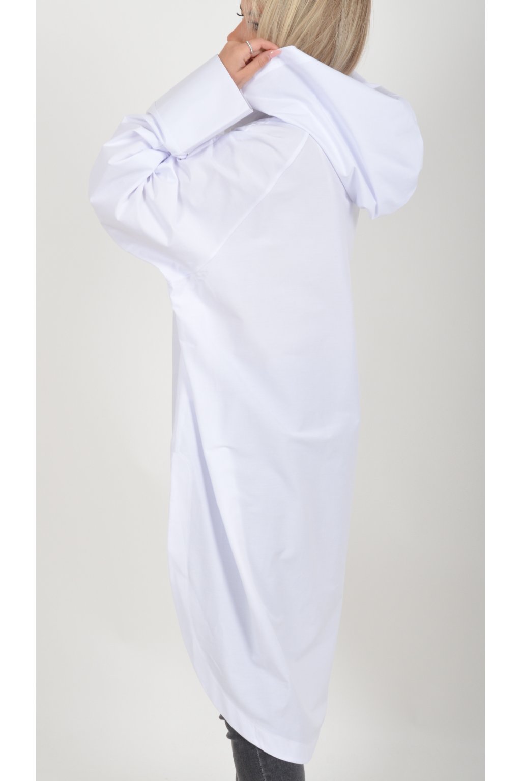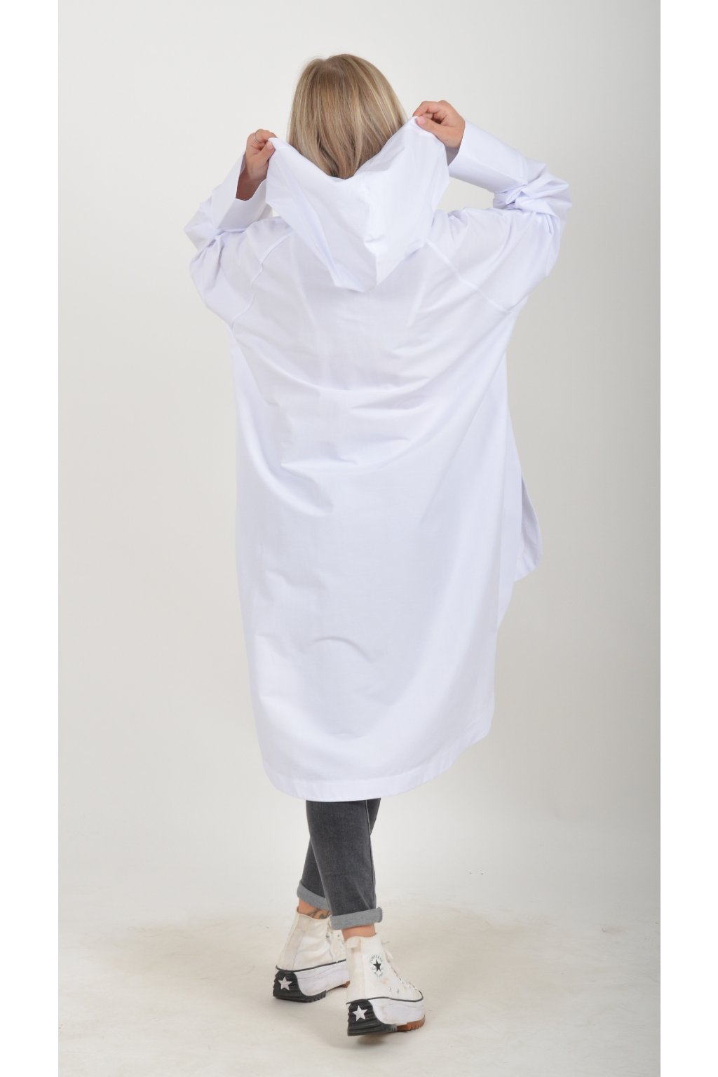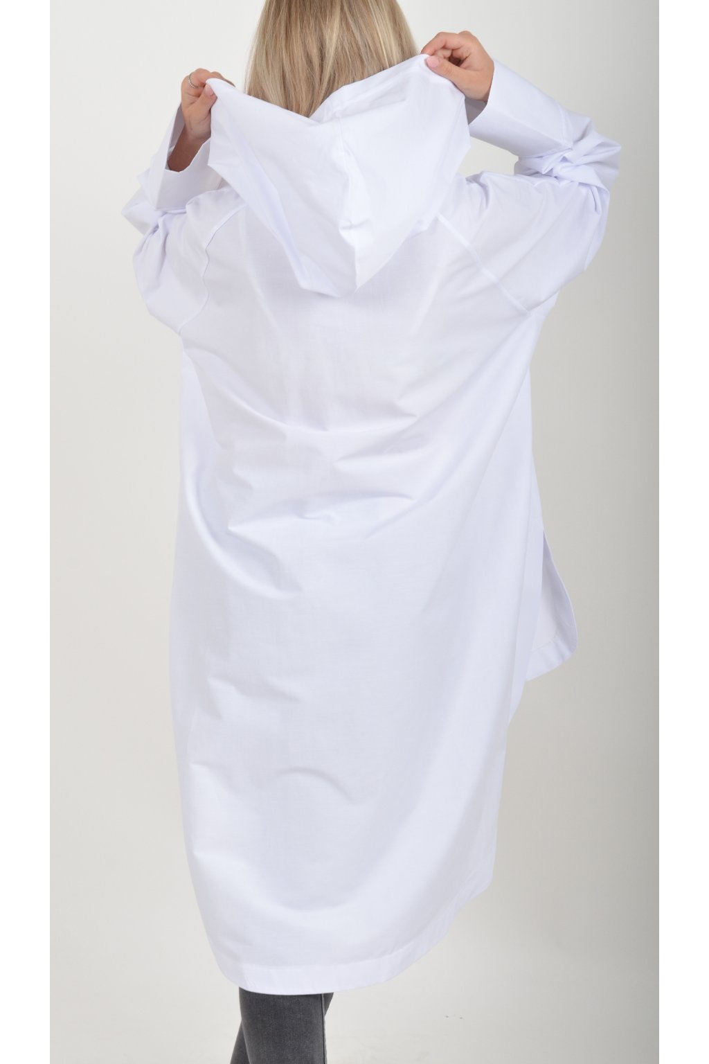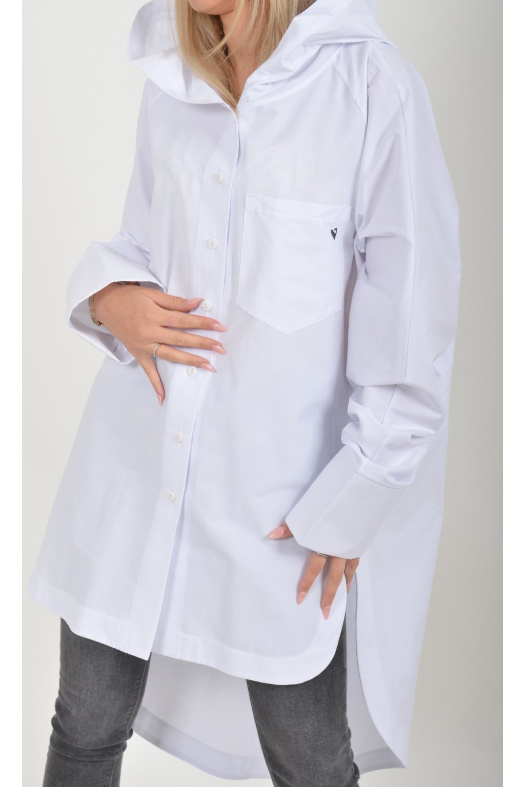 Luxusní oversize košile atypického střihu s kapucí. Zadní část košile je výrazně delší než přední, čímž optický prodlouží postavu. Má náprsní kapsy a dlouhý rukáv. Zapínání má sedm knoflíků. Košile je vyrobena z velice příjemného materiálu. Je vhodná jak džínům, tak k legínám. Hodí se jak do společnosti, tak i ke každodennímu nošení.