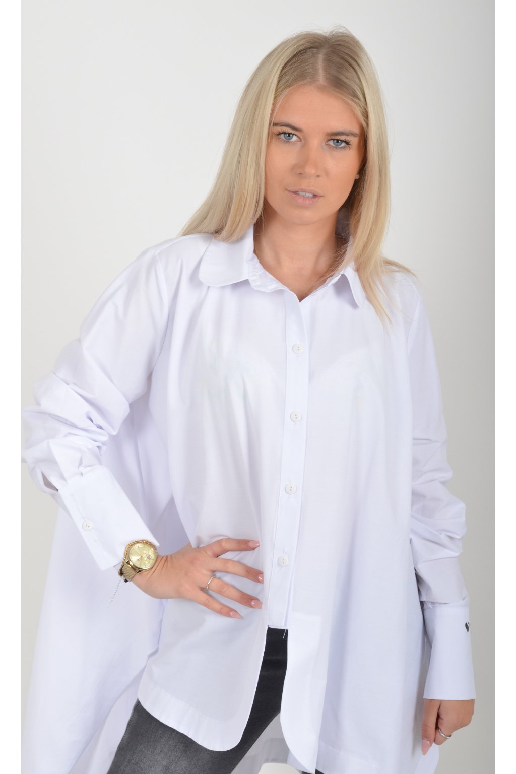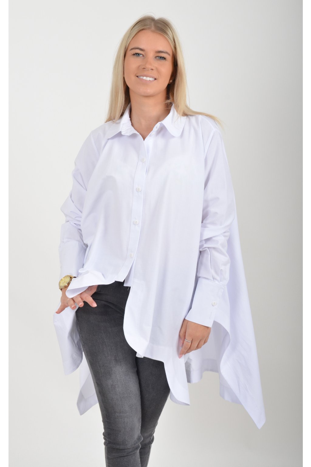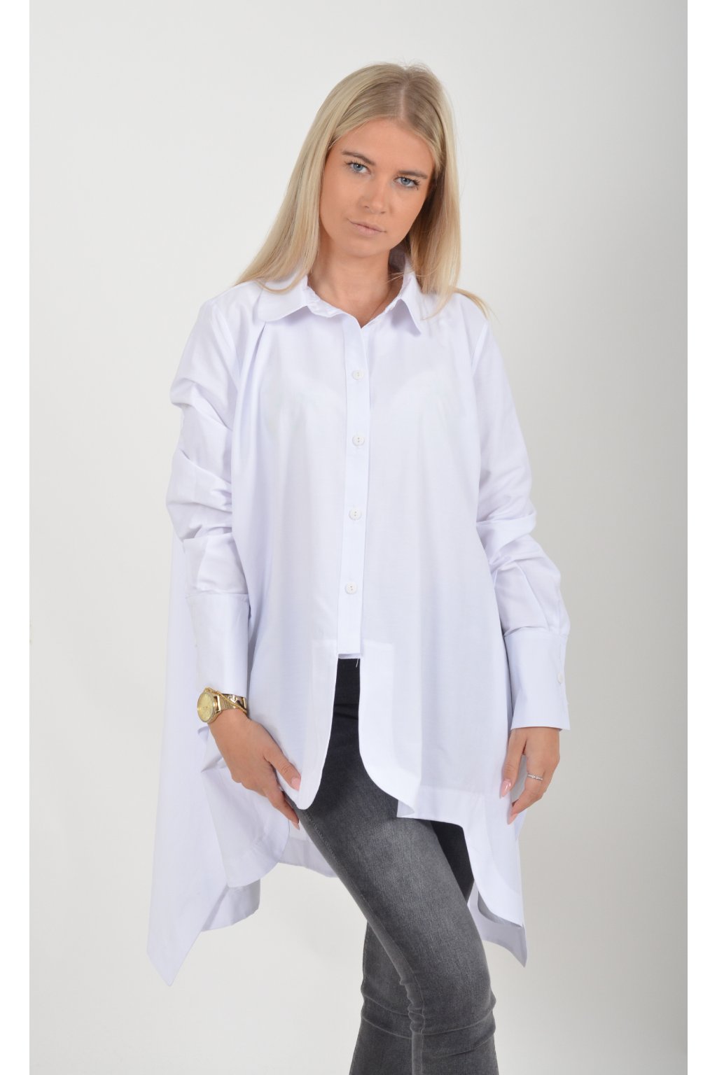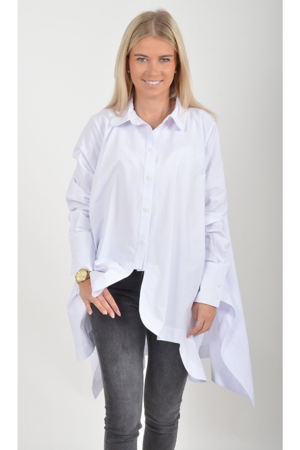 Luxusní oversize košile atypického střihu s límečkem. Zadní část košile je výrazně delší než přední, čímž optický prodlouží postavu. Má náprsní kapsy a dlouhý rukáv. Zapínání má sedm knoflíků. Košile je vyrobena z velice příjemného materiálu. Je vhodná jak džínům, tak k legínám. Hodí se jak do společnosti, tak i ke každodennímu nošení.