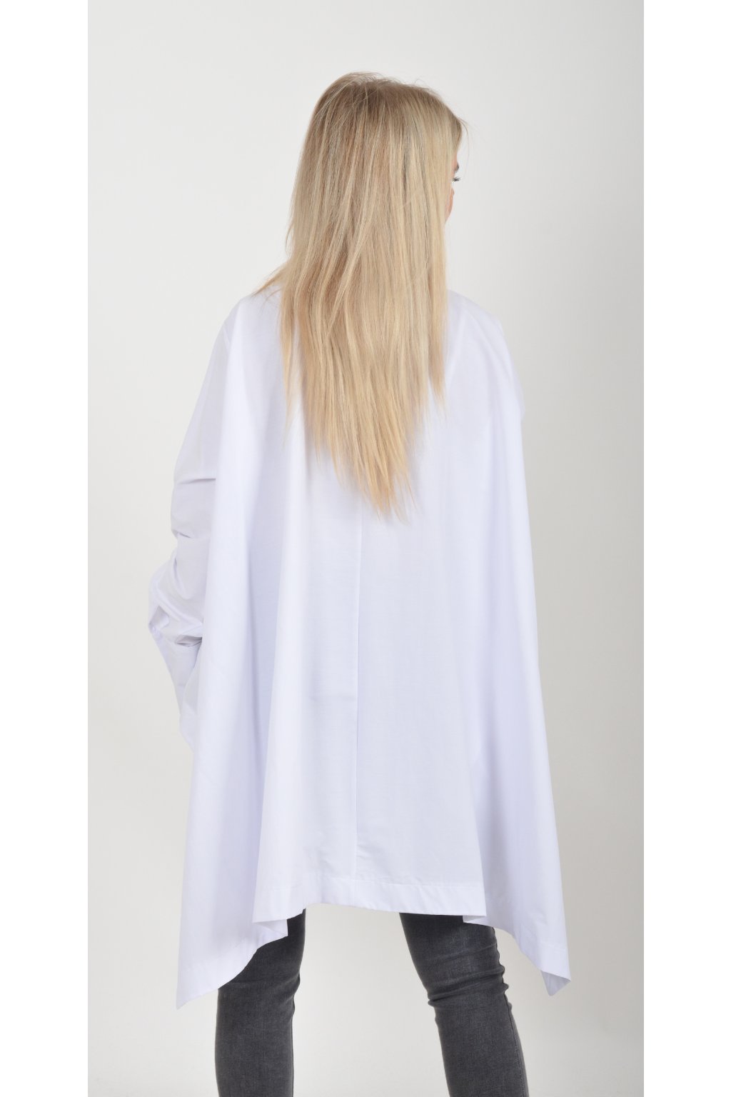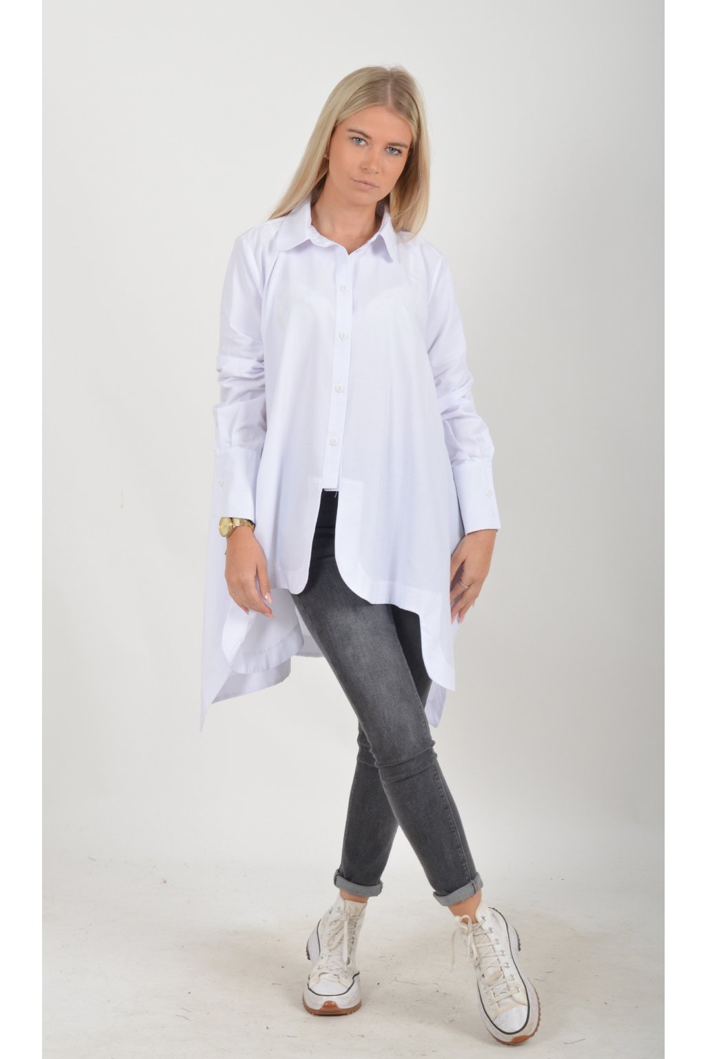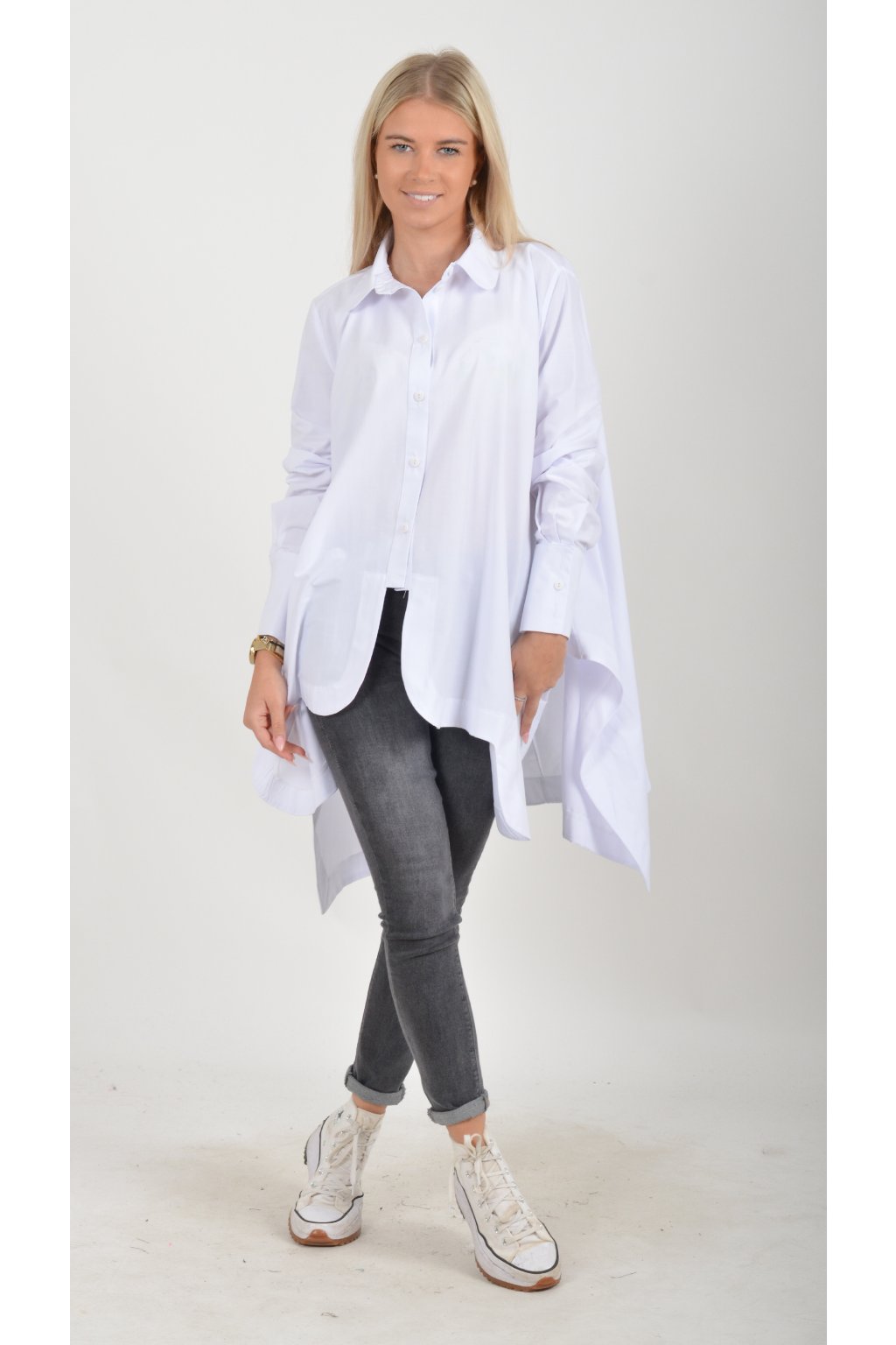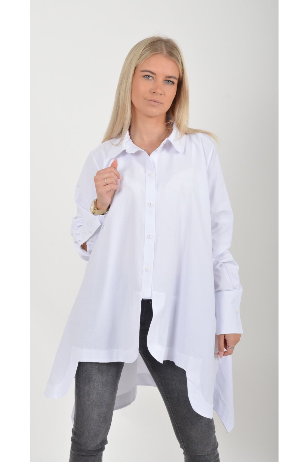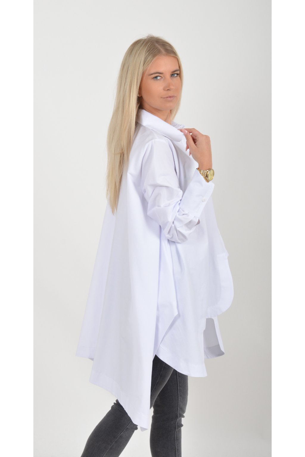 Luxusní oversize košile atypického střihu s límečkem. Zadní část košile je výrazně delší než přední, čímž optický prodlouží postavu. Má náprsní kapsy a dlouhý rukáv. Zapínání má sedm knoflíků. Košile je vyrobena z velice příjemného materiálu. Je vhodná jak džínům, tak k legínám. Hodí se jak do společnosti, tak i ke každodennímu nošení.