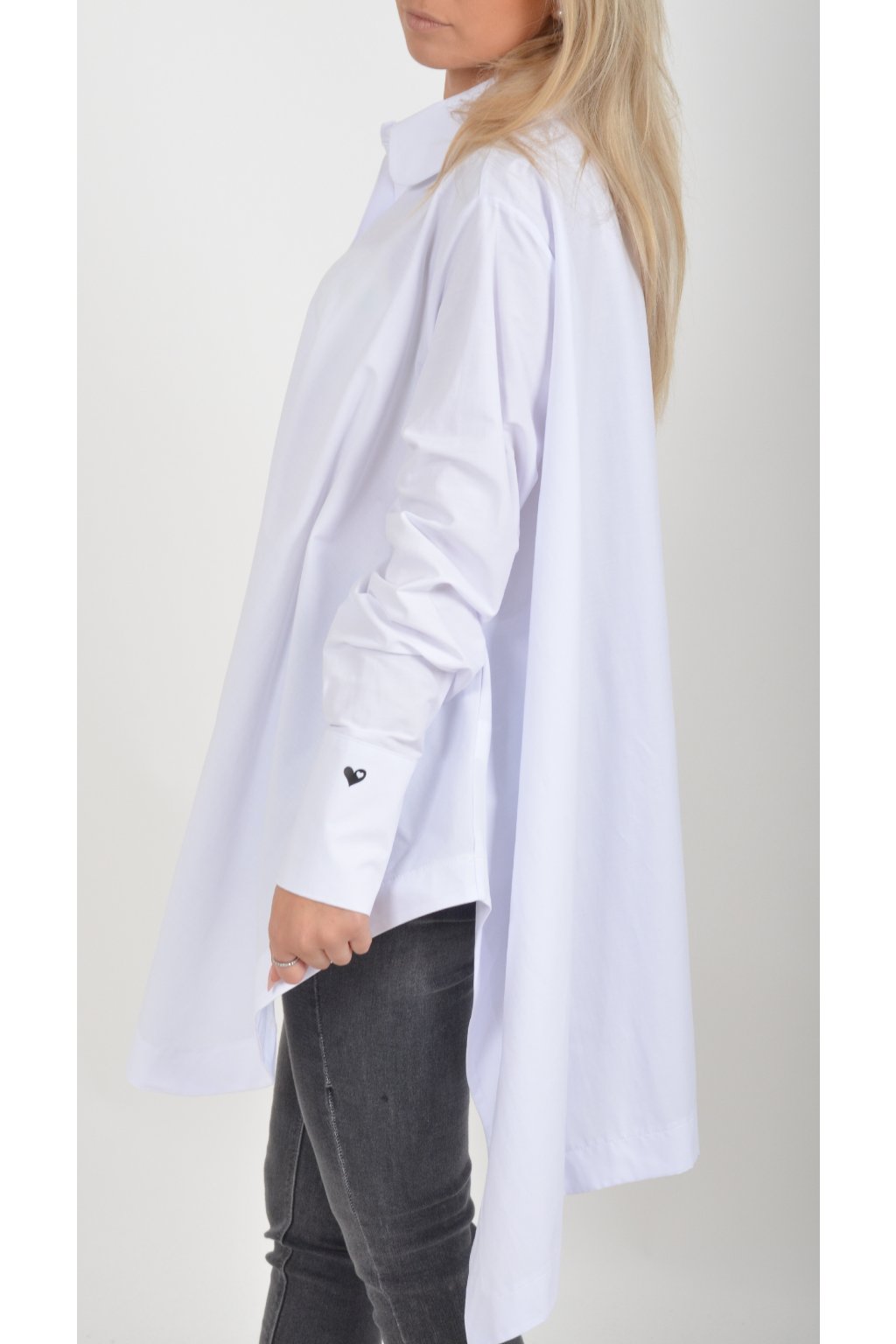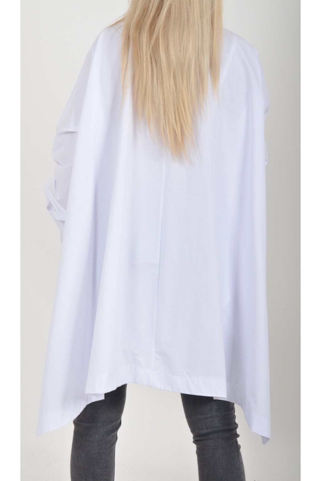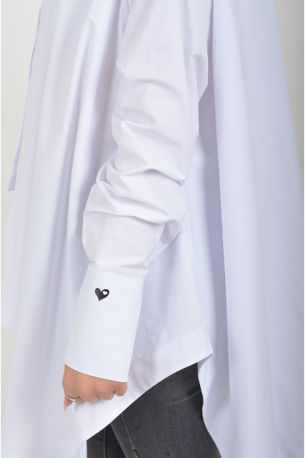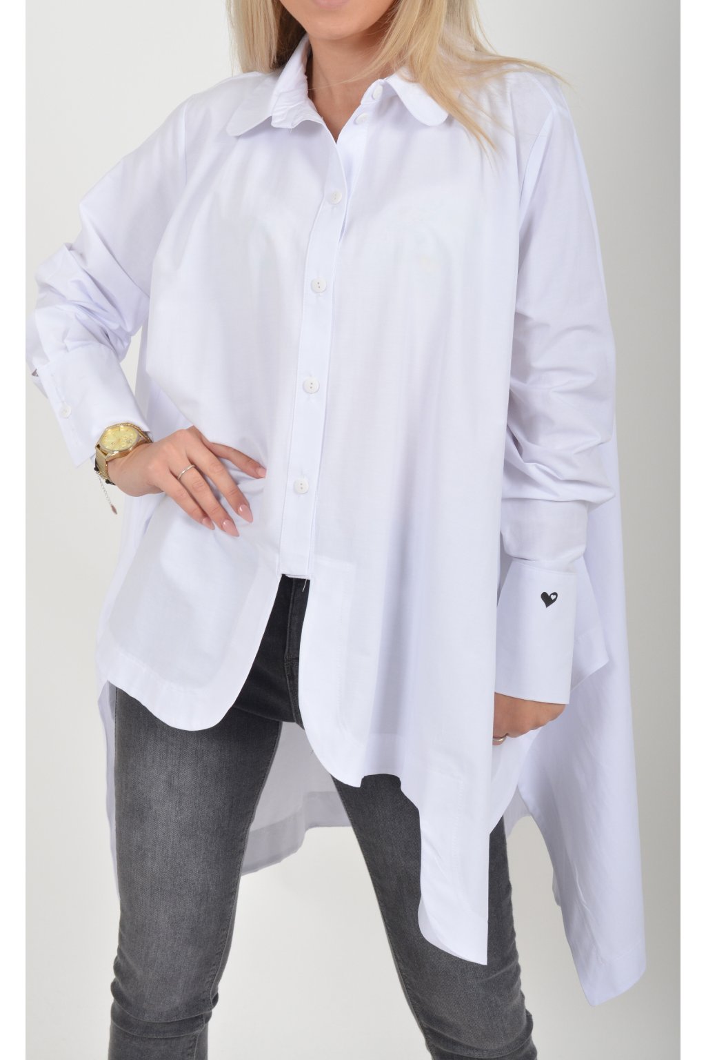 Luxusní oversize košile atypického střihu s límečkem. Zadní část košile je výrazně delší než přední, čímž optický prodlouží postavu. Má náprsní kapsy a dlouhý rukáv. Zapínání má sedm knoflíků. Košile je vyrobena z velice příjemného materiálu. Je vhodná jak džínům, tak k legínám. Hodí se jak do společnosti, tak i ke každodennímu nošení.