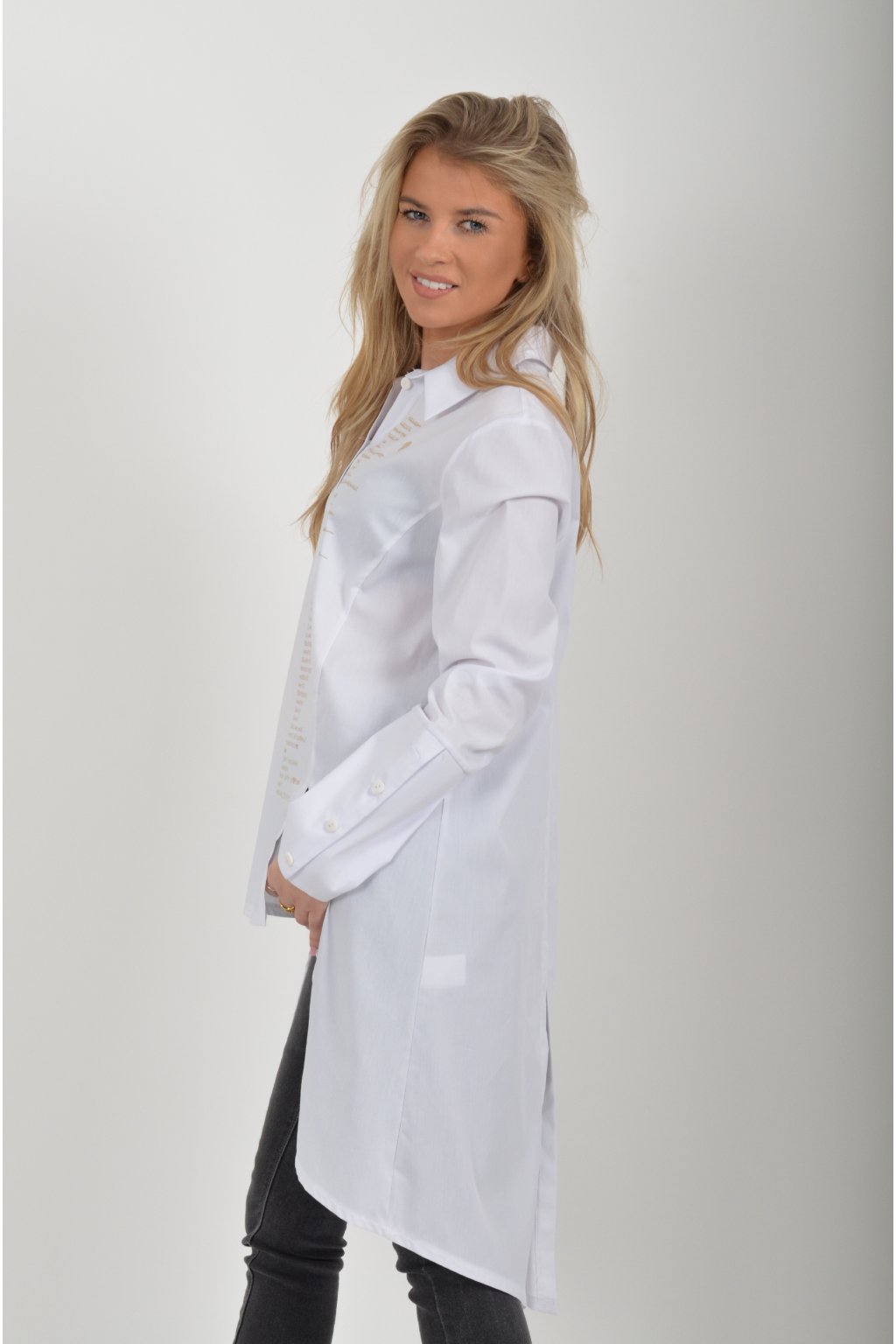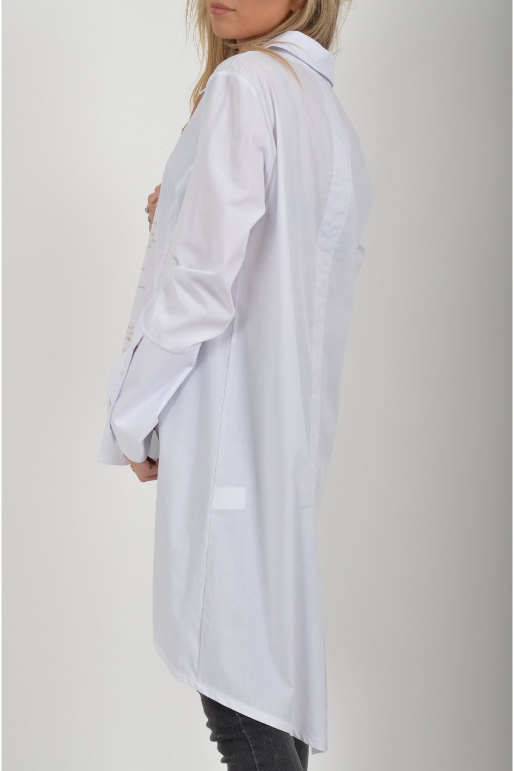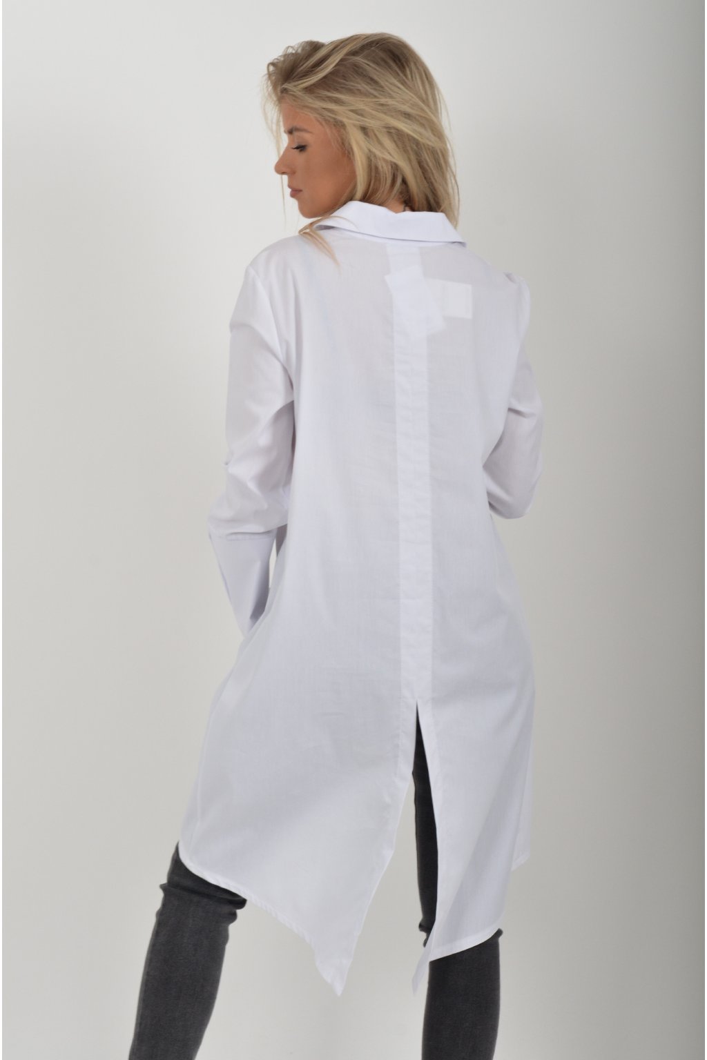 Luxusní košile atypického áčkového střihu s límečkem od značky Miss City Official. Zadní část košile je výrazně delší než přední, čímž optický prodlouží postavu. Má náprsní kapsy a dlouhý rukáv. Zapínání je na knoflíky. Košile je vyrobena z velice příjemného materiálu. Je vhodná jak džínům, tak k legínám. Hodí se jak do společnosti, tak i ke každodennímu nošení.