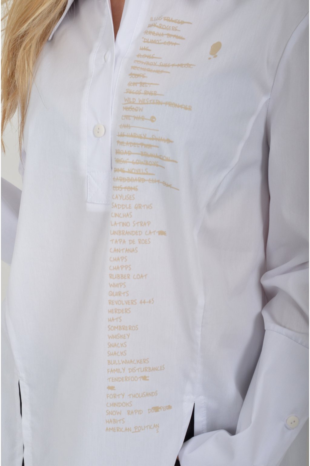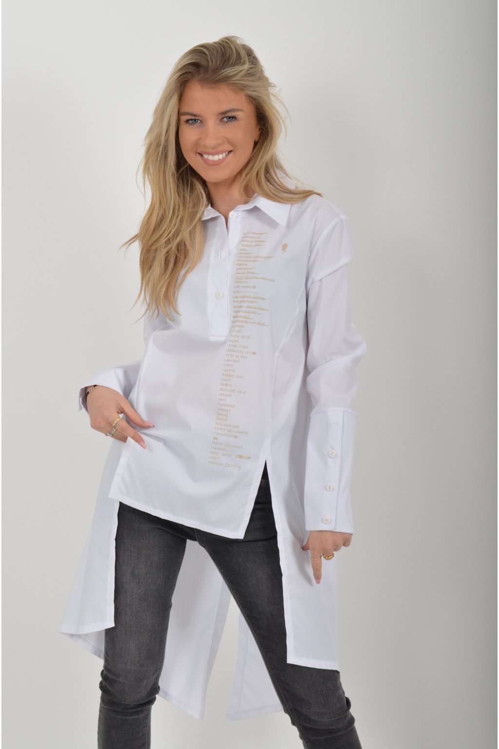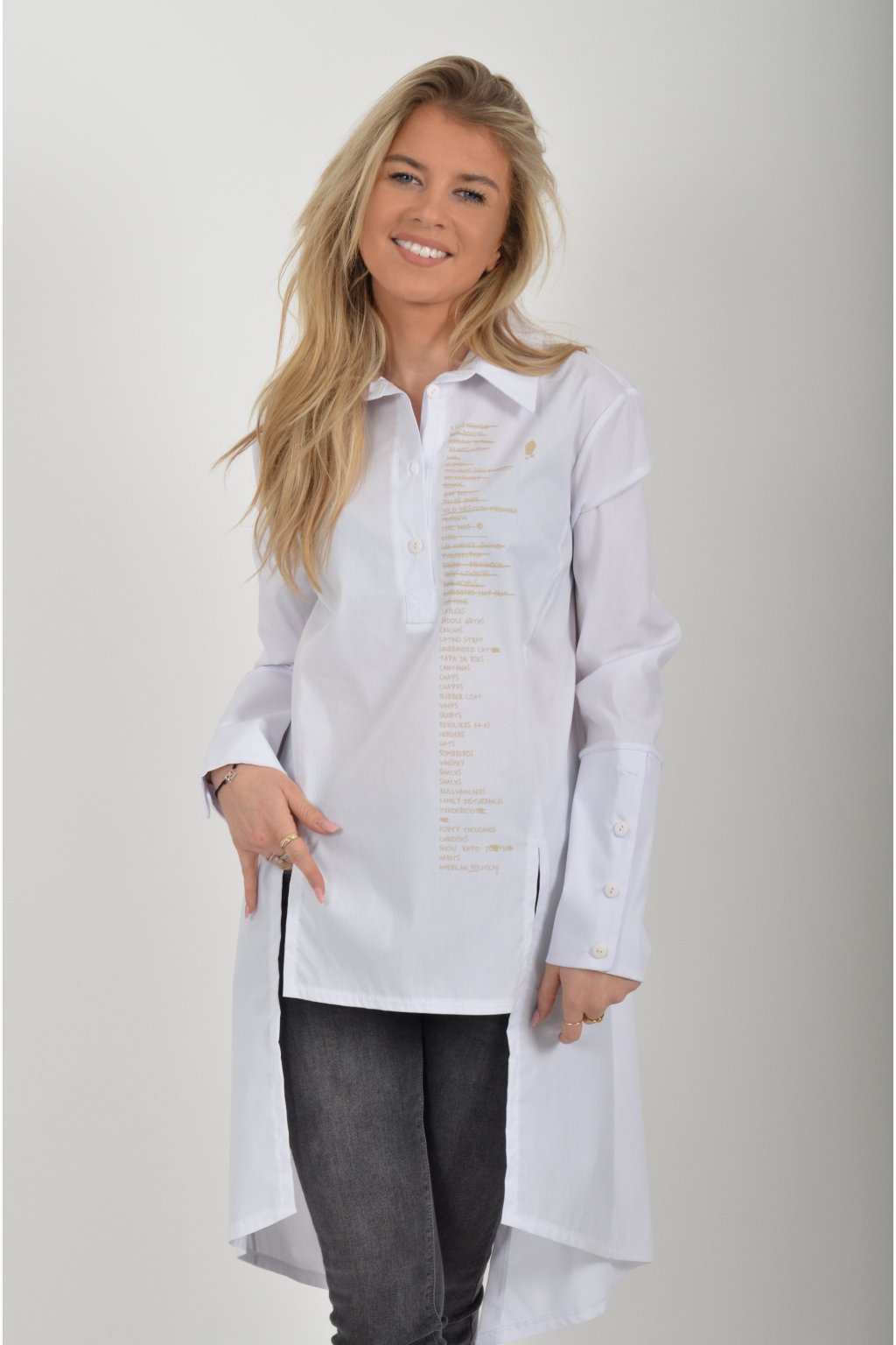 Luxusní košile atypického áčkového střihu s límečkem od značky Miss City Official. Zadní část košile je výrazně delší než přední, čímž optický prodlouží postavu. Má náprsní kapsy a dlouhý rukáv. Zapínání je na knoflíky. Košile je vyrobena z velice příjemného materiálu. Je vhodná jak džínům, tak k legínám. Hodí se jak do společnosti, tak i ke každodennímu nošení.