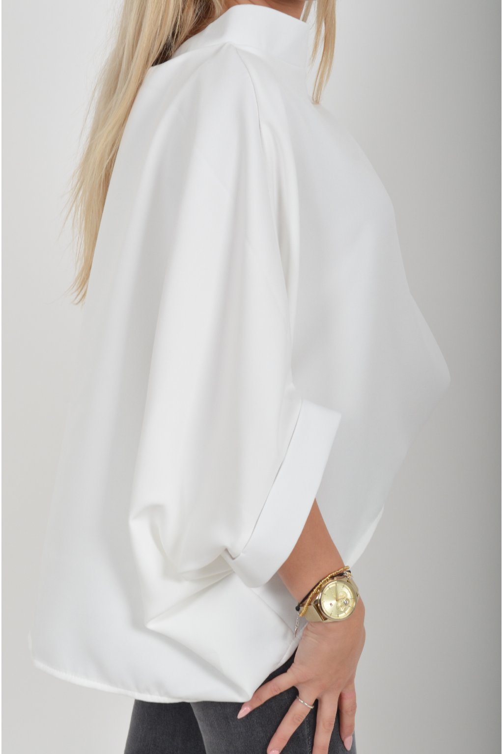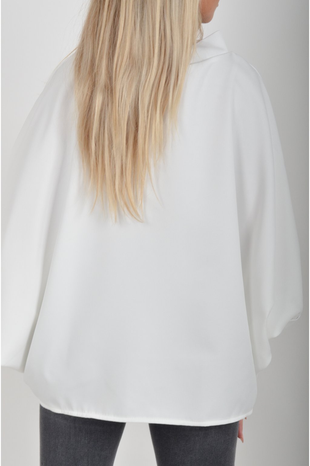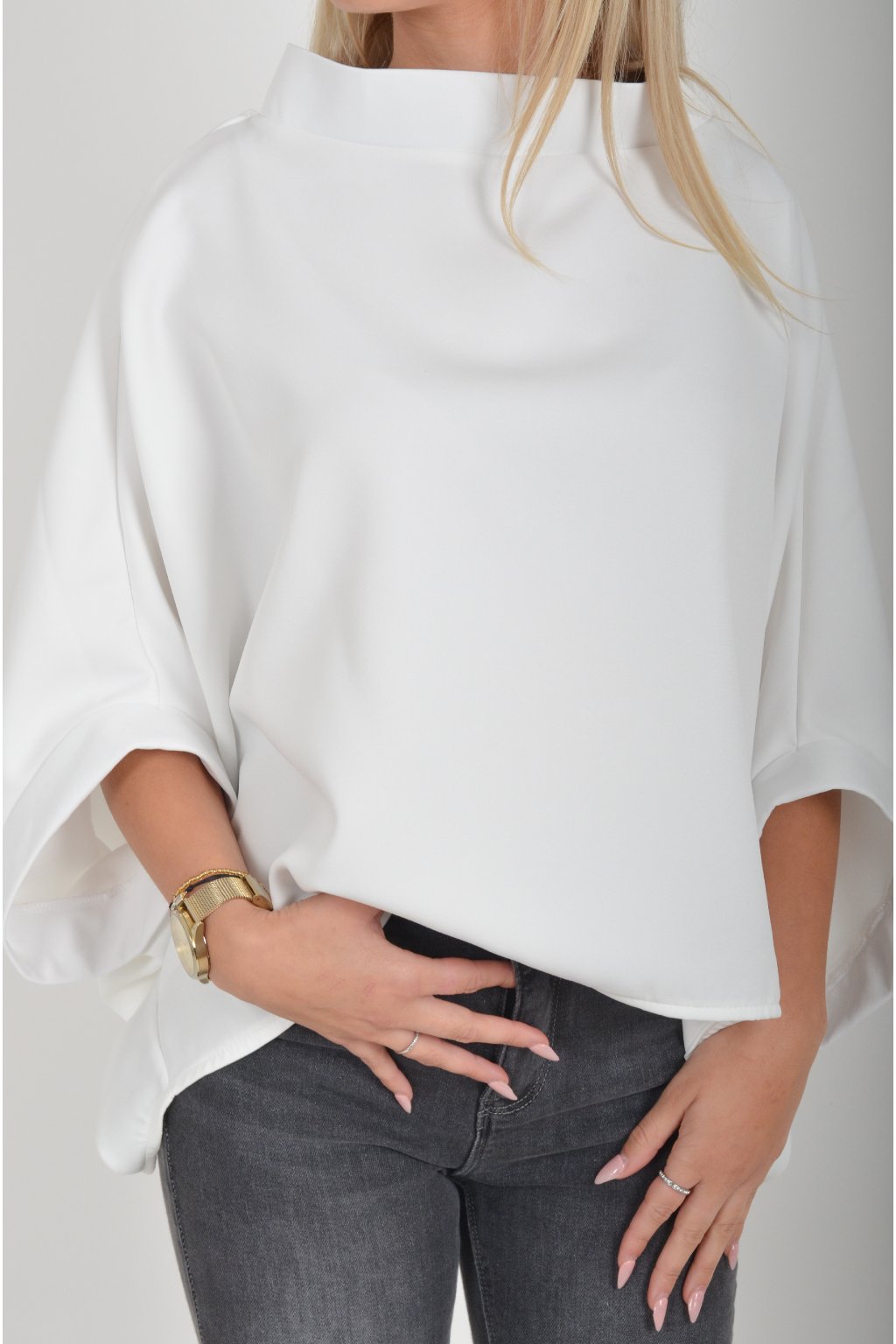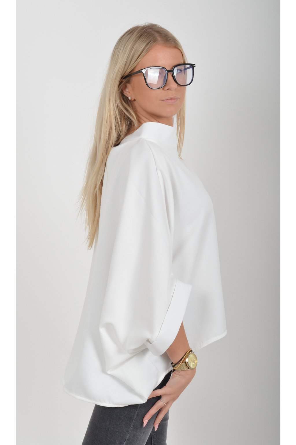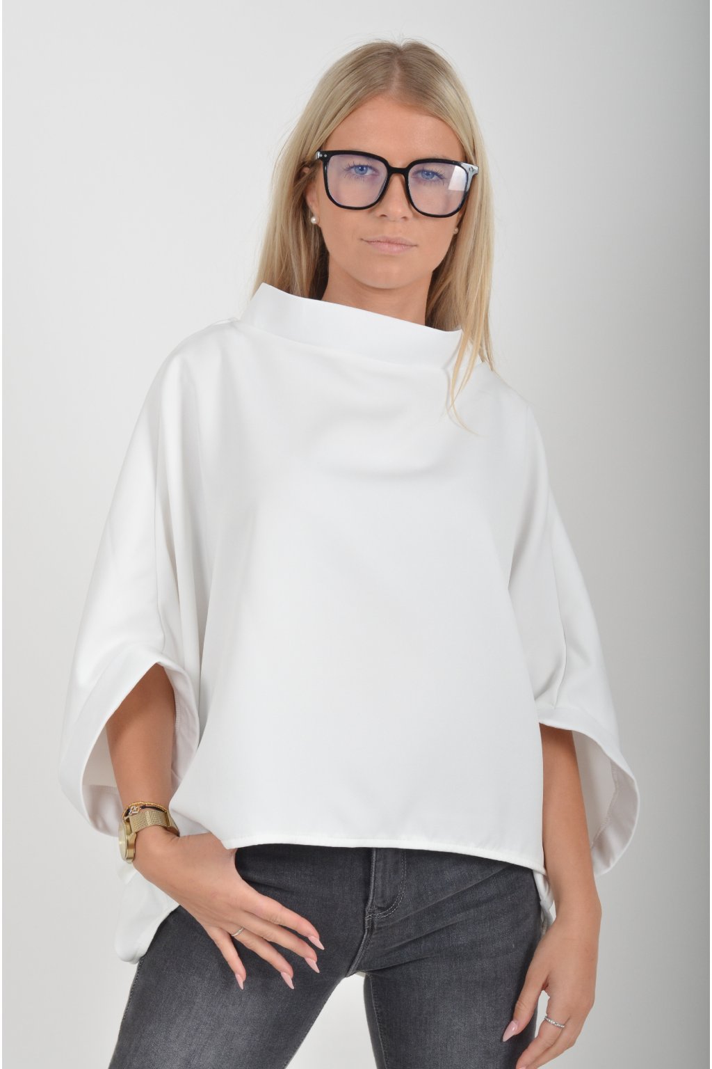 Halenka s netopýřím rukávem vhodná jak pro společenské události, tak i volnočasové nošení. Je vyrobena z velice příjemného a pevného materiálu. Přední část halenky je kratší než zadní. Je volnějšího střihu.