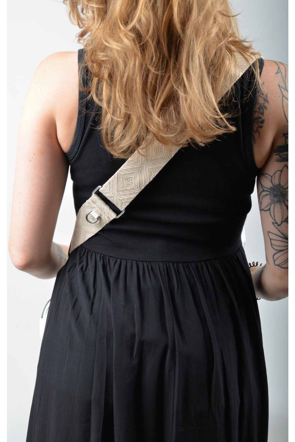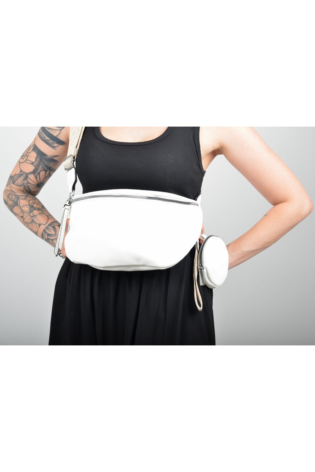 Ledvinka, která má nastavitelný popruh a malou připínací kapsička vhodnou na klíče, či peníze. Uvnitř kabelky je zapínatelná kapsa na zip a dvě malé kapsičky. Na zadní části je také kapsa na zip.