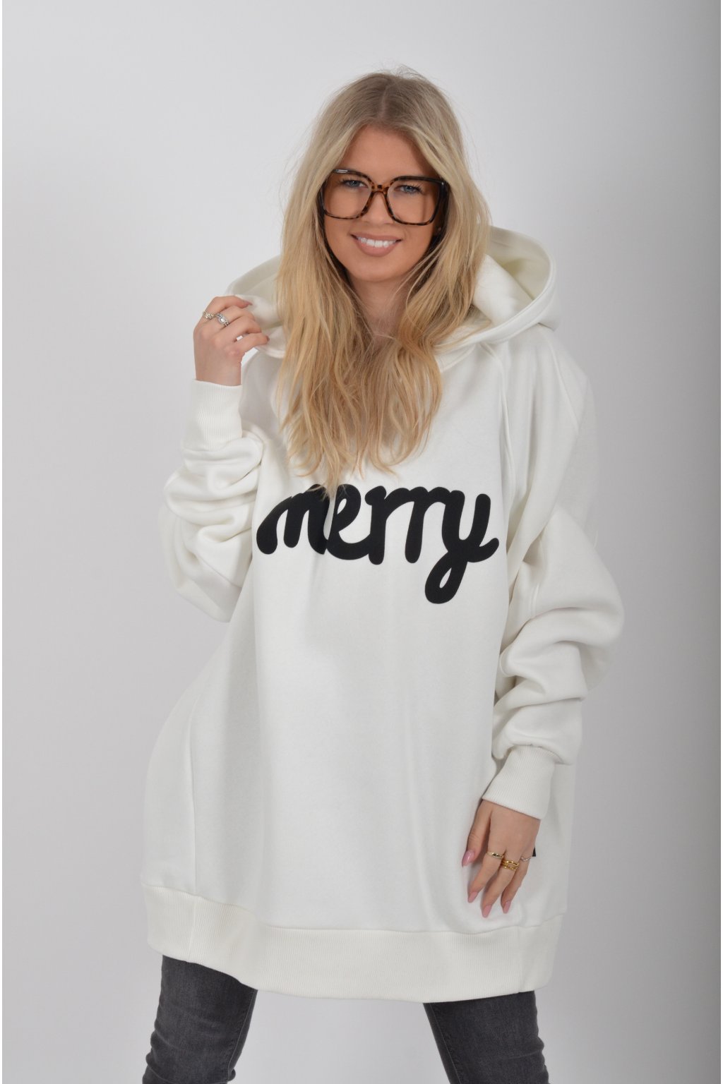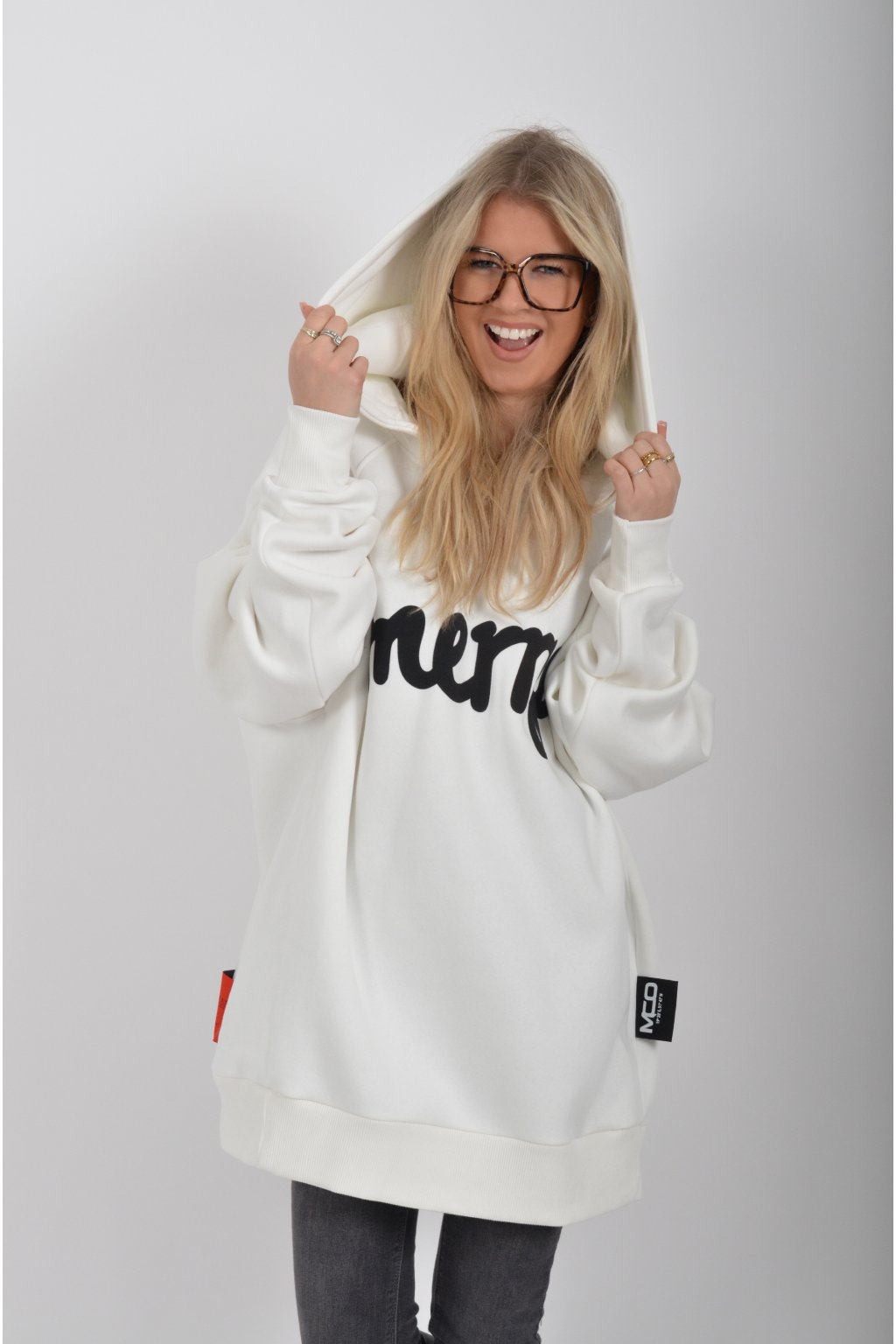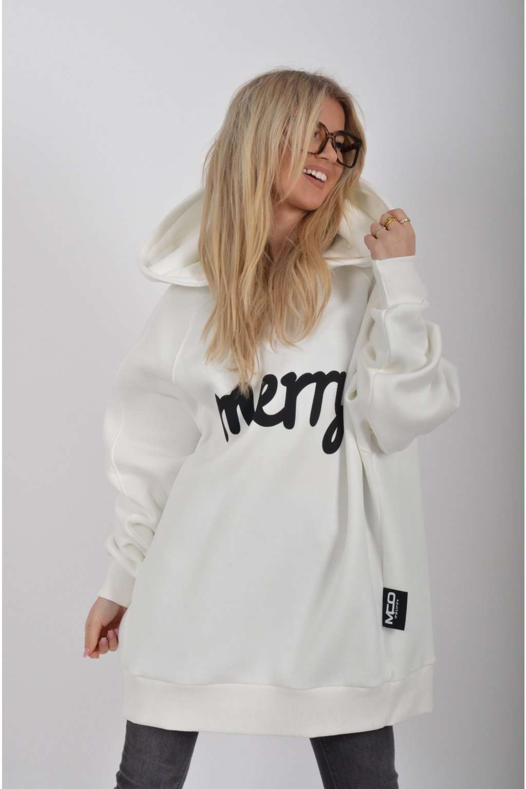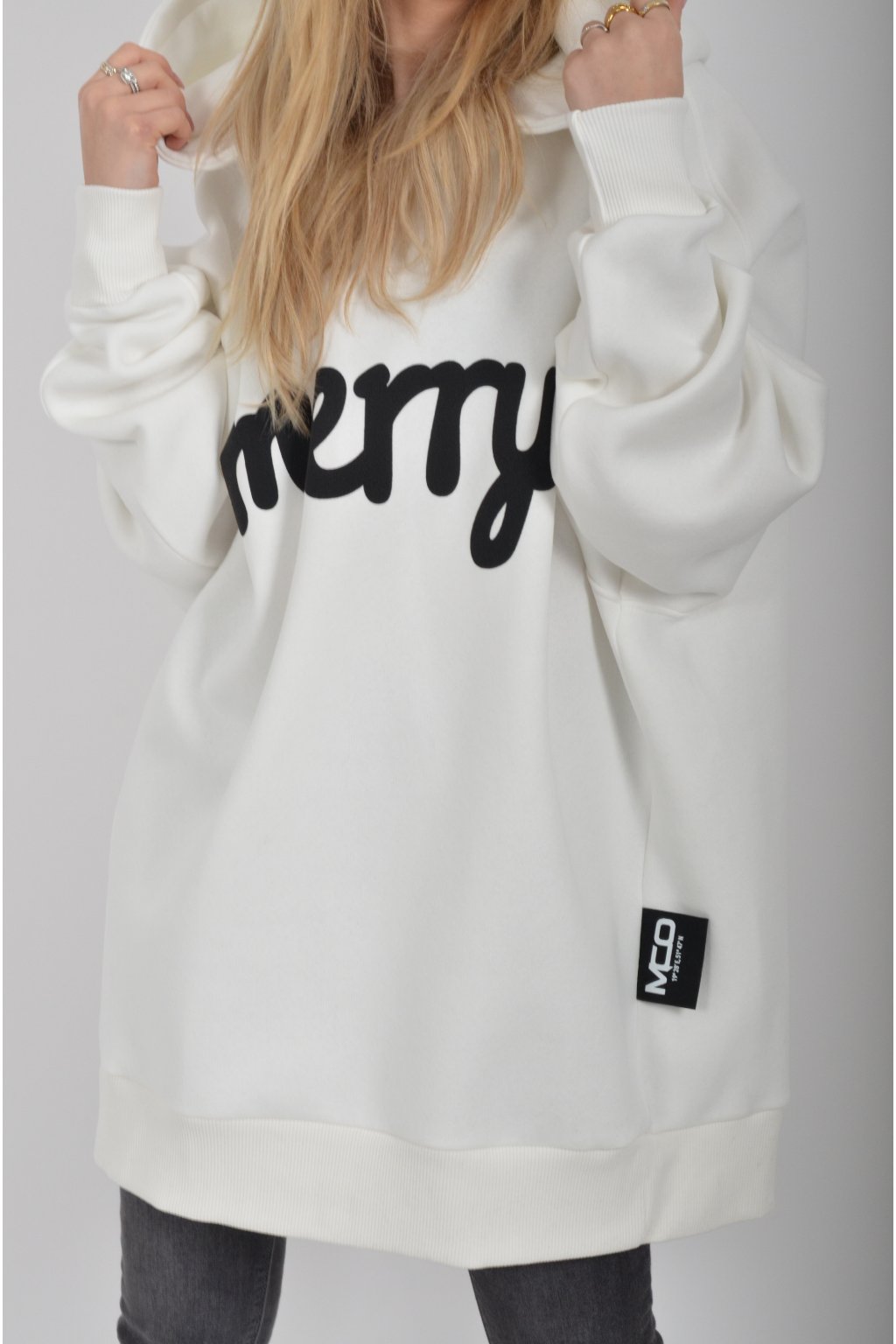 Mikina s nápisem Merry (štěstí) značky Miss City Official s dlouhý rukávem a kapucí. Je vyrobena s vysoce kvalitního materiálu.