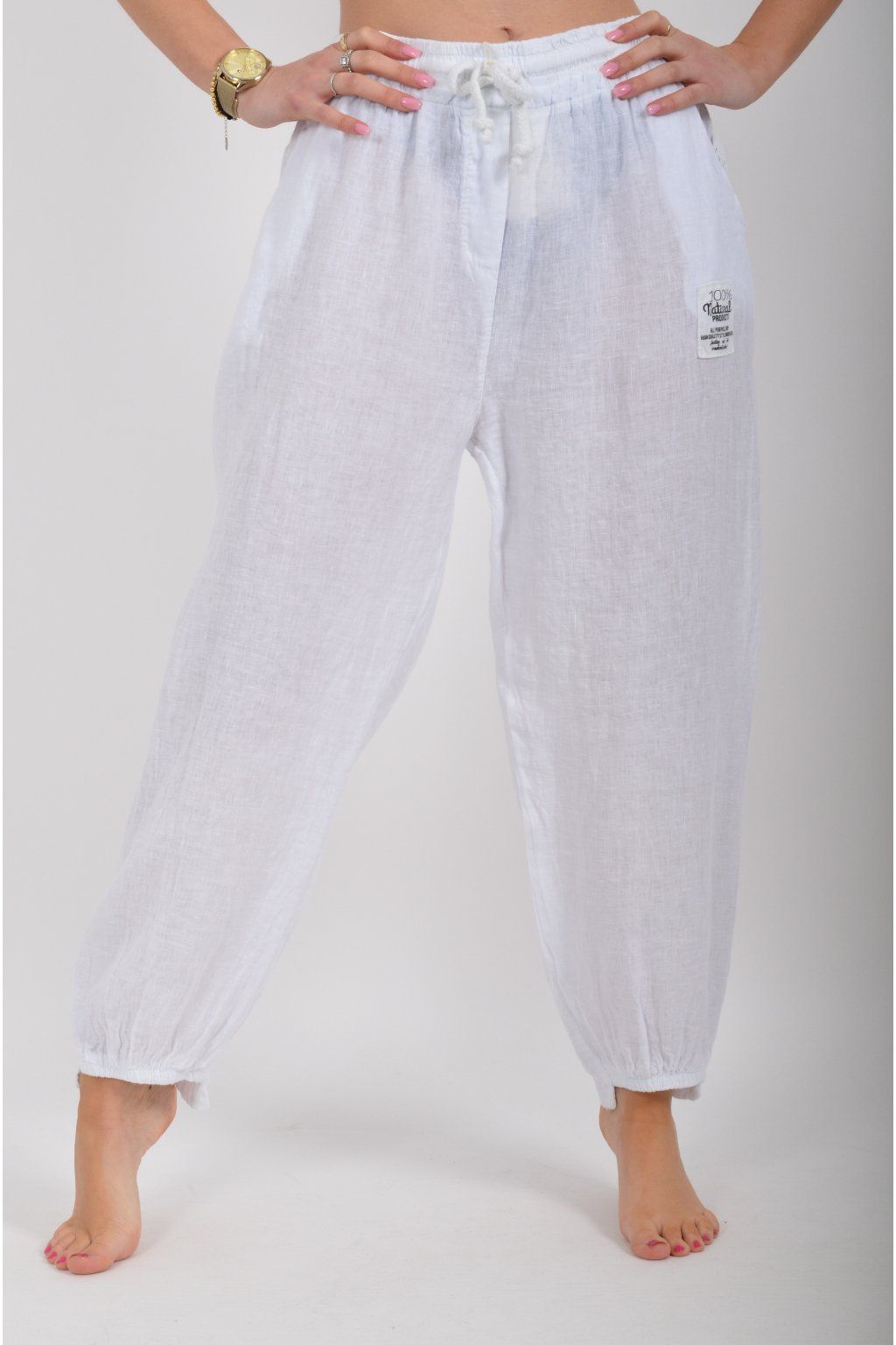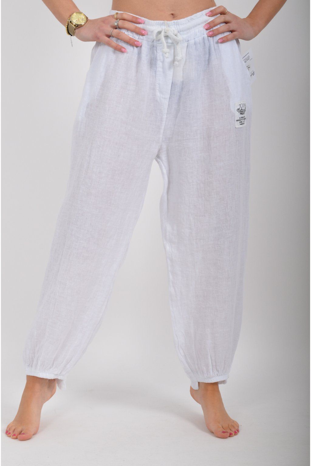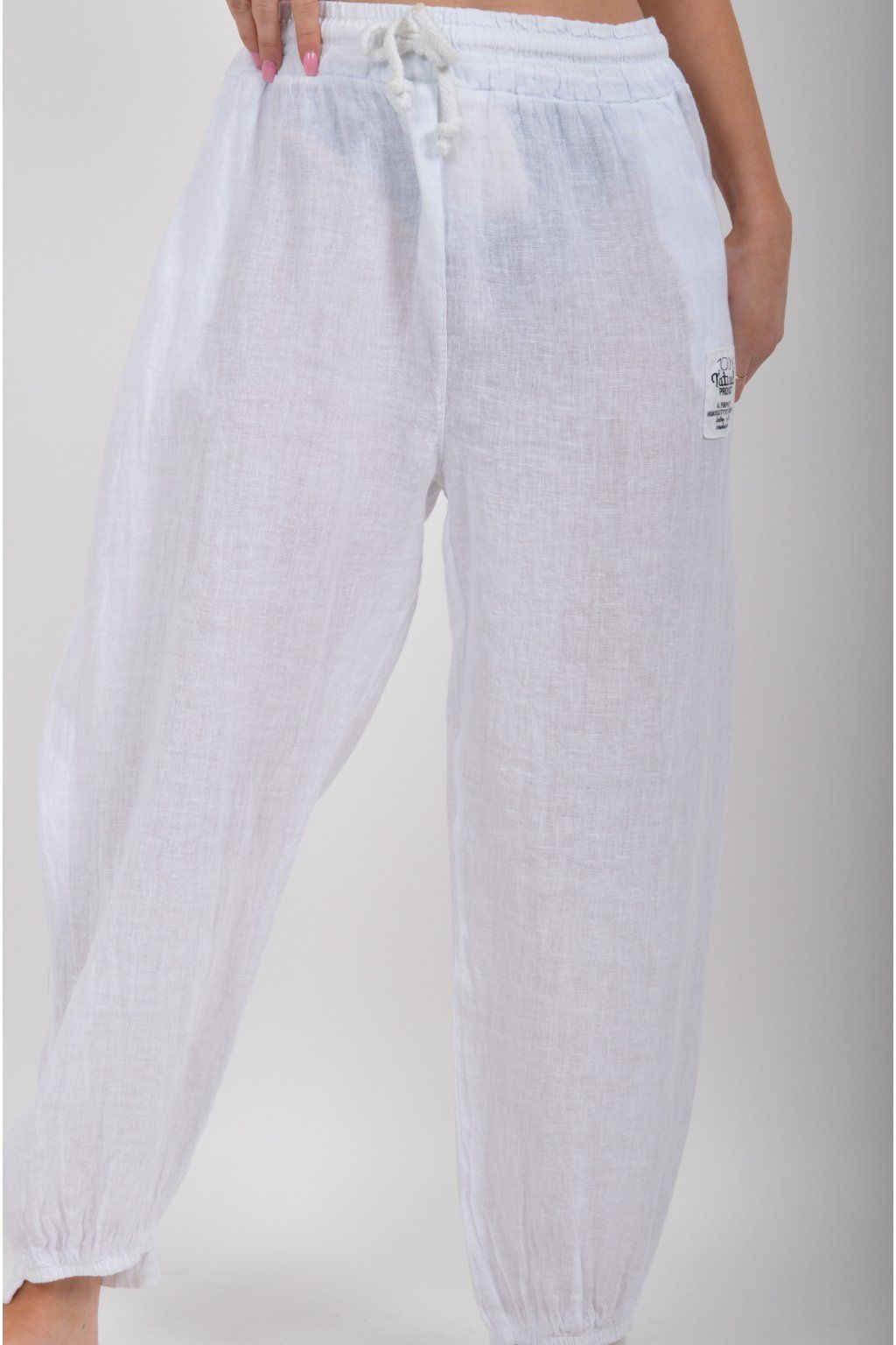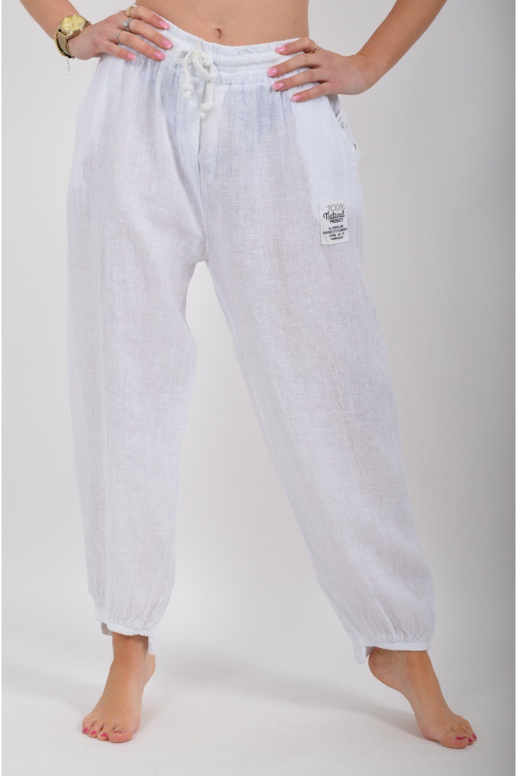 Lněné kalhoty s kapsami na bocích. Jsou vhodné pro každodenní nošení. V pase je zapracovaná guma a tkanice pro libovolné stažení.