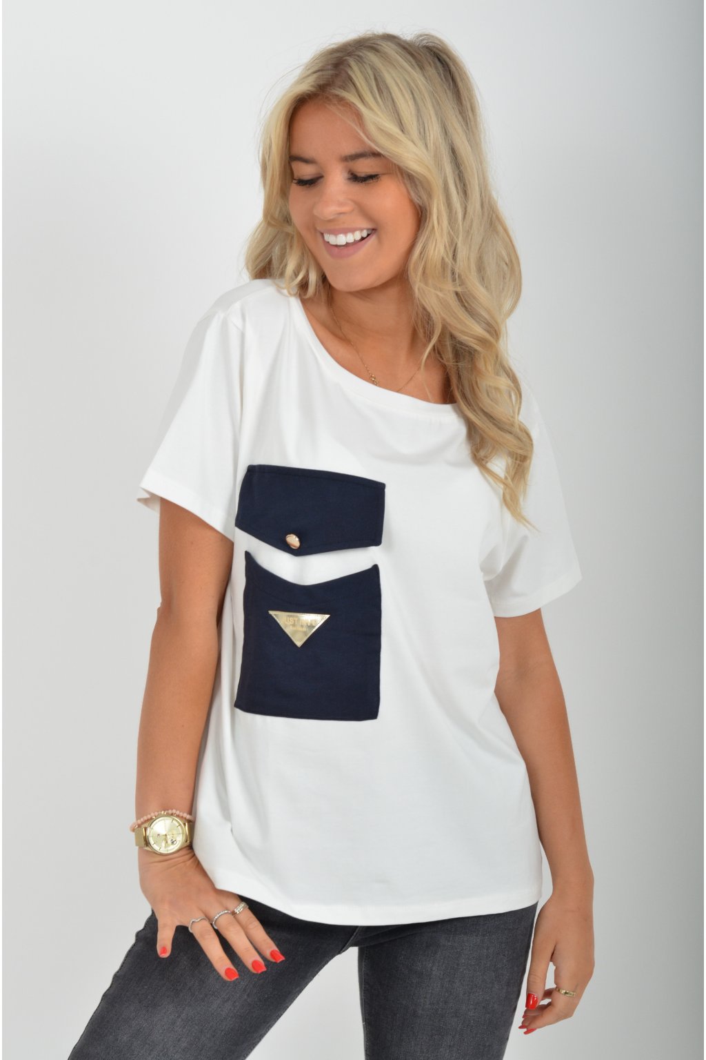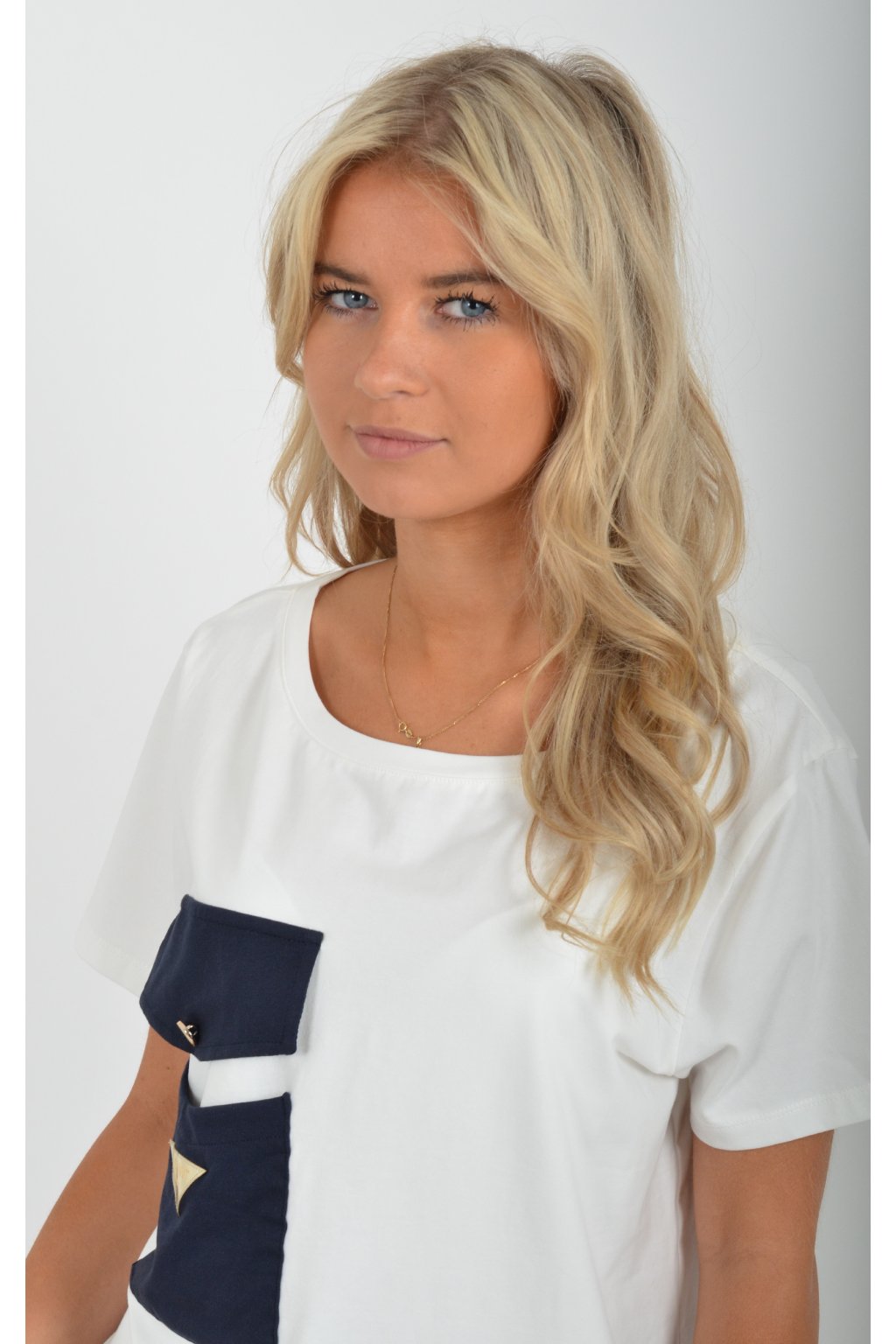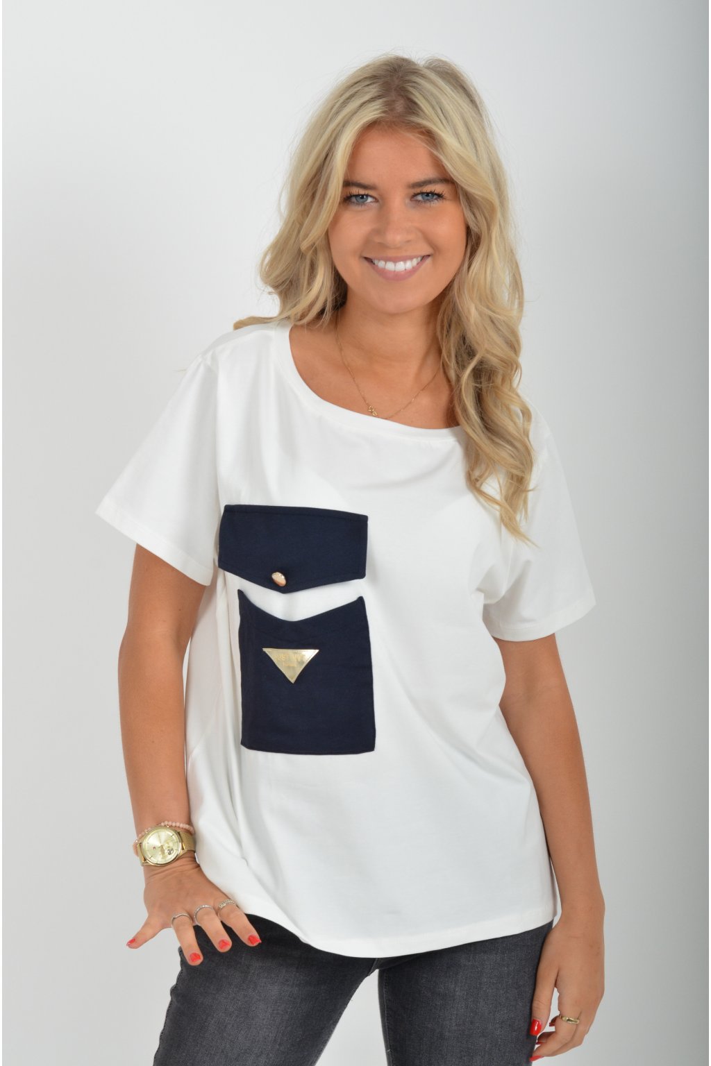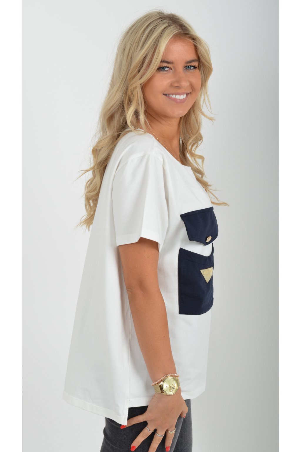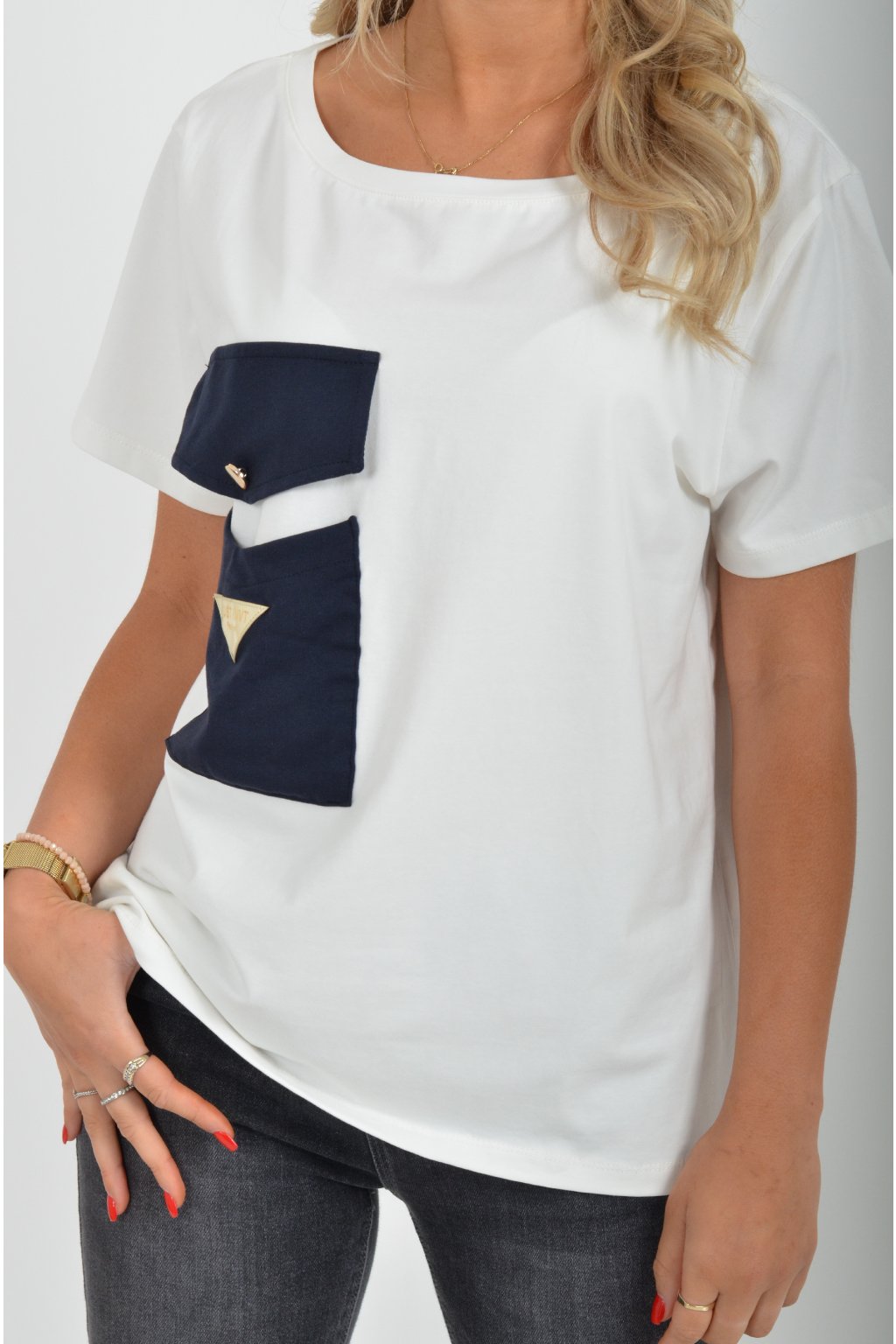 Tričko s krátkým rukávem a tmavě modrou náprsní kapsou, vyrobené z velice příjemné turecké bavlny.