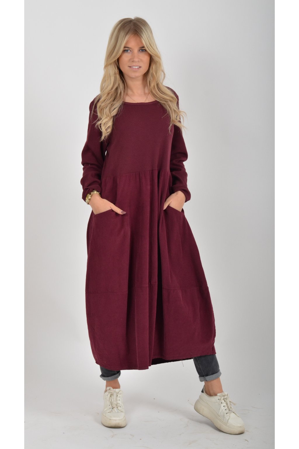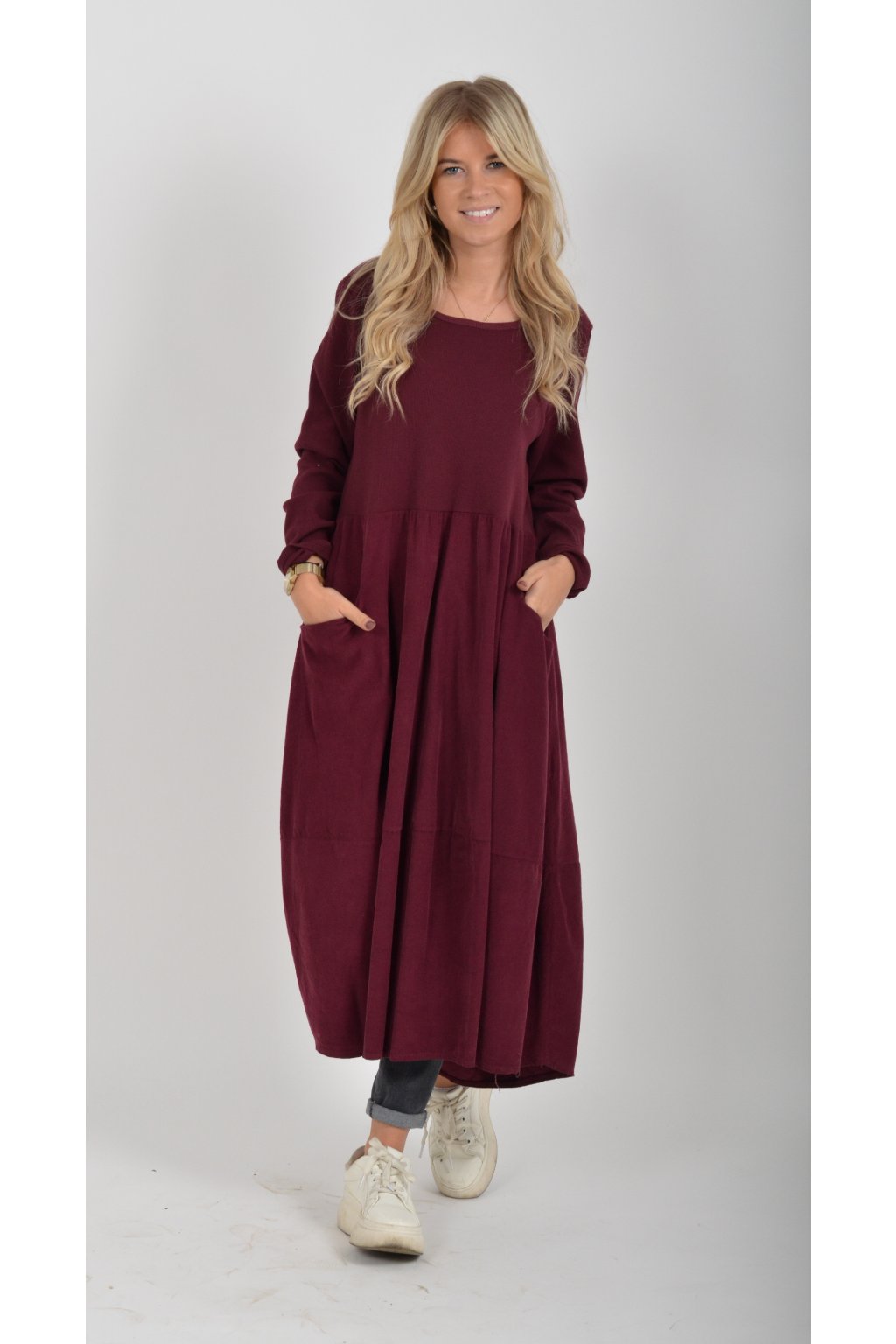 Dlouhé manšestrové šaty áčkového střihu s kapsami v přední části. Šaty jsou z velice příjemného materiál a jsou vhodné do podzimních dní.