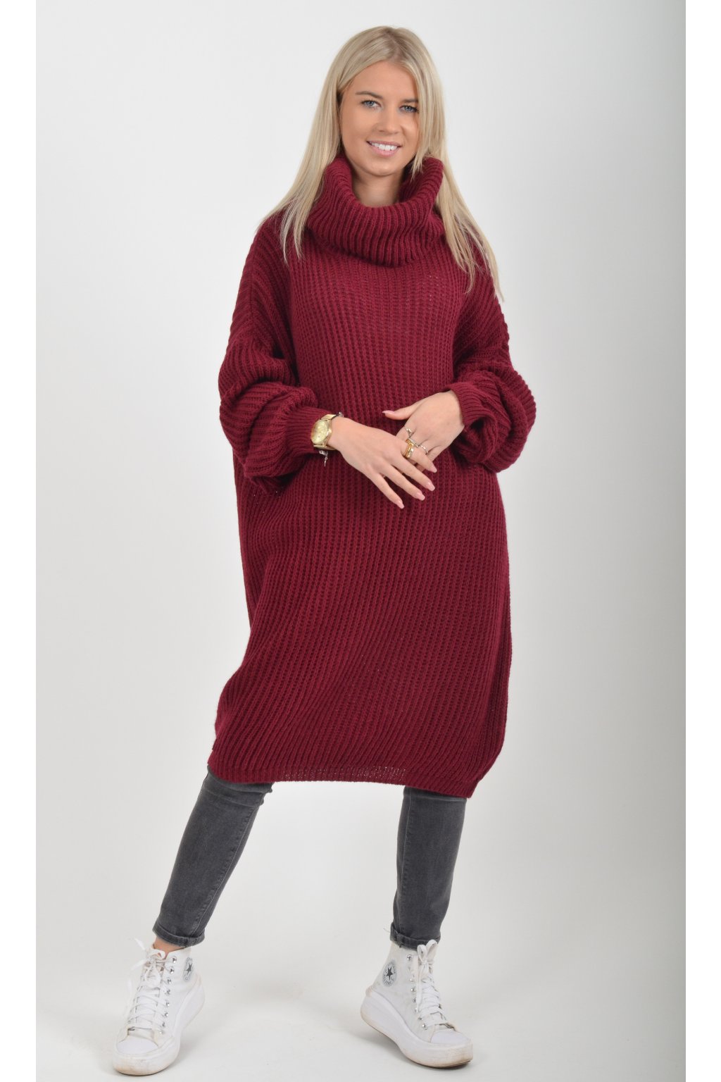 Jednobarevné pletené šaty s rolákem vyrobené z příjemného a nekousavého materiálu.