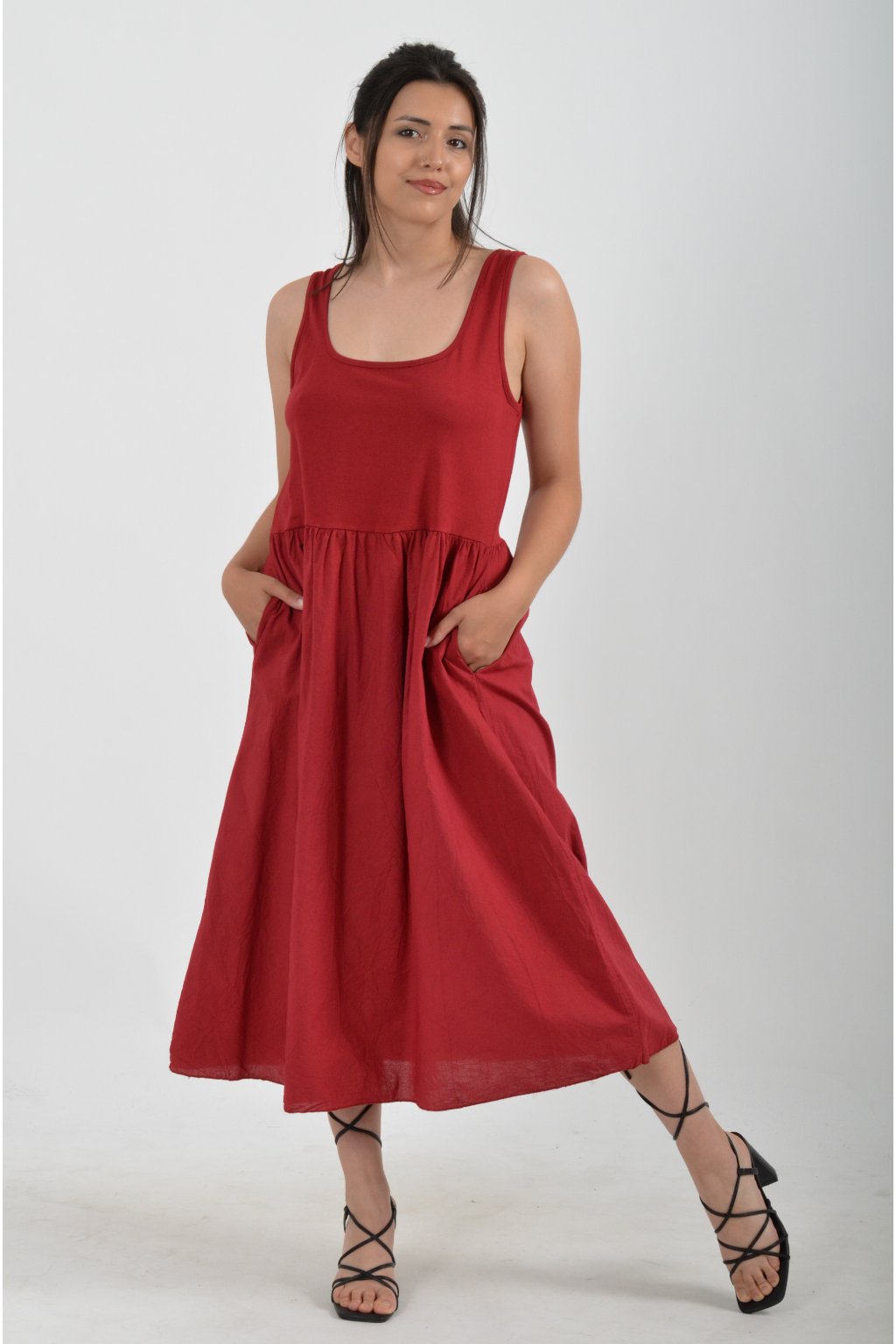 Jednobarevné šaty z velice příjemného a lehounkého materiálu. Na bocích mají kapsy a jsou vhodné pro nošení v letních dnech.