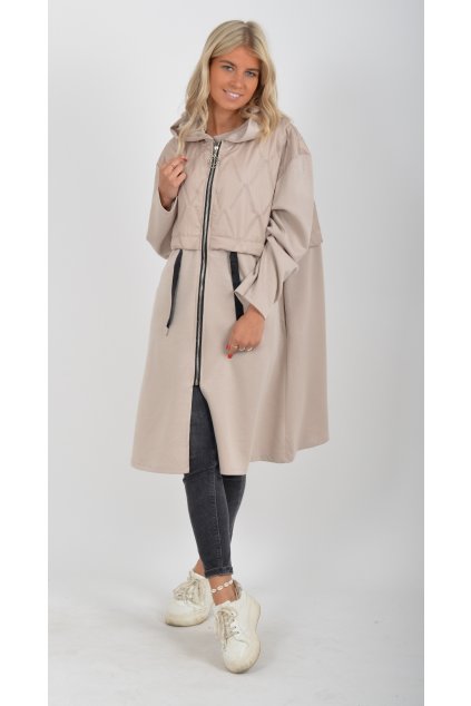Prošívaná vzorovaná bunda s lehkou výplní dutého vlákna. Bunda je přechodová, vhodná do chladného počasí, ale ne do mrazivých dnů. Má kapuci a kapsy v přední části. Rukávy mají bavlněné náplety.
