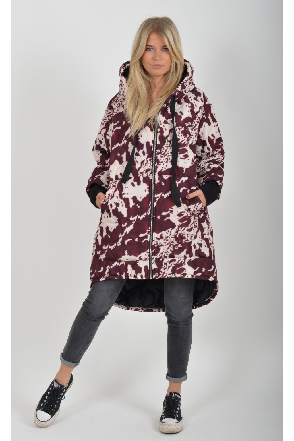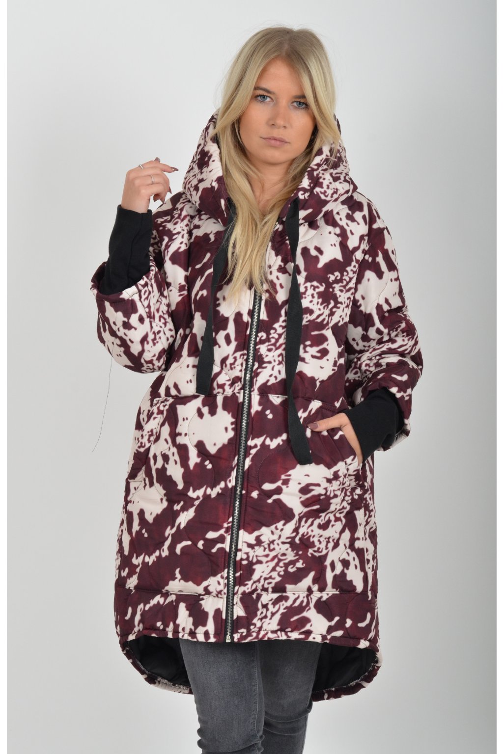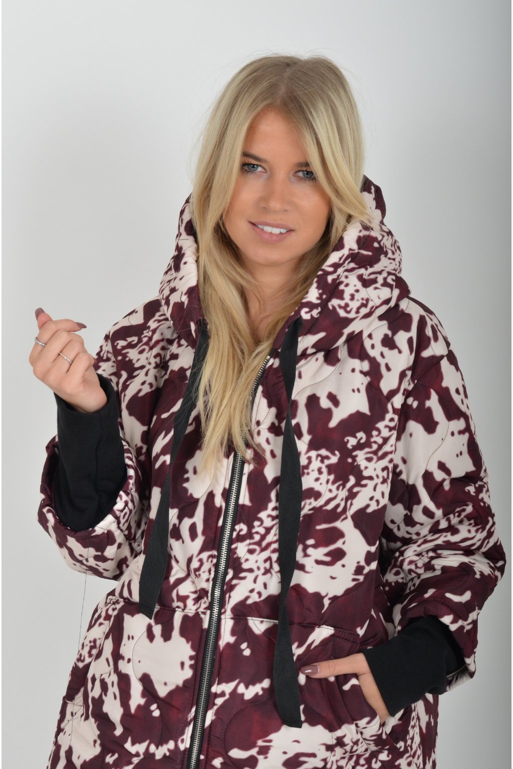 Prošívaná vzorovaná bunda s lehkou výplní dutého vlákna. Bunda je přechodová, vhodná do chladného počasí, ale ne do mrazivých dnů. Má kapuci a kapsy v přední části. Rukávy mají bavlněné náplety.
