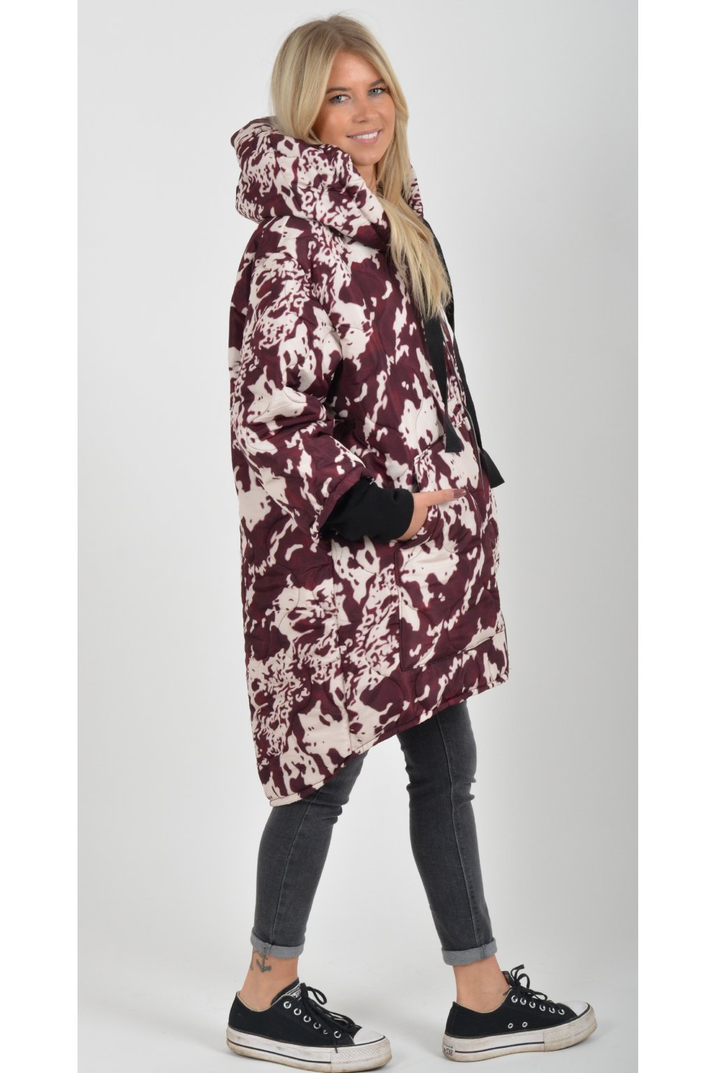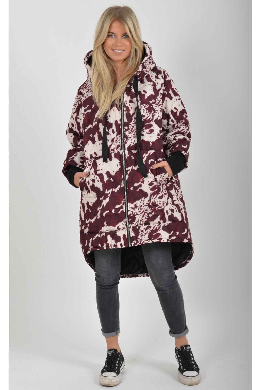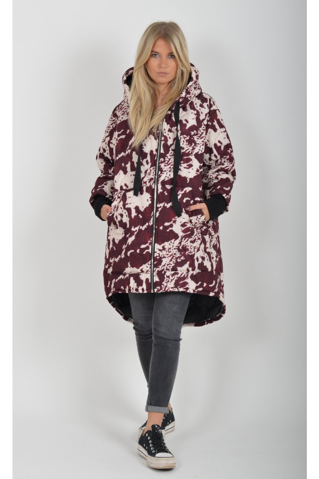 Prošívaná vzorovaná bunda s lehkou výplní dutého vlákna. Bunda je přechodová, vhodná do chladného počasí, ale ne do mrazivých dnů. Má kapuci a kapsy v přední části. Rukávy mají bavlněné náplety.