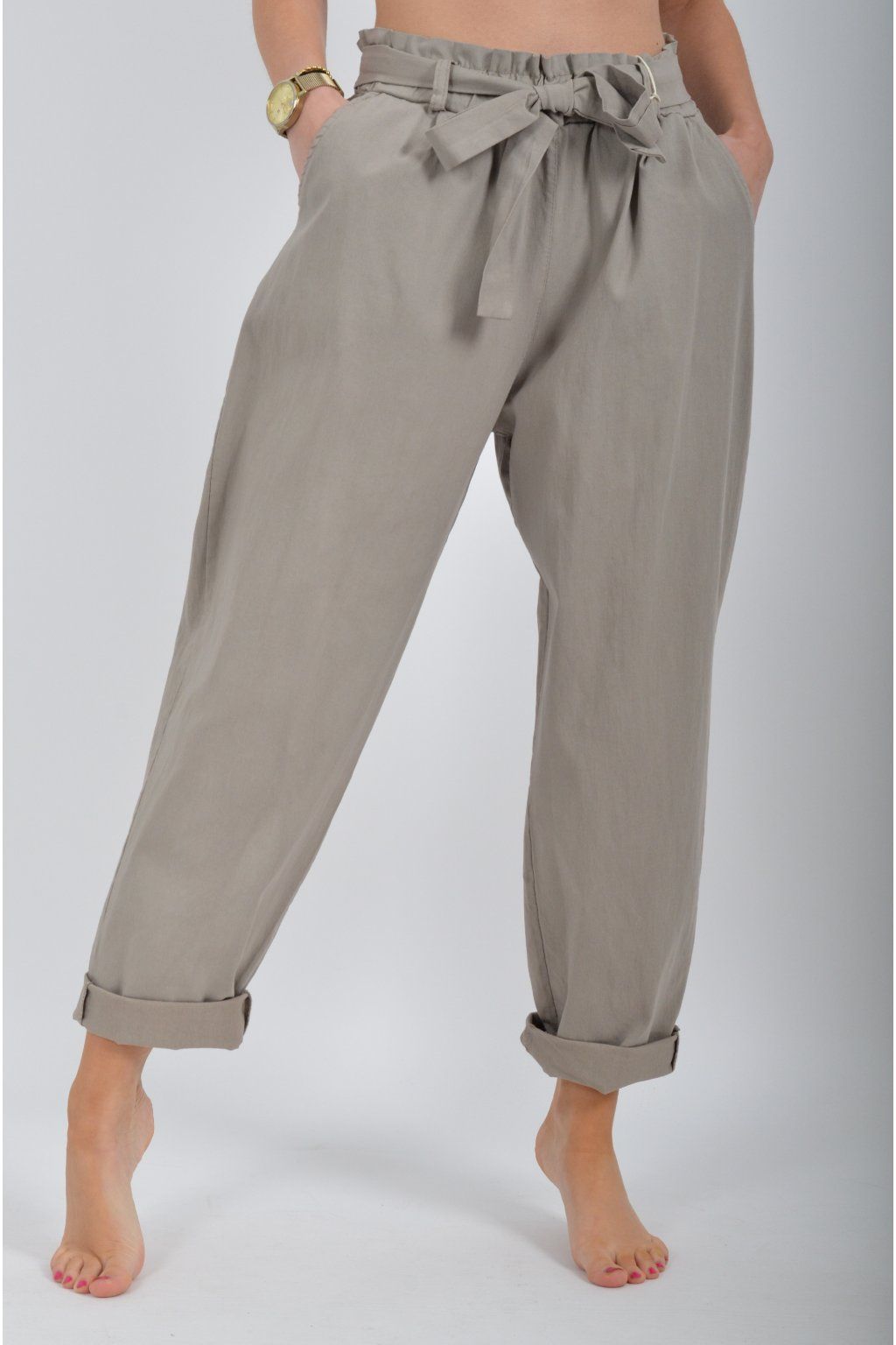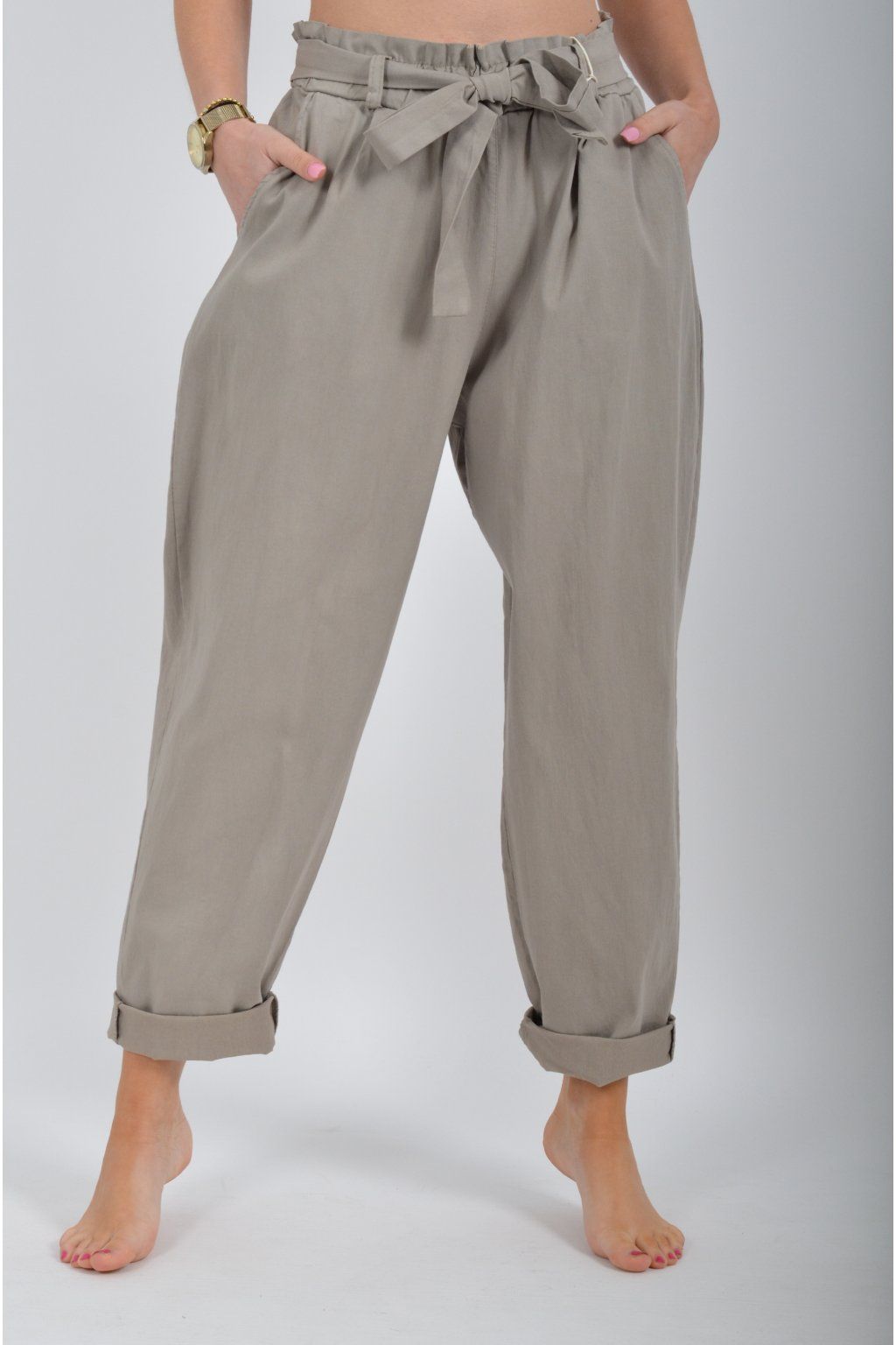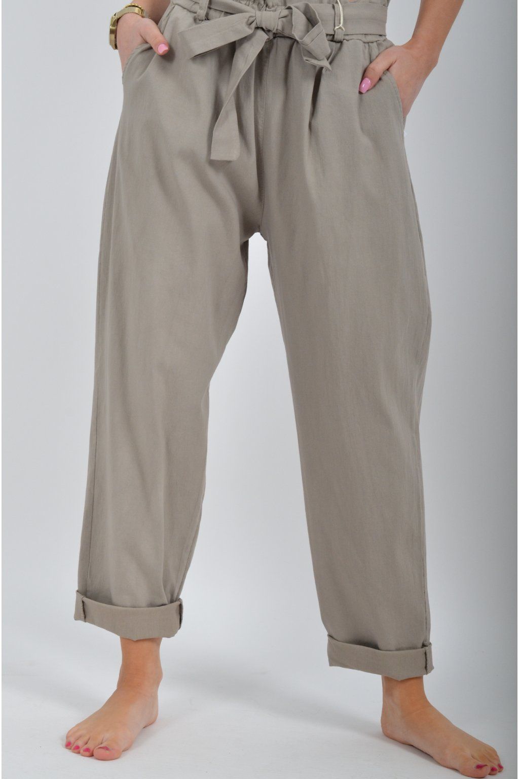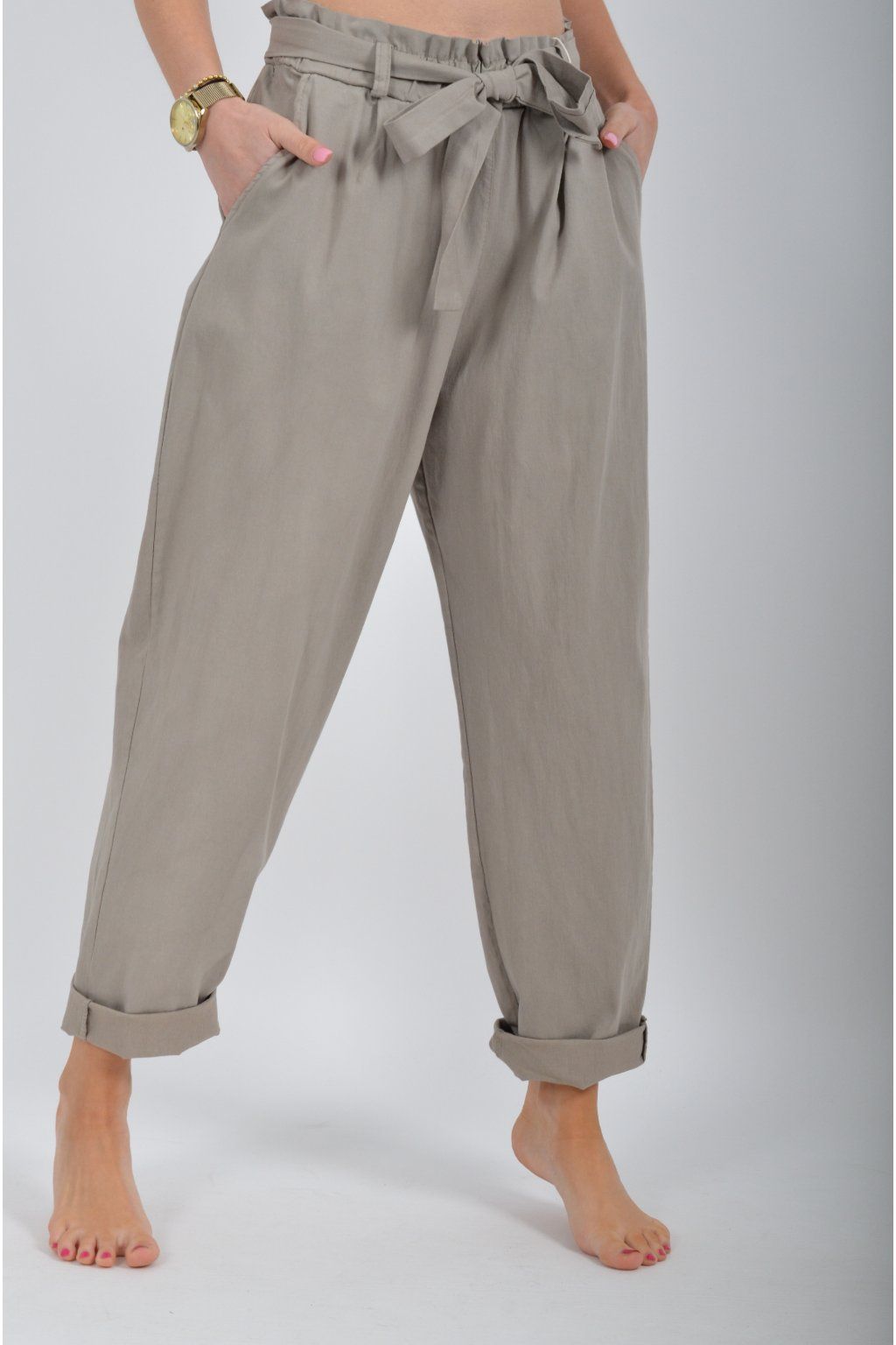 Jednobarevné kalhoty s kapsami na bocích, které se krásně přizpůsobí postavě, díky podílu elastanu. Jsou vhodné pro každodenní nošení. V pase je zapracovaná guma a navíc je ke kalhotám pásek.