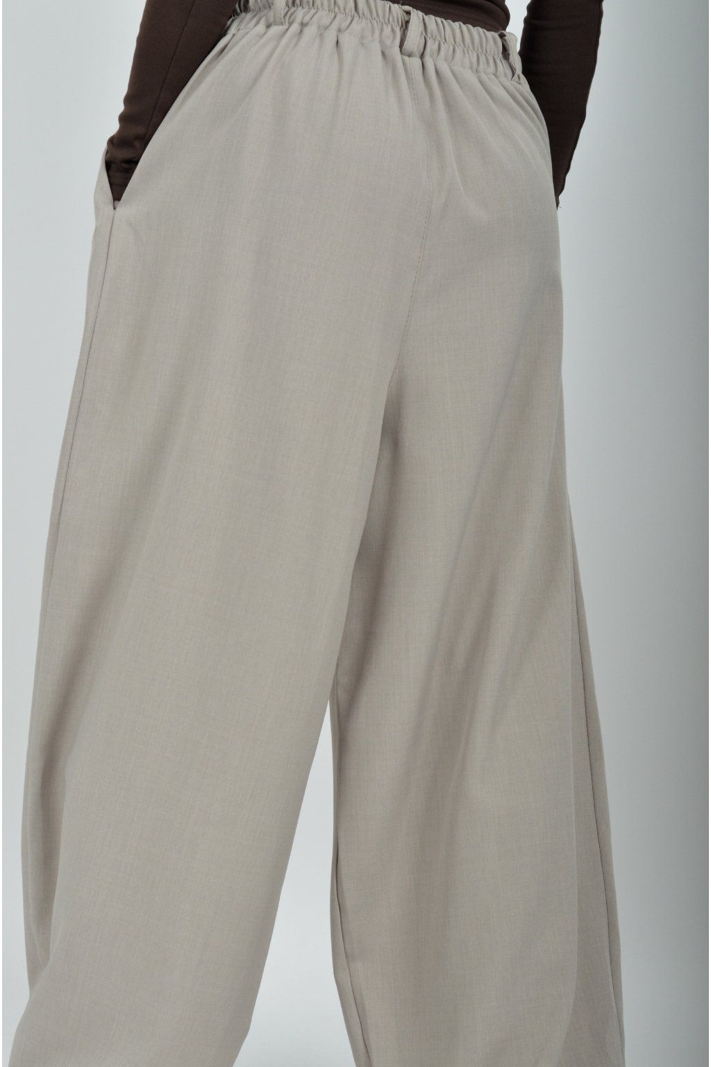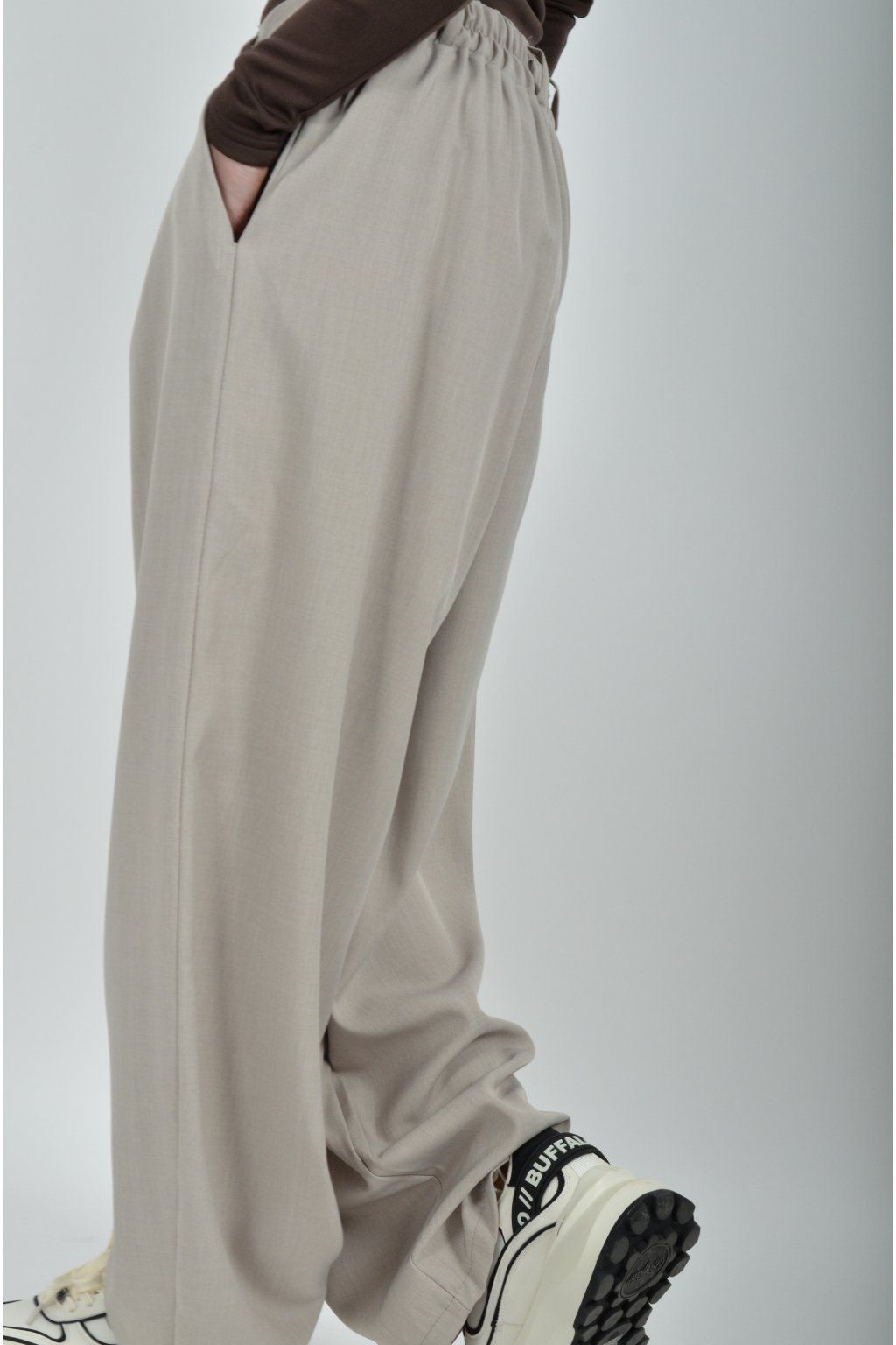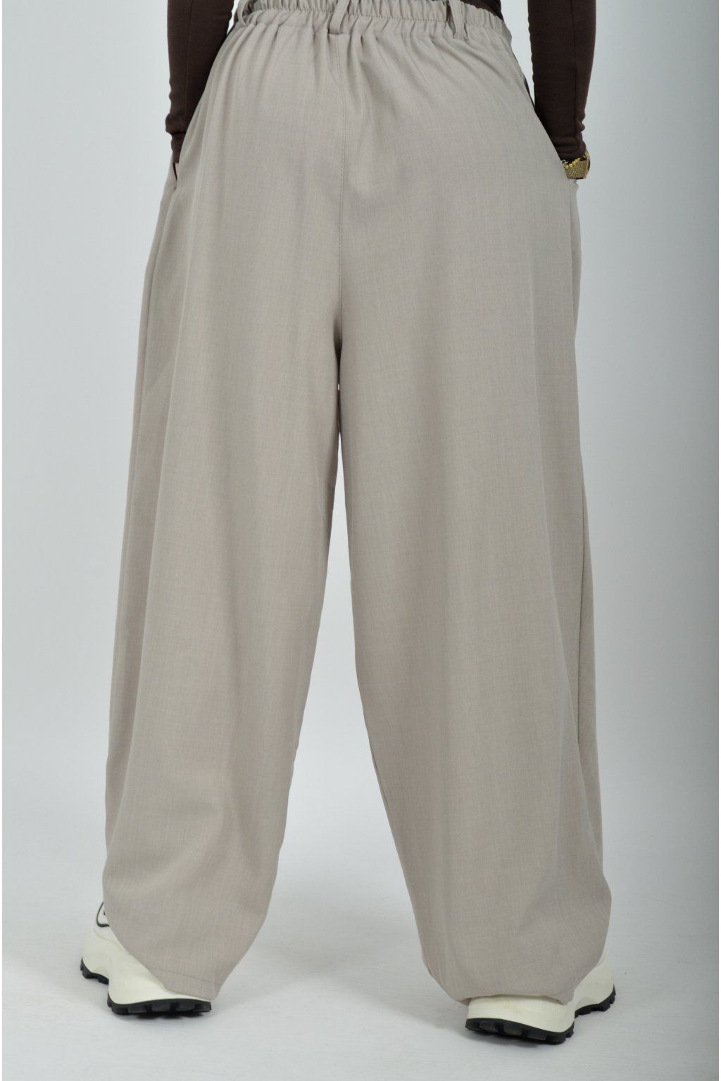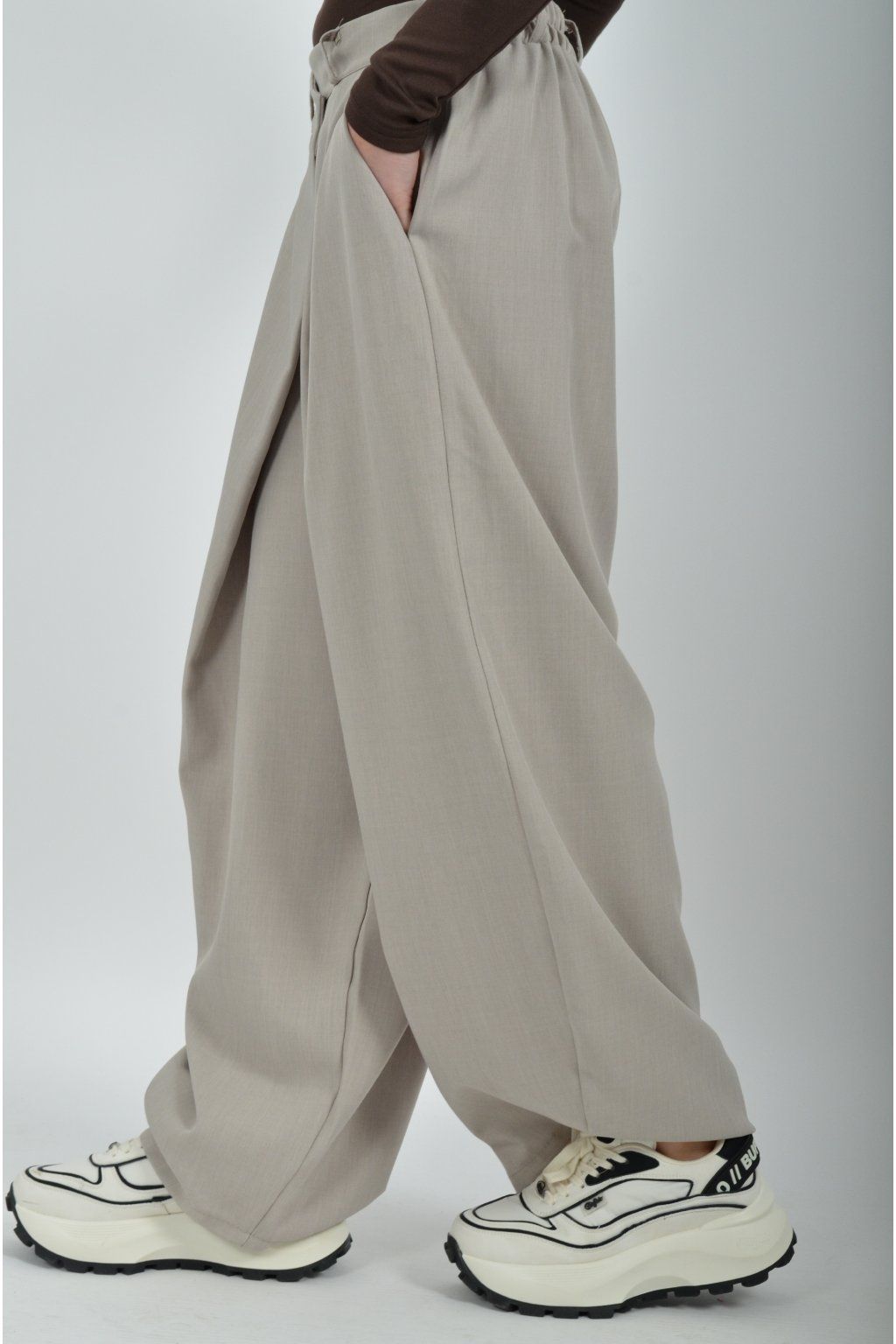Jednobarevné kalhoty s překříženým pasem a kapsami na bocích. Krásně přizpůsobí postavě, díky podílu elastanu. Jsou vhodné pro každodenní nošení. V pase je zapracovaná guma a jsou vyrobené z příjemného odlehčeného materiálu.