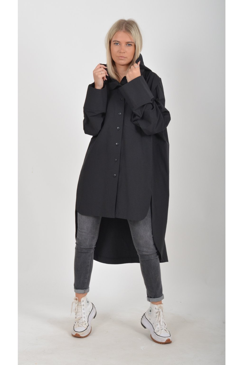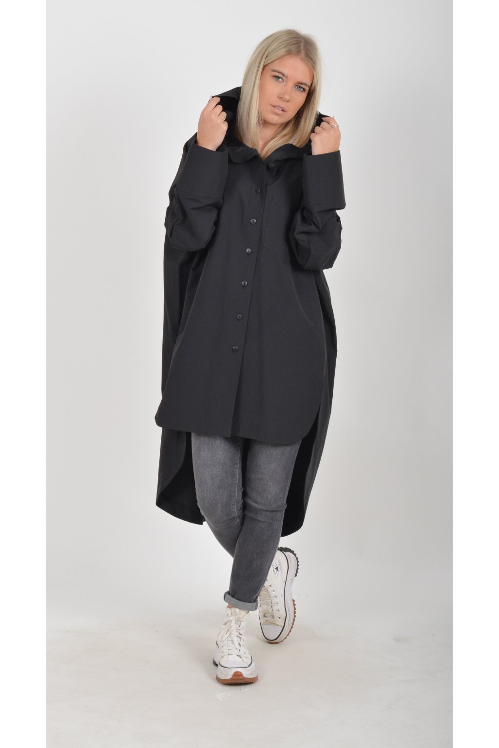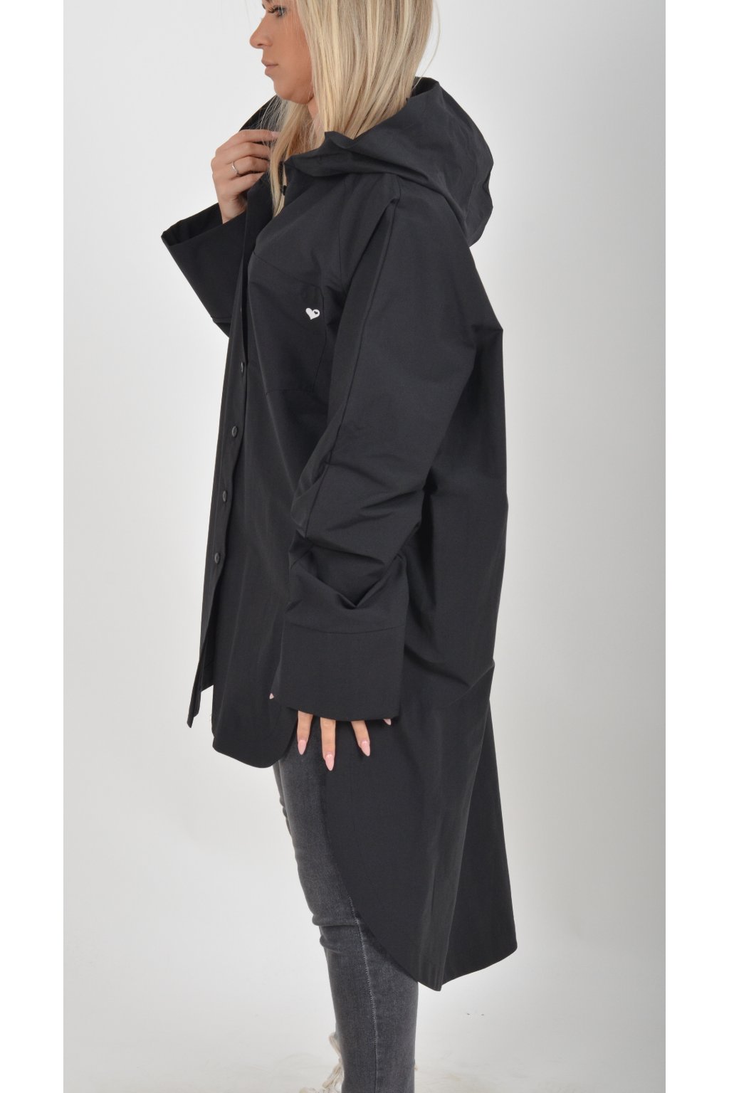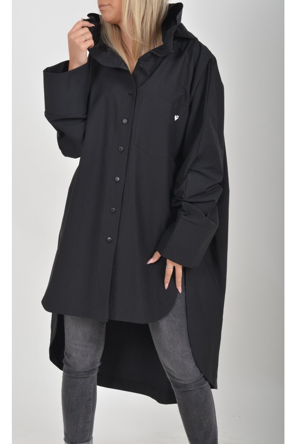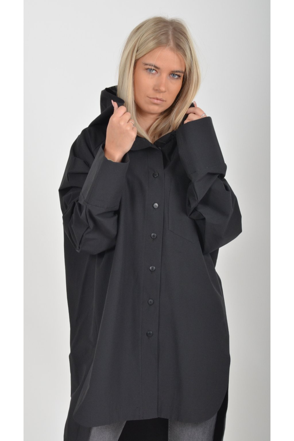 Luxusní oversize košile atypického střihu s kapucí. Zadní část košile je výrazně delší než přední, čímž optický prodlouží postavu. Má náprsní kapsy a dlouhý rukáv. Zapínání má sedm knoflíků. Košile je vyrobena z velice příjemného materiálu. Je vhodná jak džínům, tak k legínám. Hodí se jak do společnosti, tak i ke každodennímu nošení.