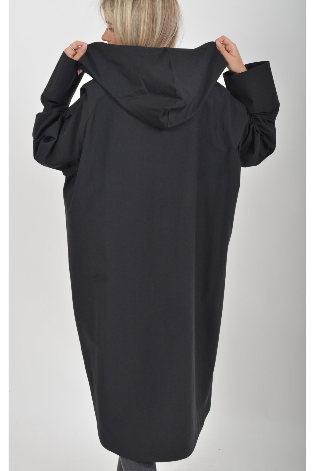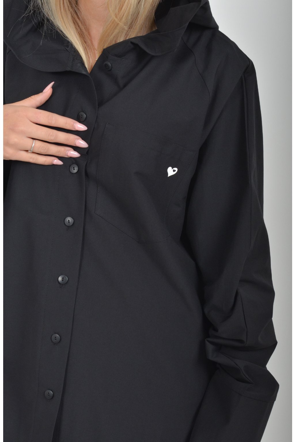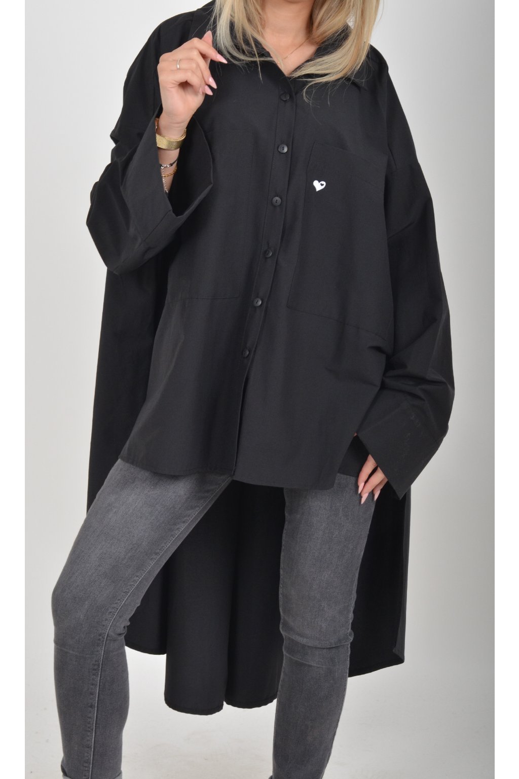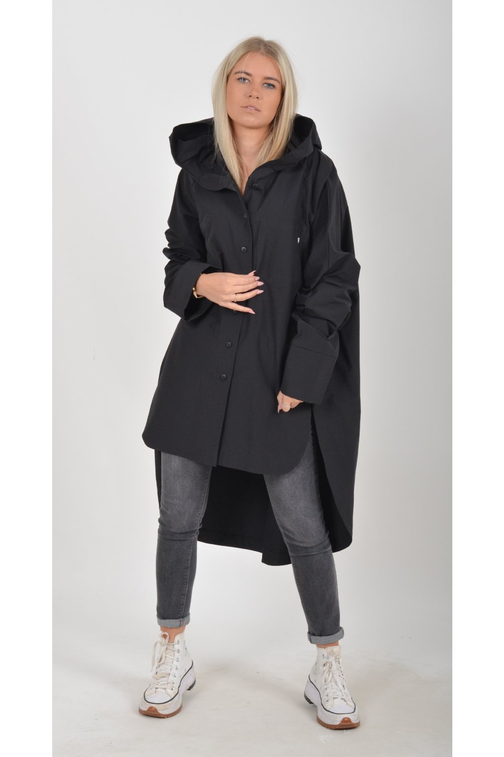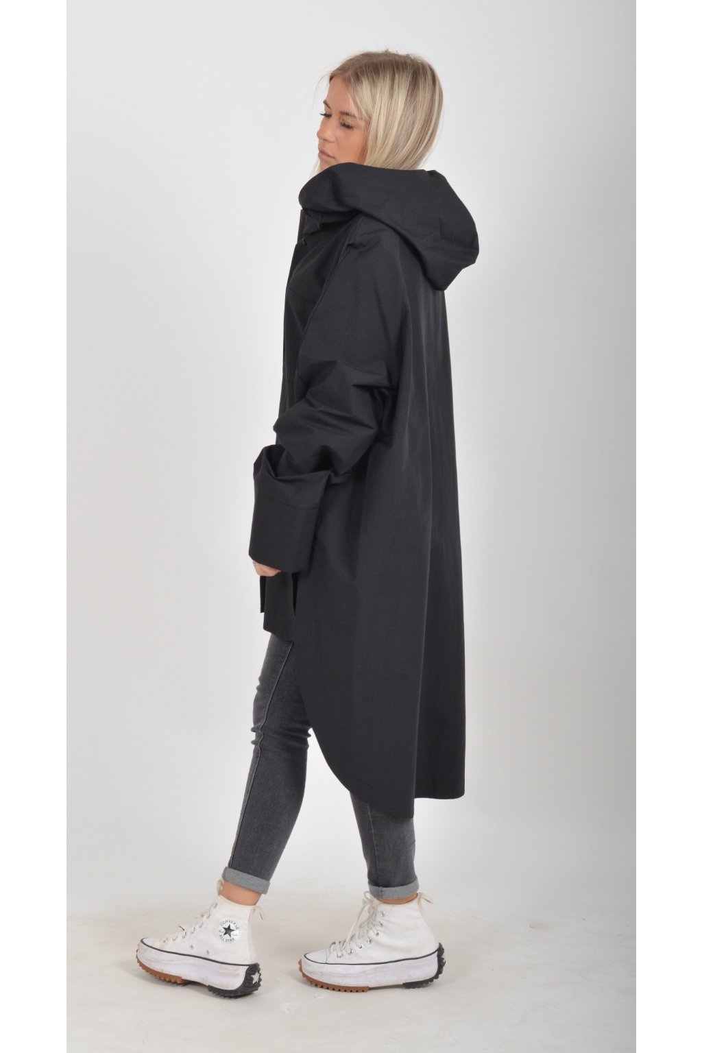 Luxusní oversize košile atypického střihu s kapucí. Zadní část košile je výrazně delší než přední, čímž optický prodlouží postavu. Má náprsní kapsy a dlouhý rukáv. Zapínání má sedm knoflíků. Košile je vyrobena z velice příjemného materiálu. Je vhodná jak džínům, tak k legínám. Hodí se jak do společnosti, tak i ke každodennímu nošení.