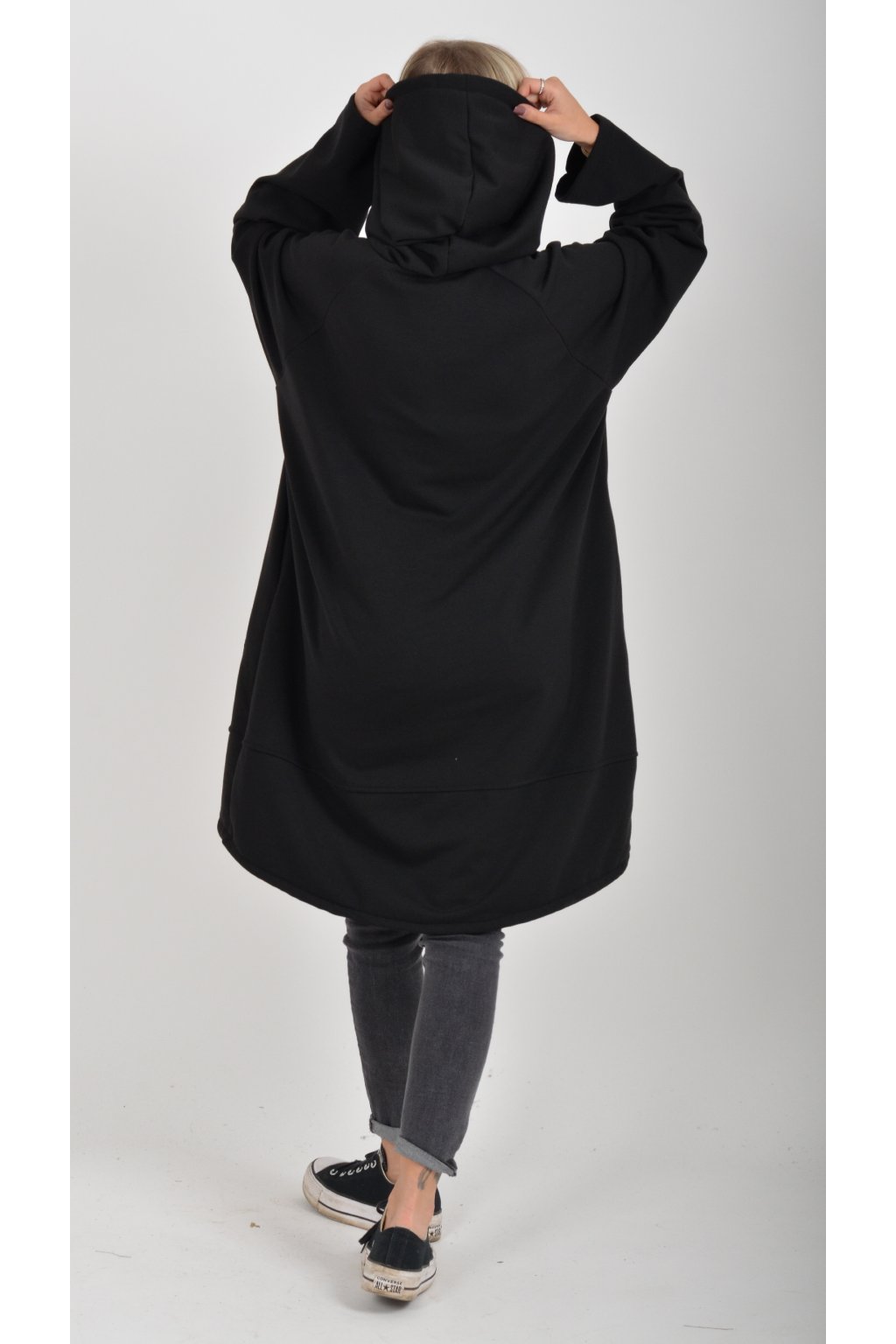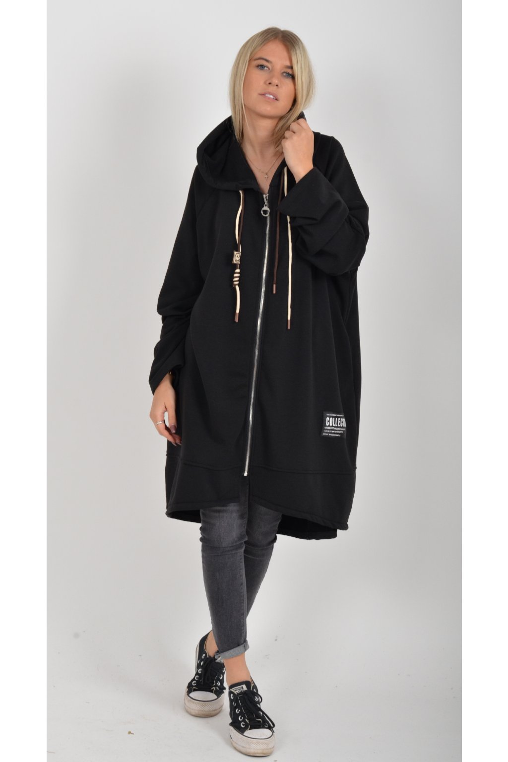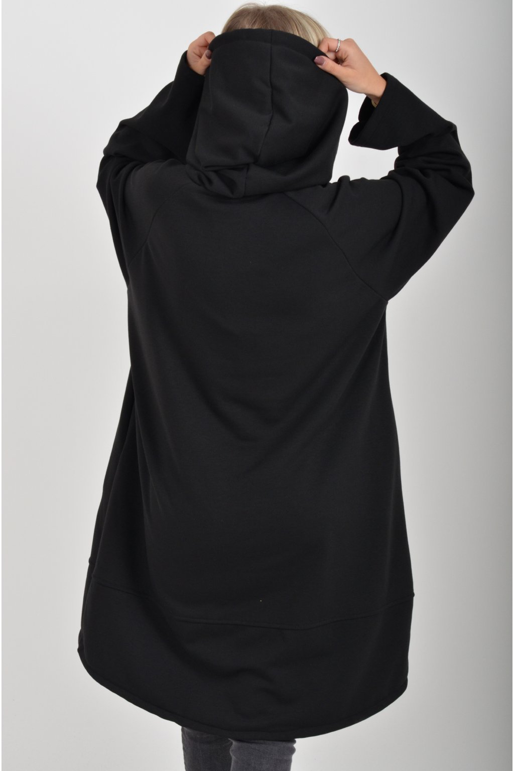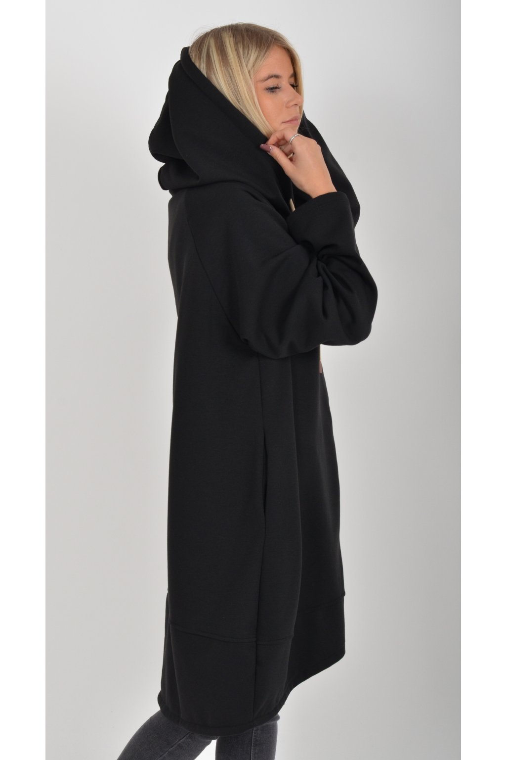 Mikina s kapucí, dlouhým rukávem a kapsami na bocích. Přední část je kratší než zadní. Je vyrobena z velice příjemného a kvalitního materiálu.