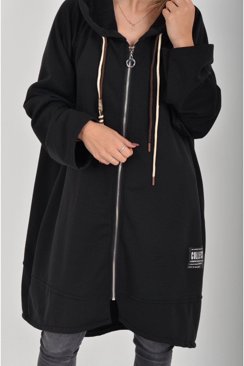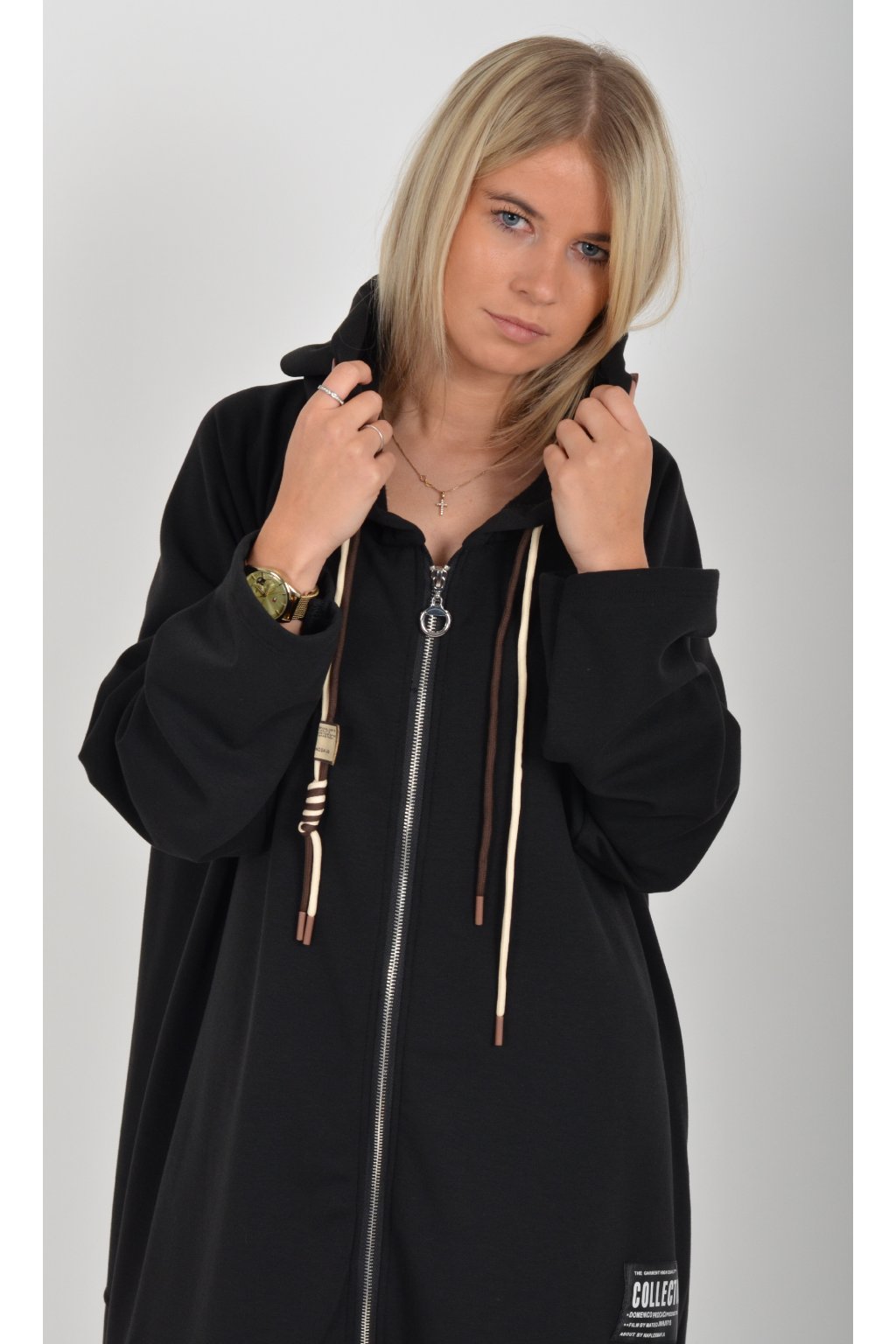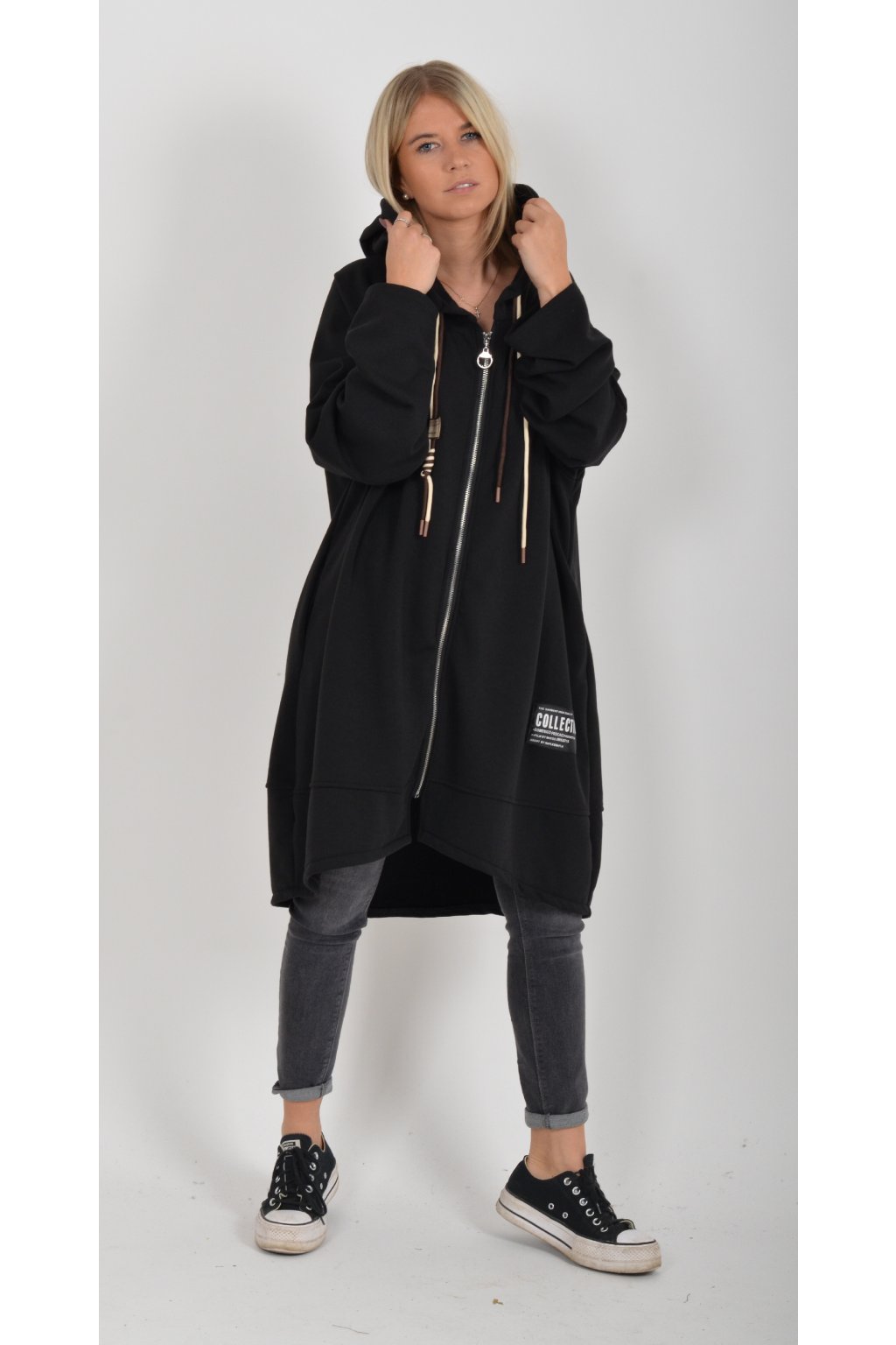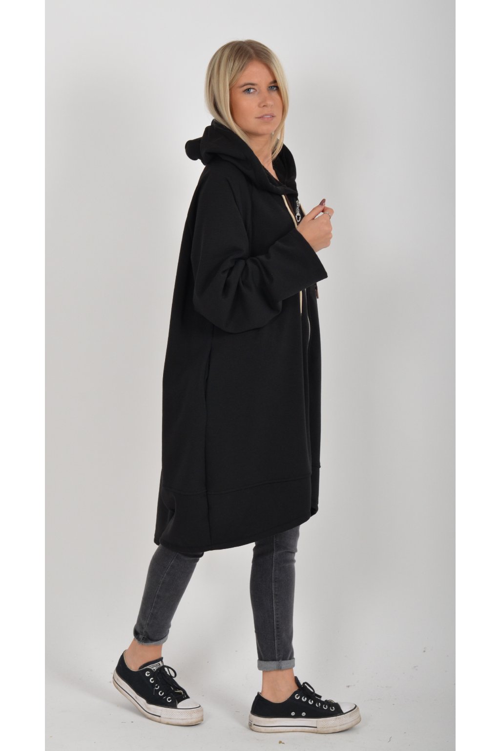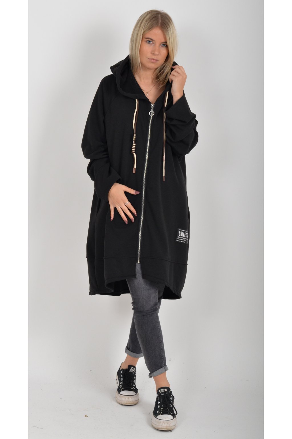Mikina s kapucí, dlouhým rukávem a kapsami na bocích. Přední část je kratší než zadní. Je vyrobena z velice příjemného a kvalitního materiálu.