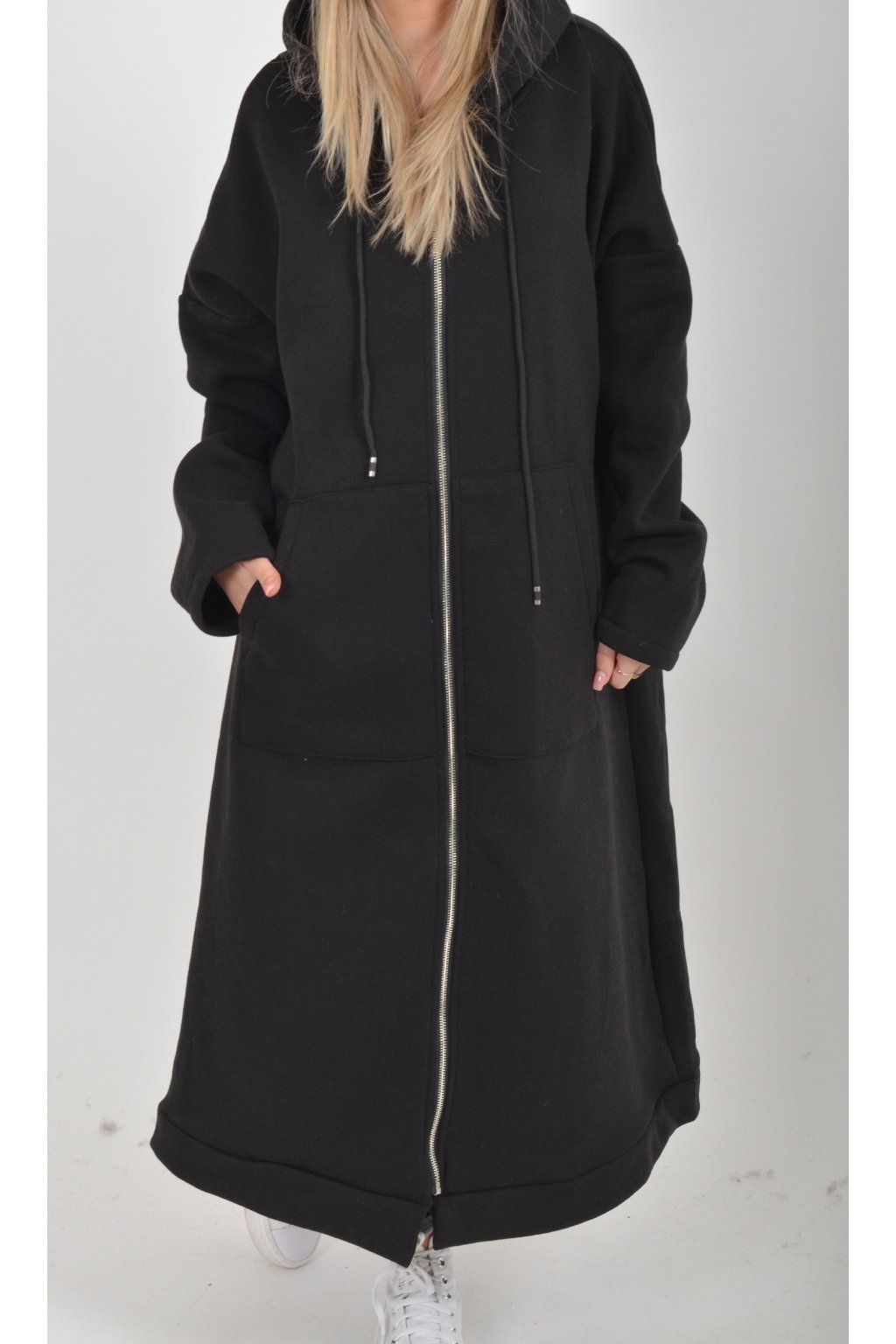 Maxi mikina s kapucí, dlouhým rukávem a klokaní kapsou. Je vyrobena z velice příjemného a kvalitního materiálu.