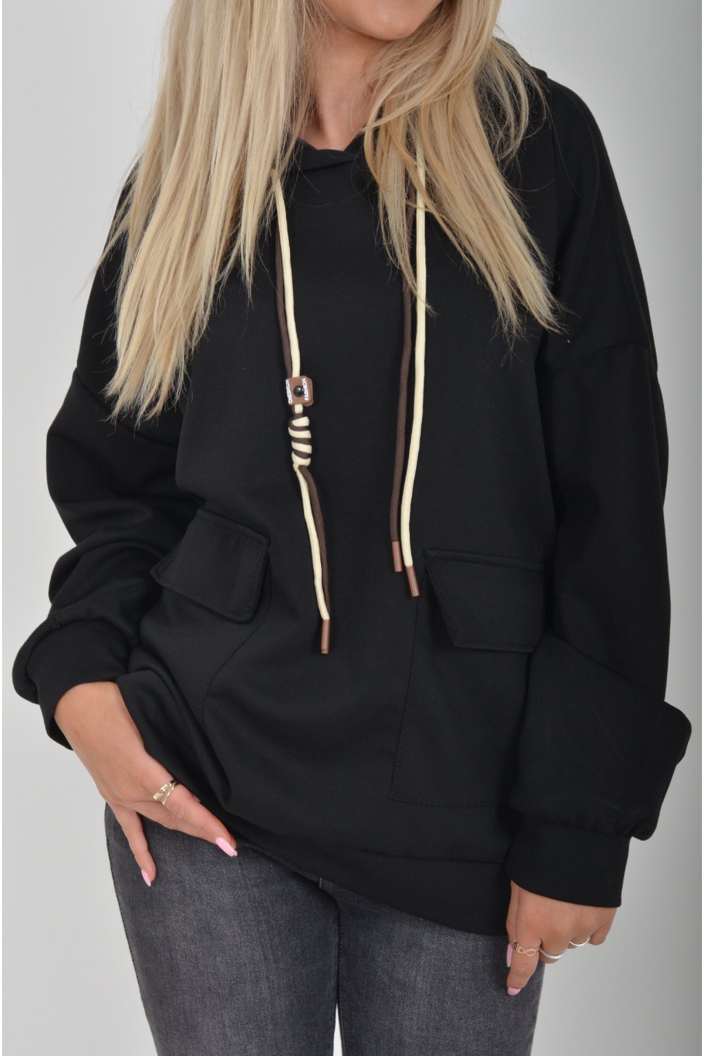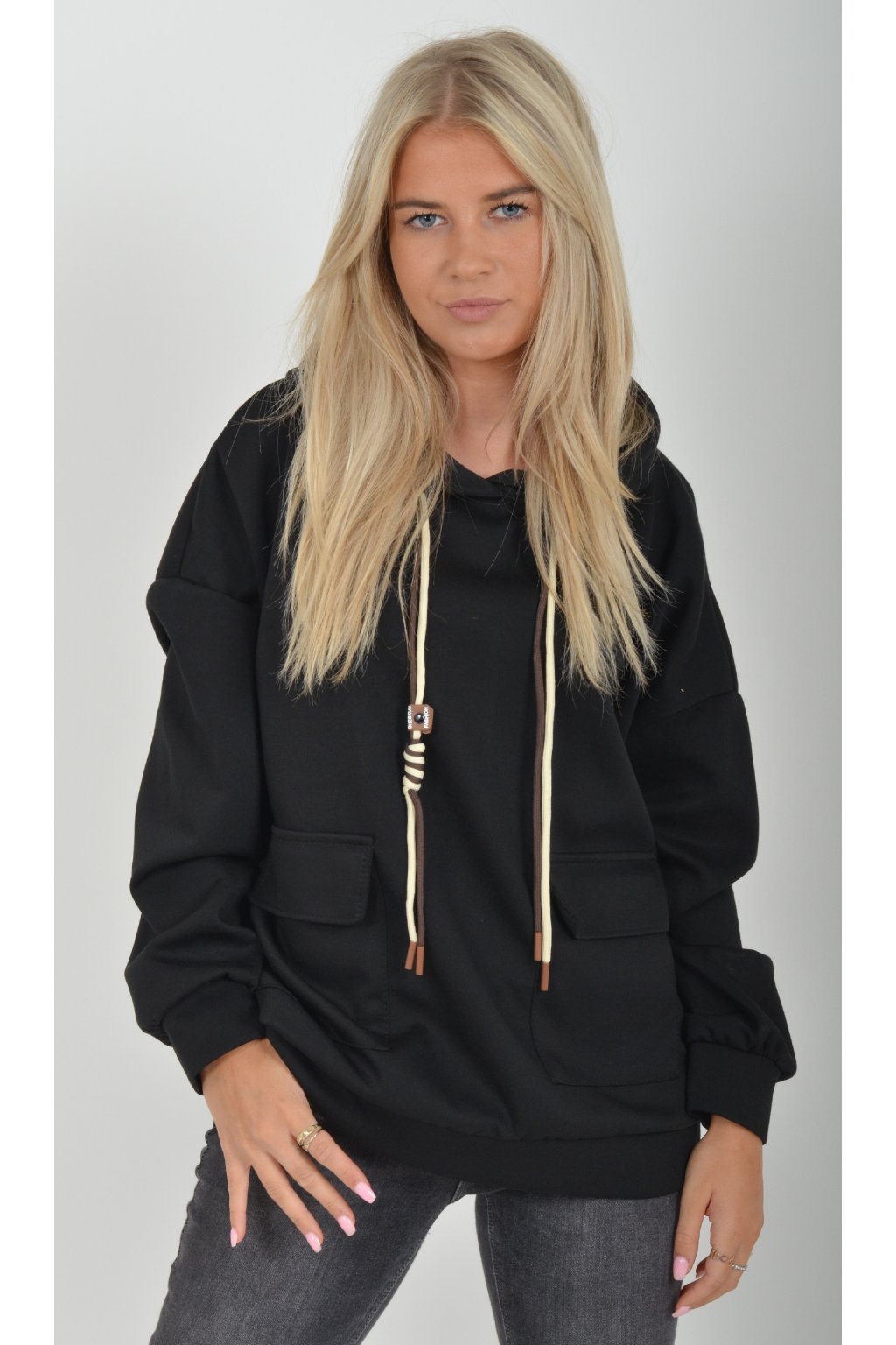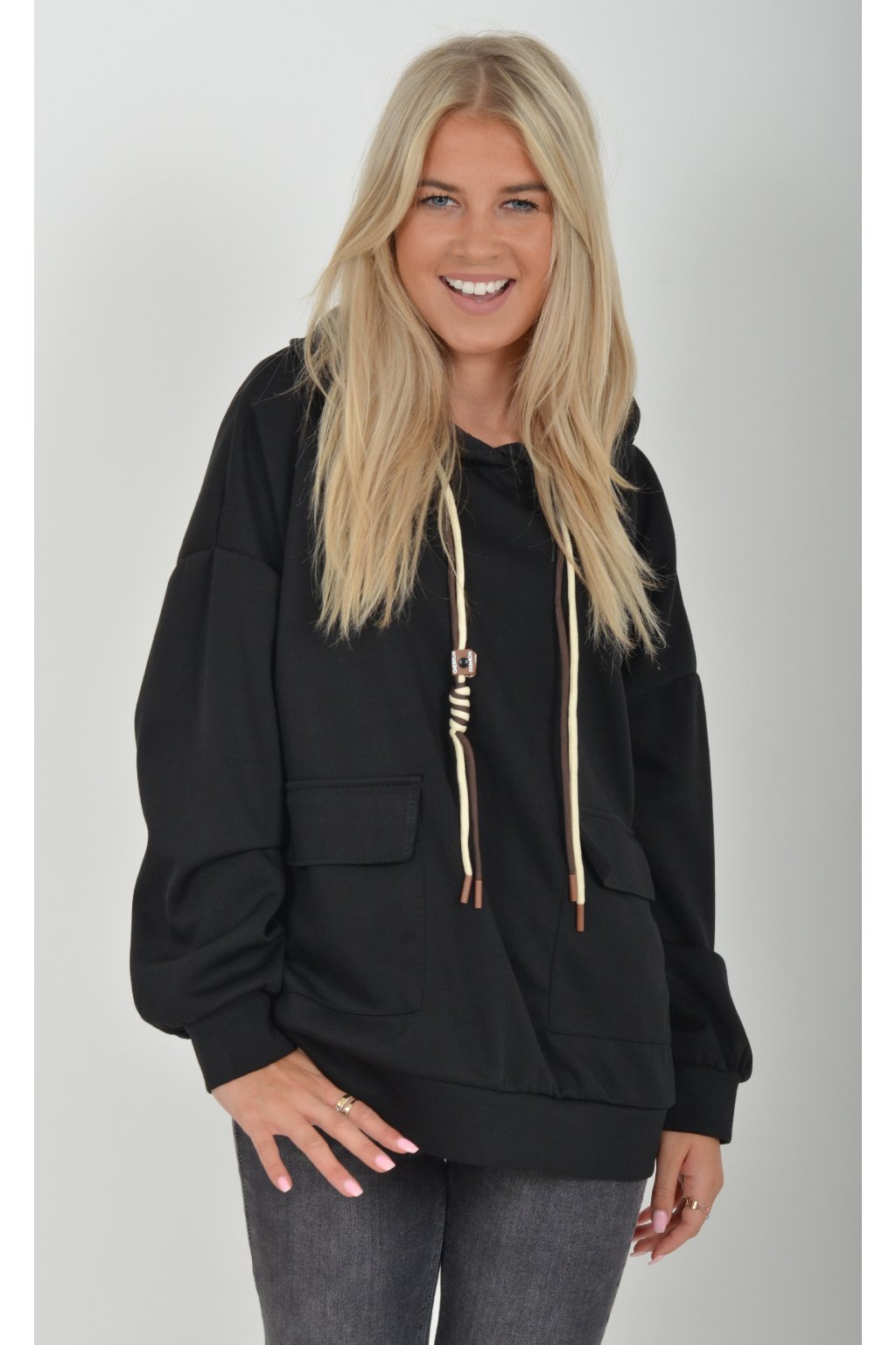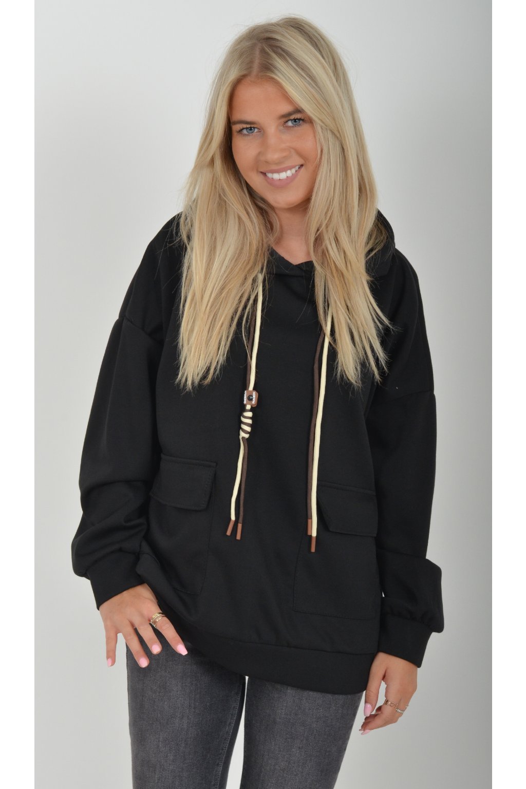 Mikina s dlouhým rukávem a kapucí. V přední části má kapsy a je vyrobena z velice příjemného a kvalitního materiálu. Je vhodná pro každodenní nošení.