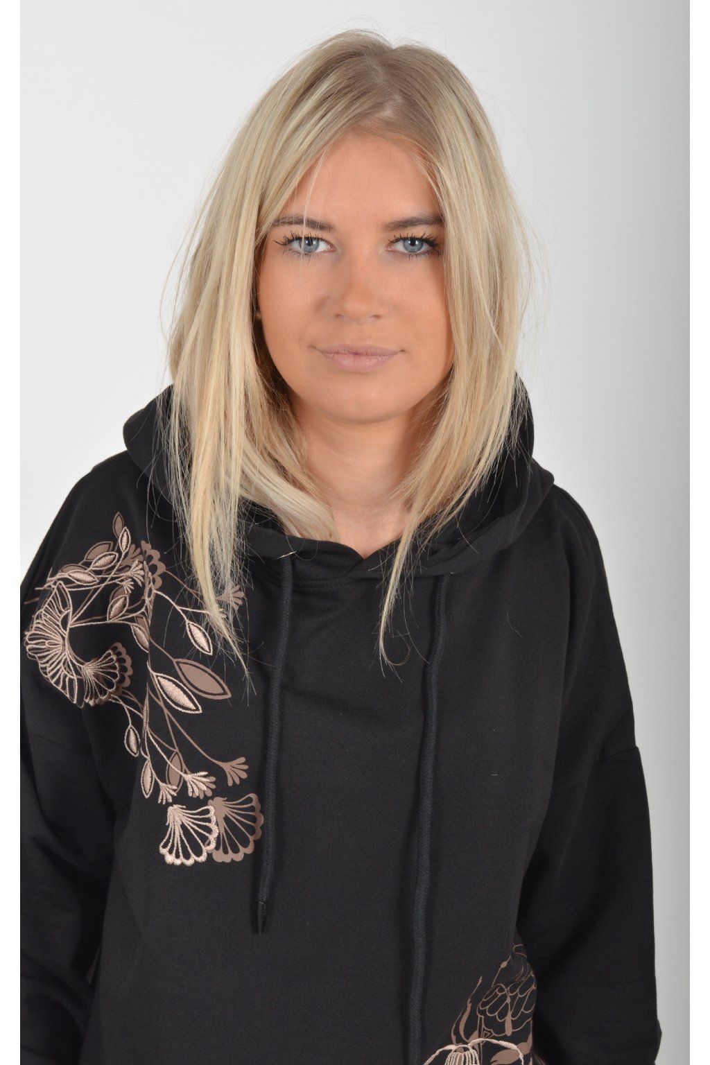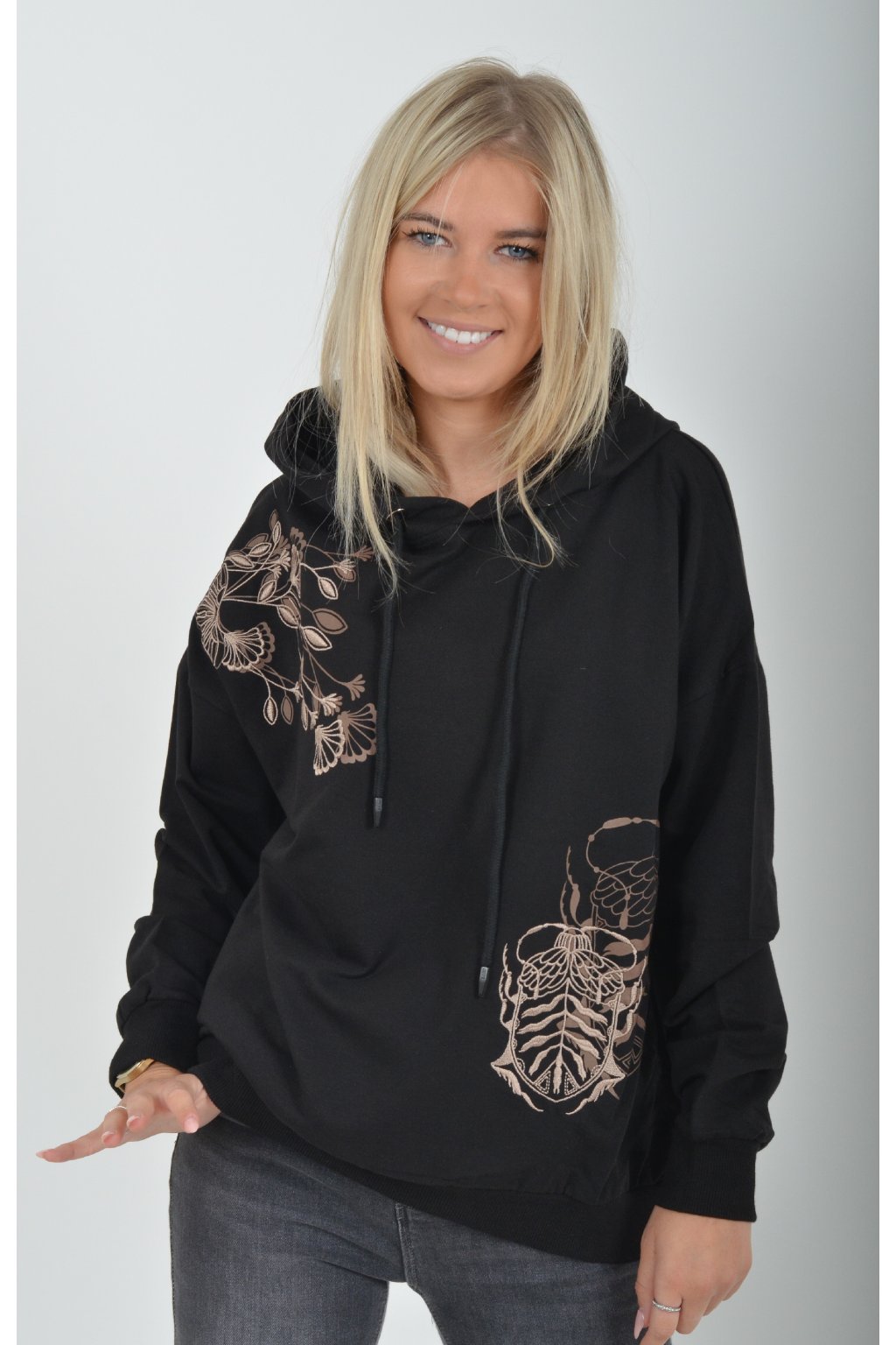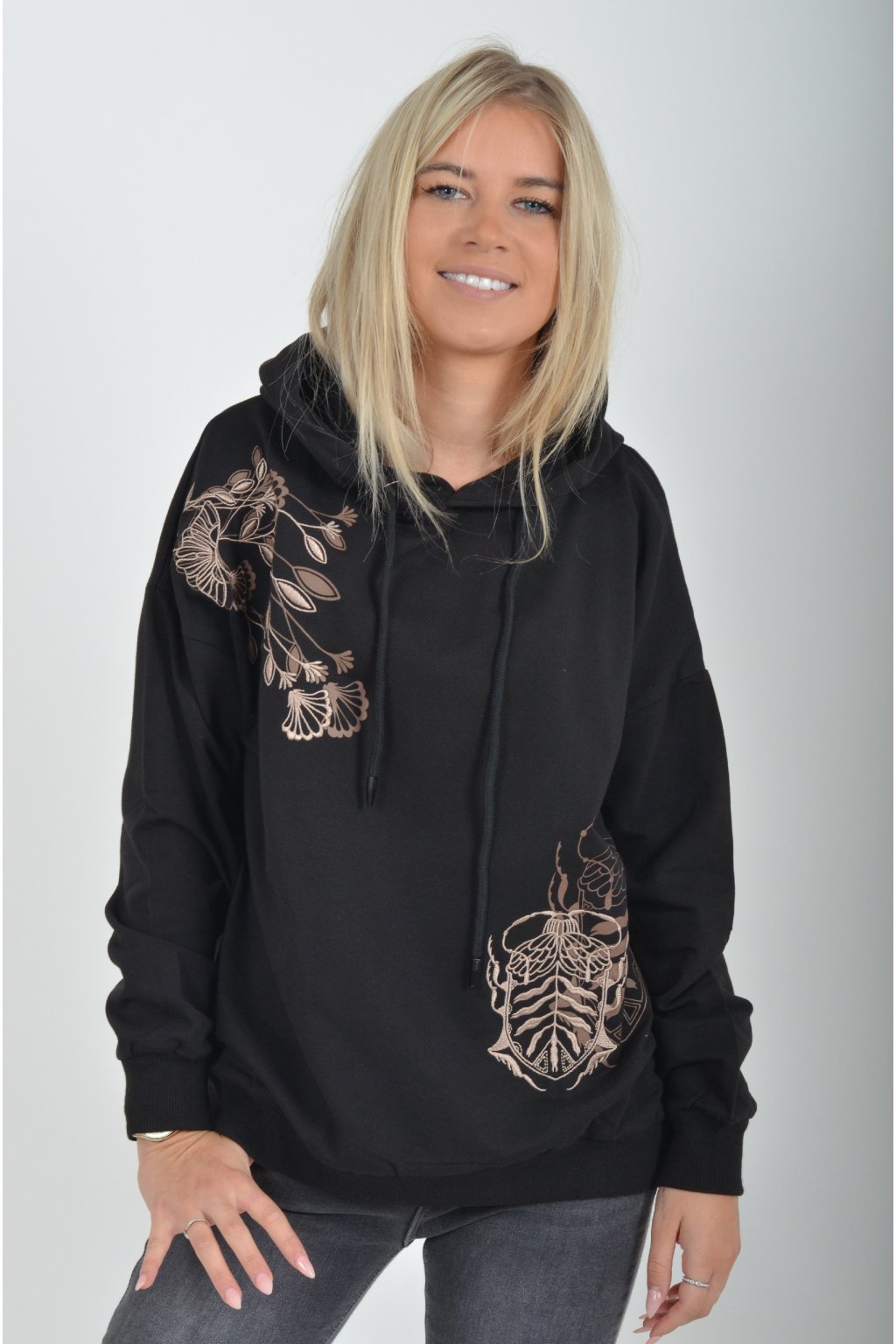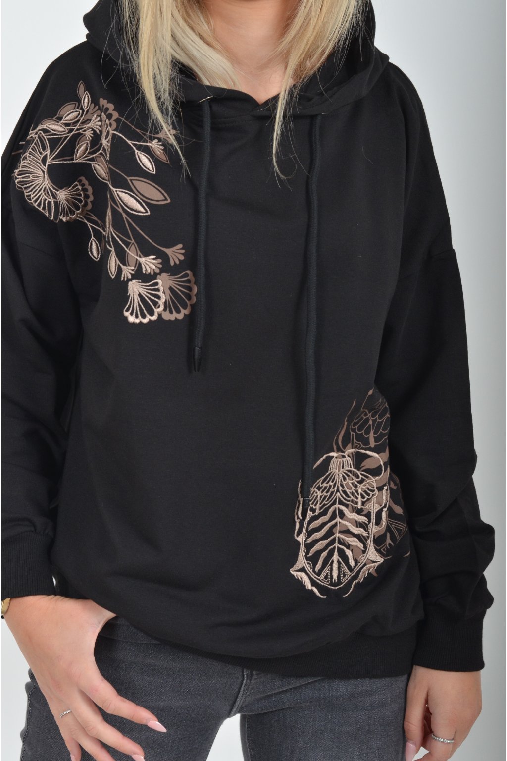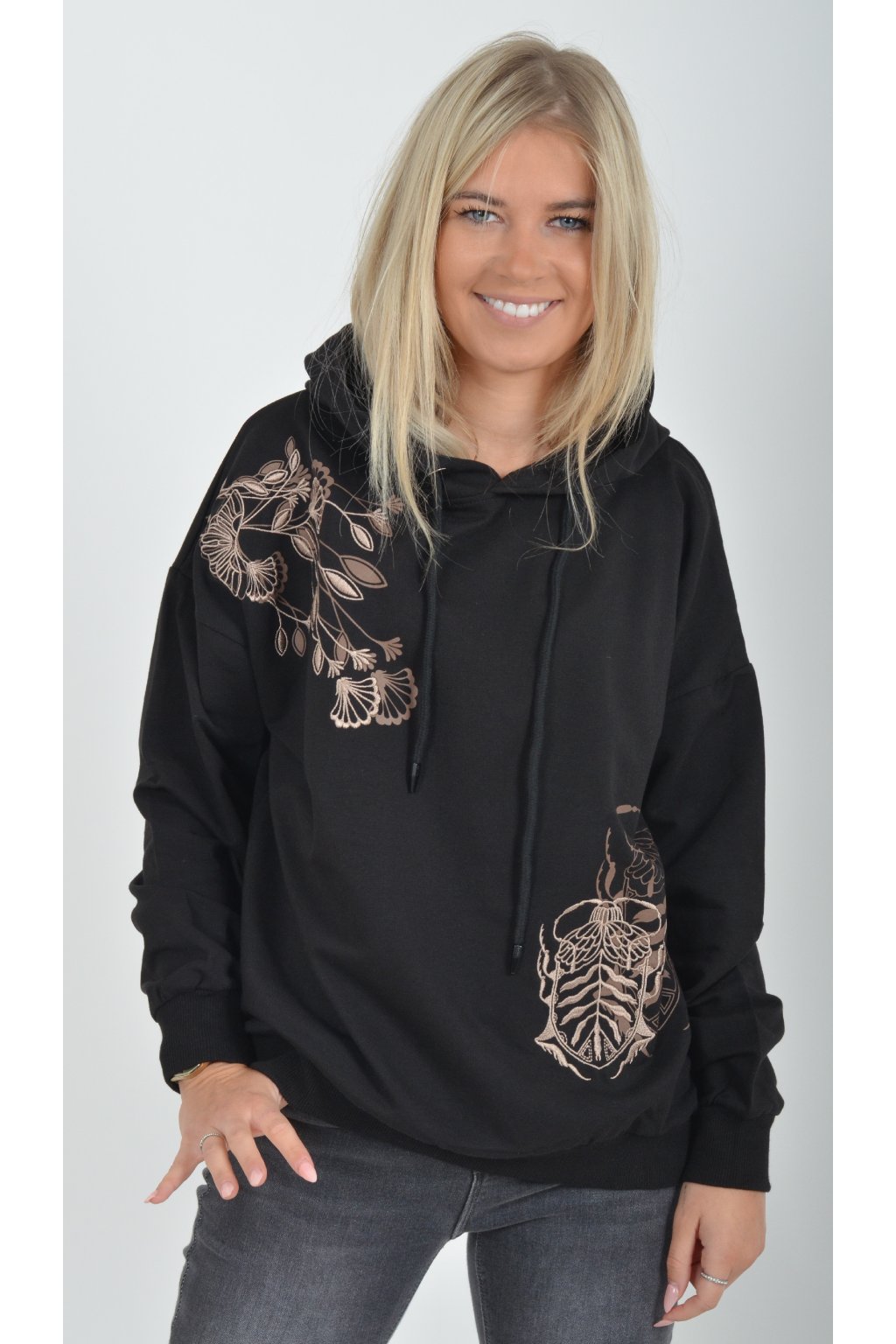 Mikina s dlouhým rukávem a kapucí. V přední části je elegantní výšivka a potisk. Je vyrobena z velice příjemného a kvalitního materiálu. Mikina je vhodná pro každodenní nošení.