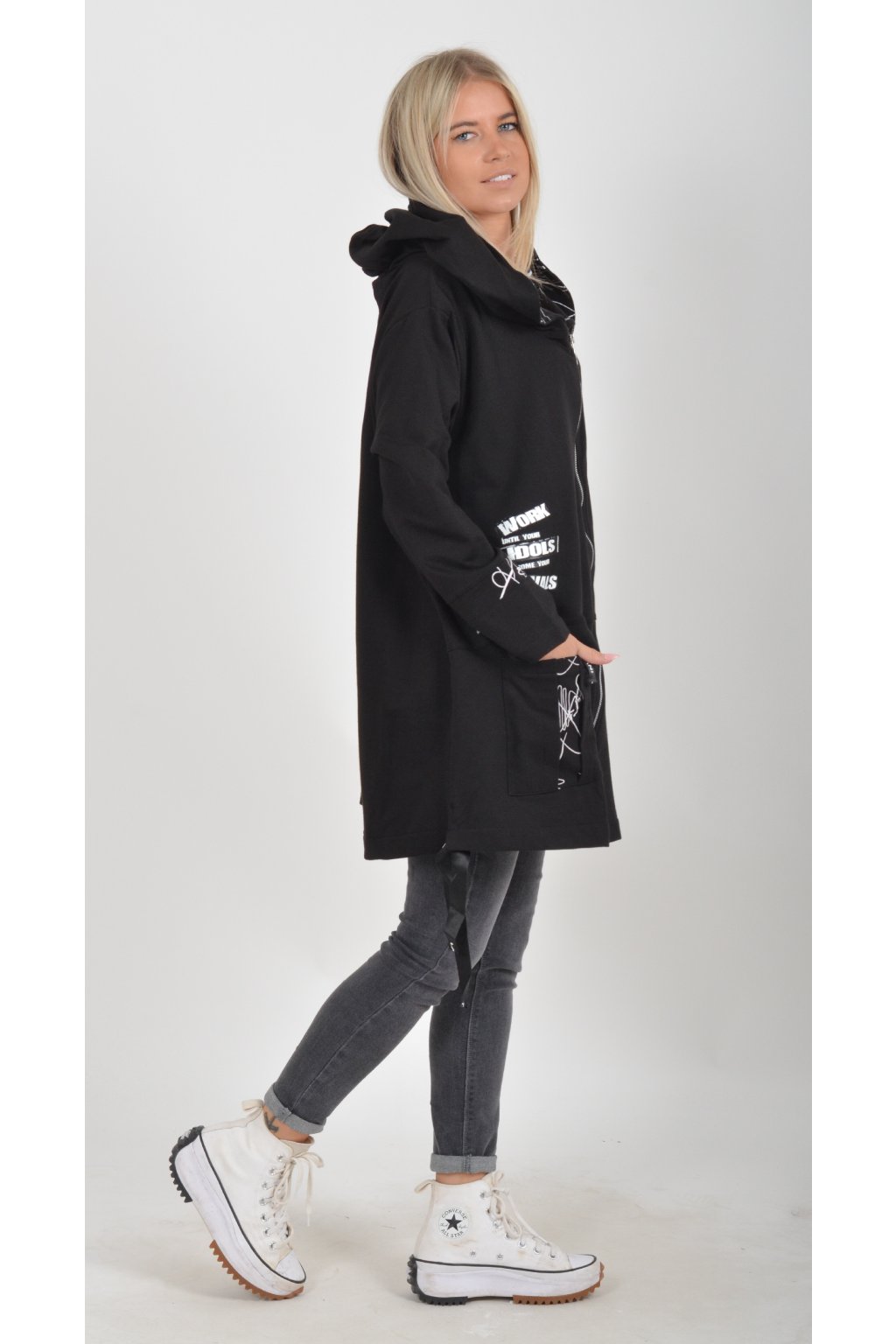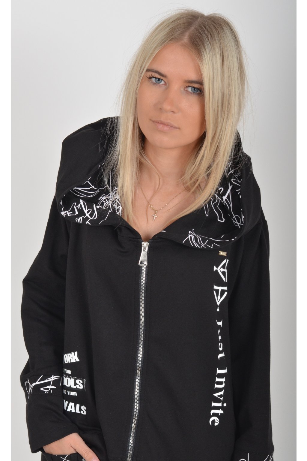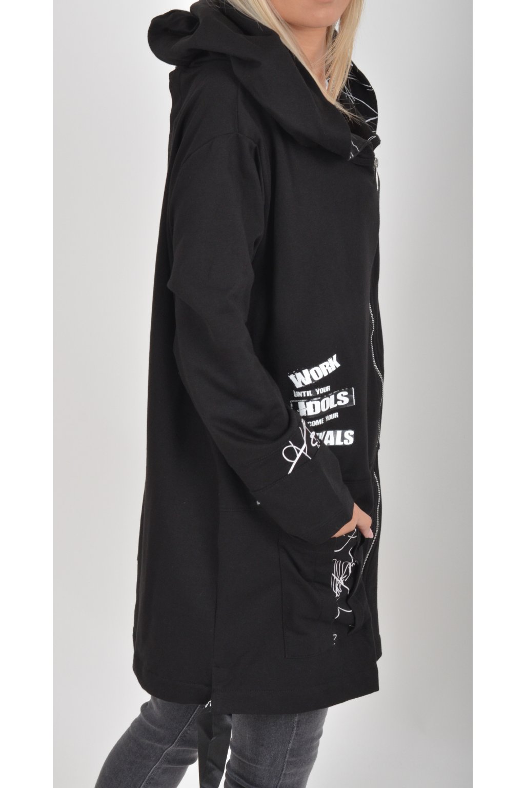 Prodloužená mikina s potiskem a dlouhým rukávem. V přední části má kapsy a ve spodní části je zapracovaná stuha pro libovolné stažení. Je vyrobena z velice příjemné a kvalitní turecké bavlny.