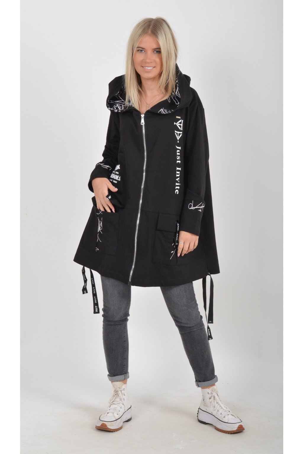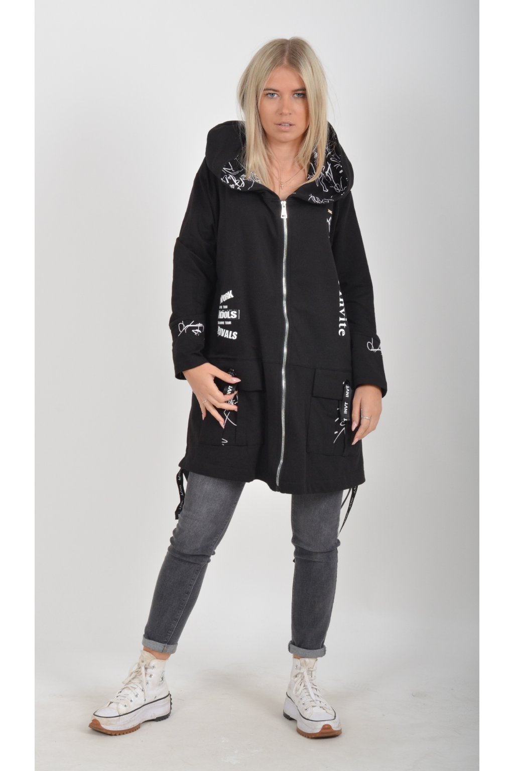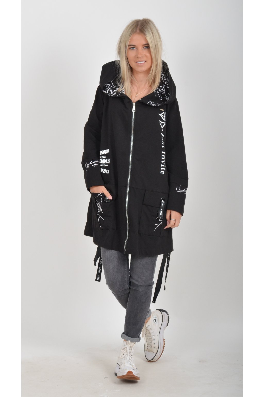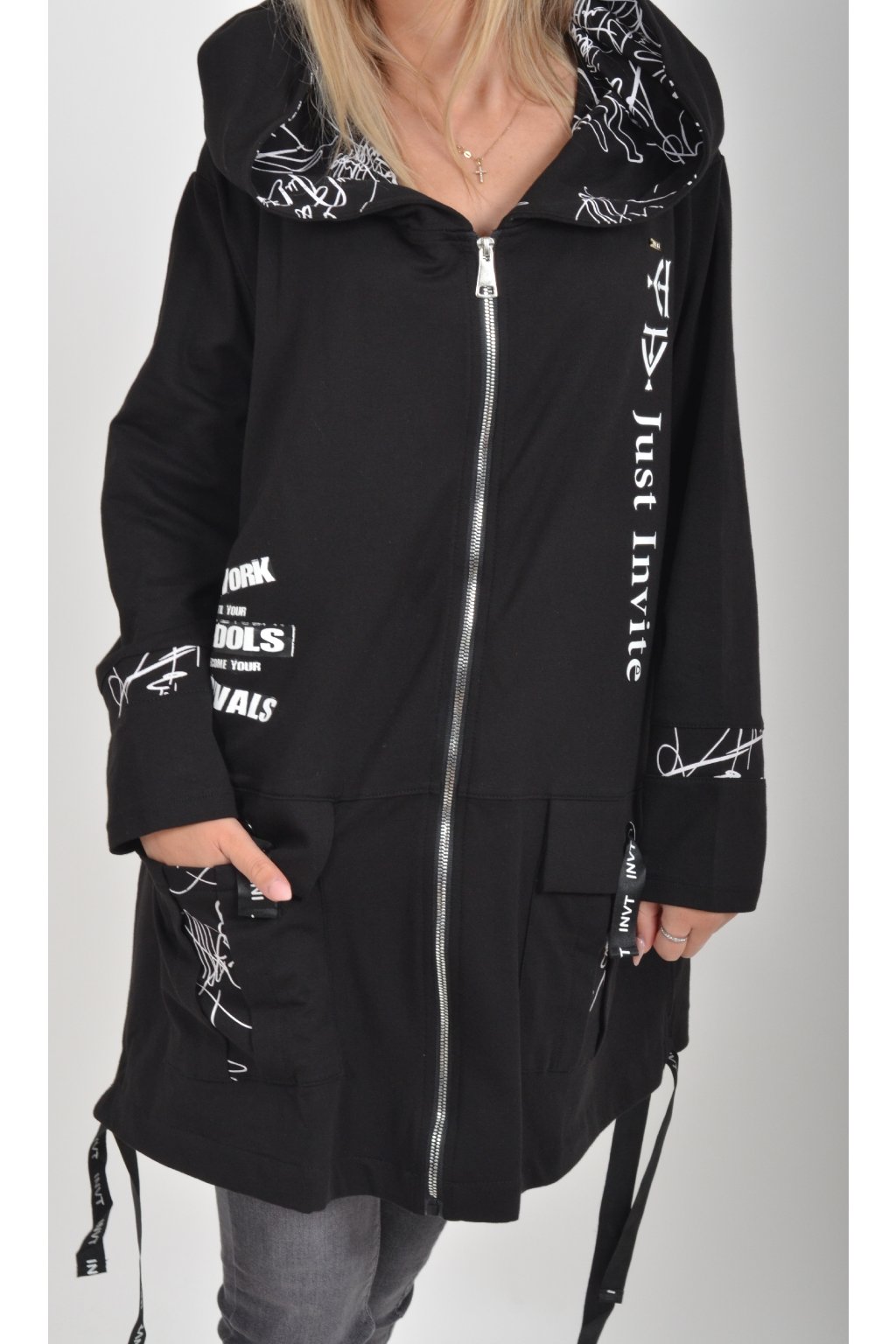 Prodloužená mikina s potiskem a dlouhým rukávem. V přední části má kapsy a ve spodní části je zapracovaná stuha pro libovolné stažení. Je vyrobena z velice příjemné a kvalitní turecké bavlny.