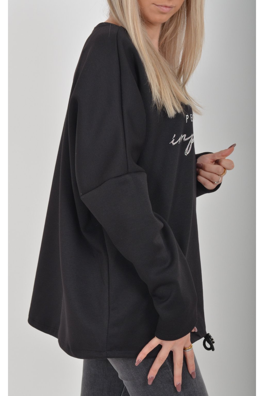 Mikina s dlouhým spadeným rukávem a potiskem. Ve spodní části je zapracovaná šňůrka pro libovolné stažení. Je vyrobena z velice příjemného a kvalitního materiálu.