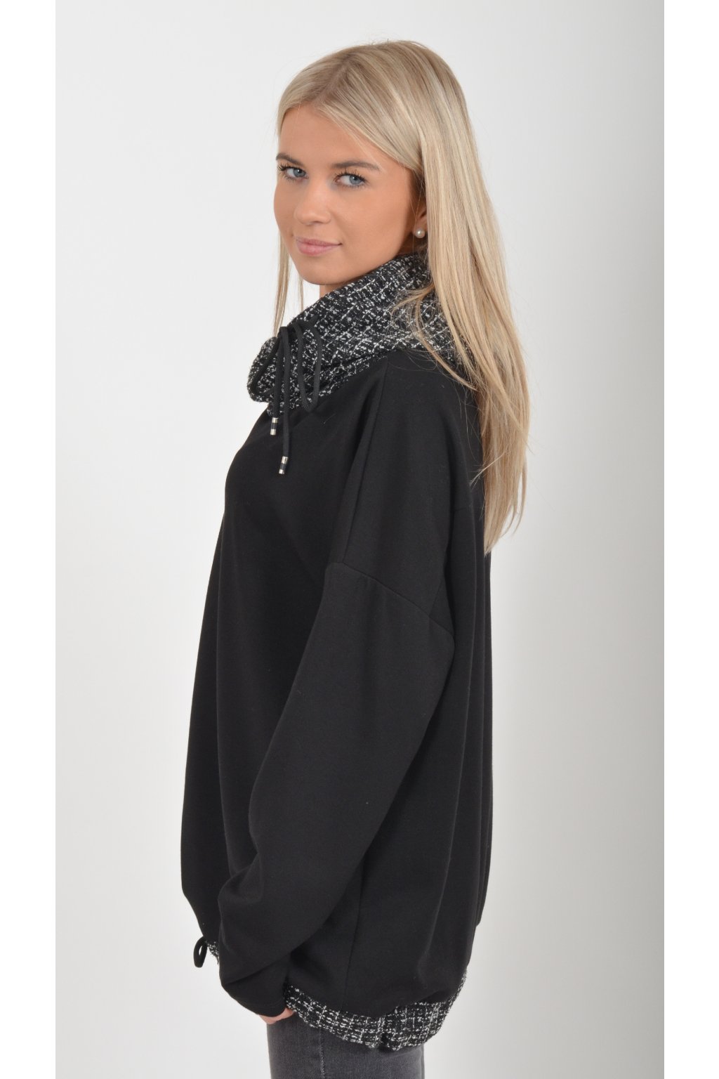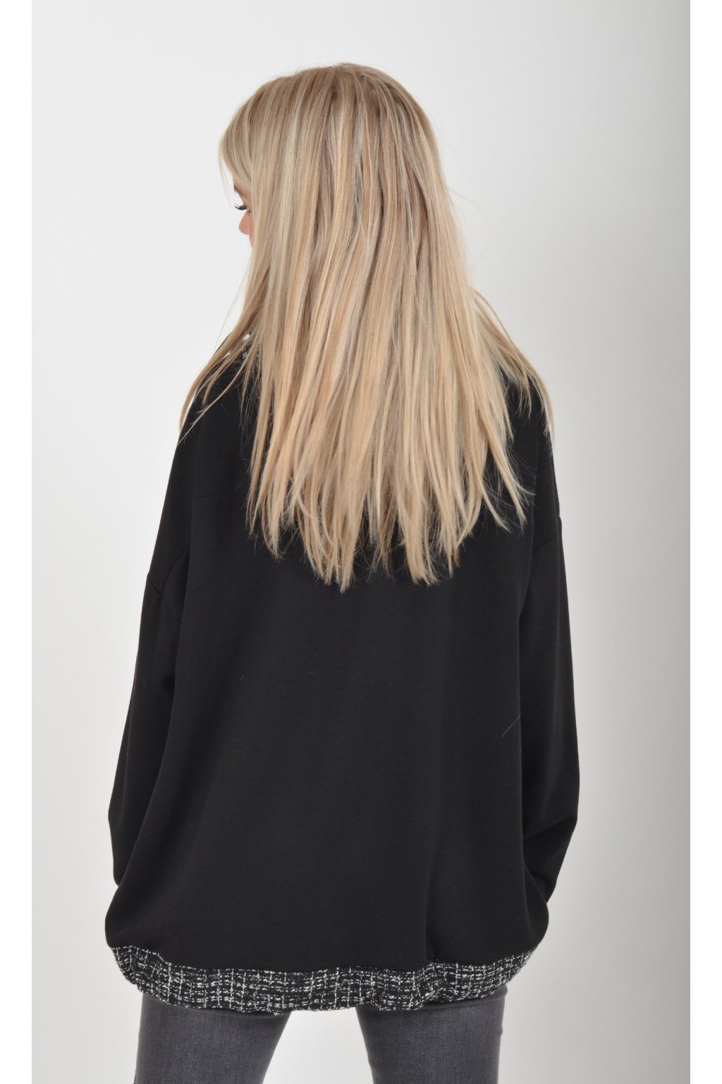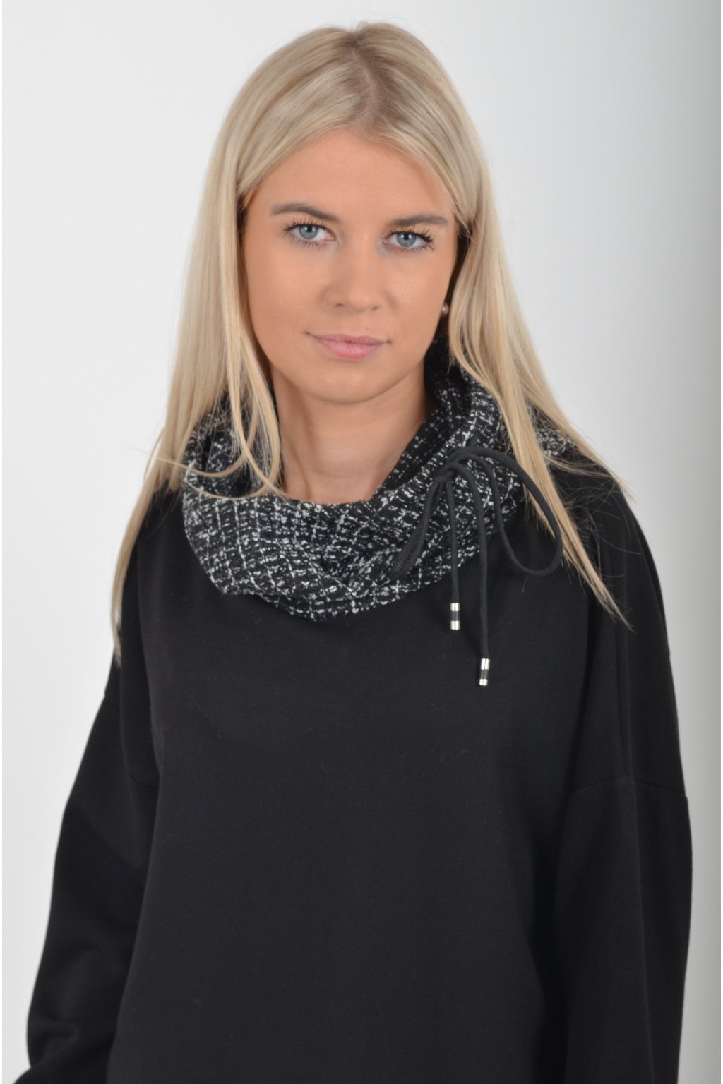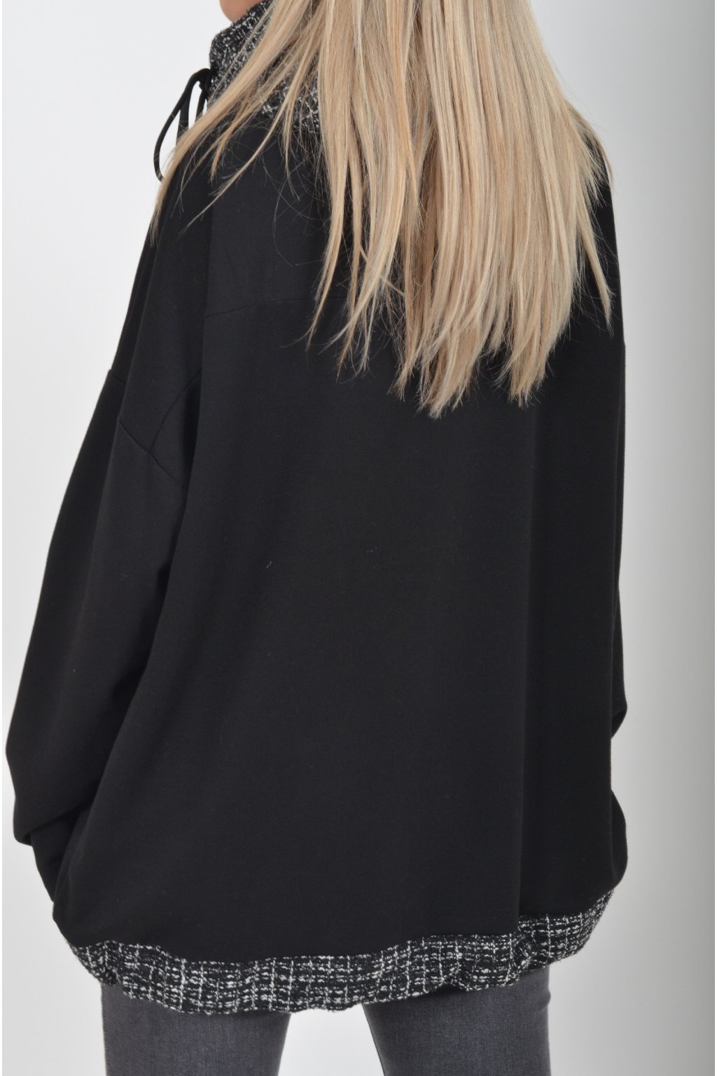 Stylová mikina s ozdobnými lemem a kapucí. Je vyrobena z velice příjemného materiálu na dotek. Ve spodní části má zapracovanou tkaničku, která slouží k libovolnému stažení. Hodí se jak k džínům, tak i k legínám. Heboučký materiál zaručí příjemně strávený den.