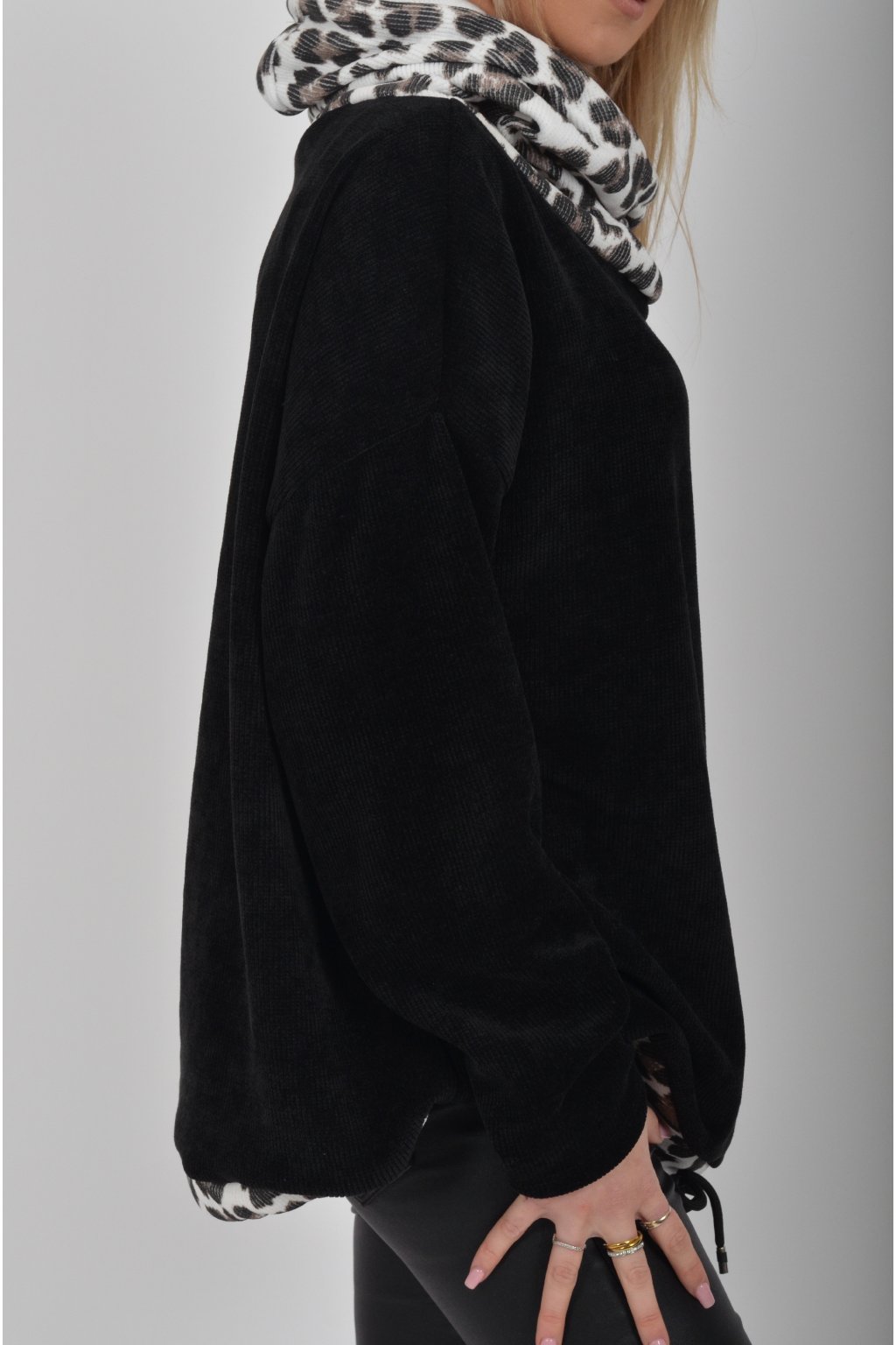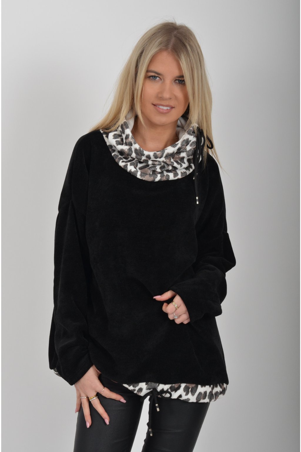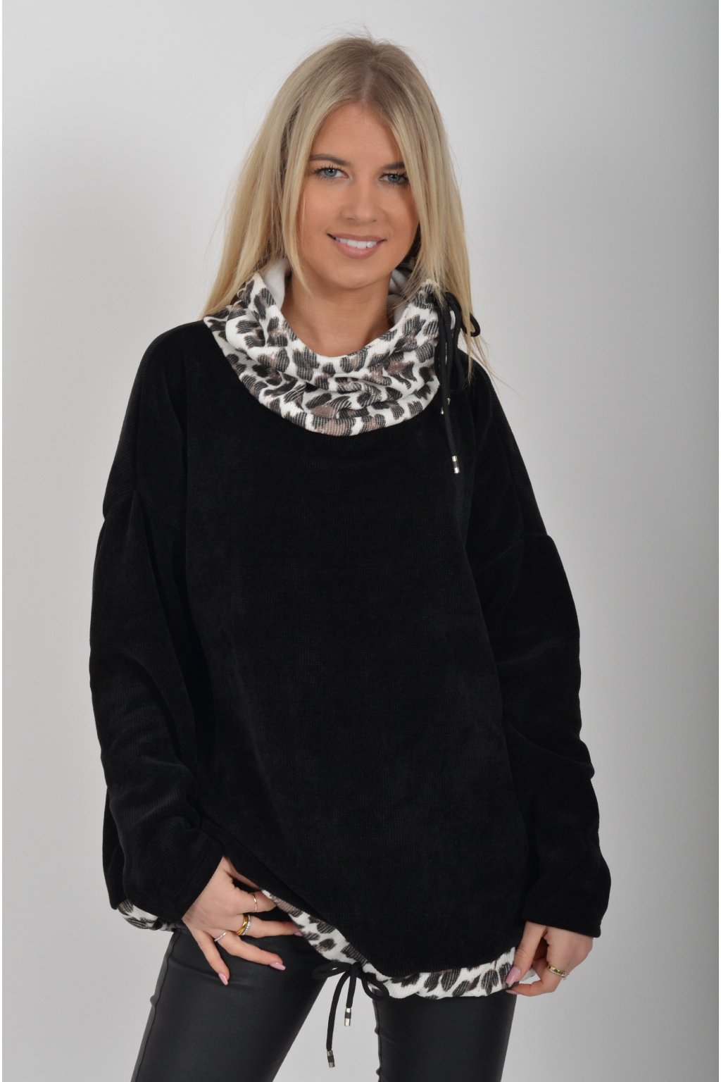 Stylová mikina s ozdobnými lemem a kapucí. Je vyrobena z velice příjemného materiálu. Ve spodní části má zapracovanou tkaničku, která slouží k libovolnému stažení. Hodí se jak k džínům, tak i k legínám. Heboučký materiál zaručí příjemně strávený den.