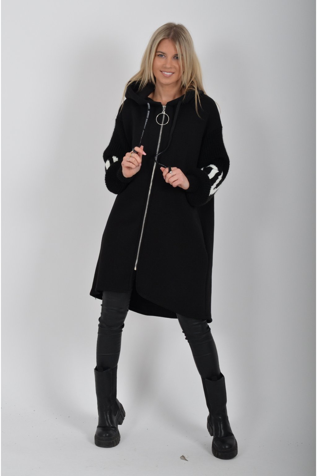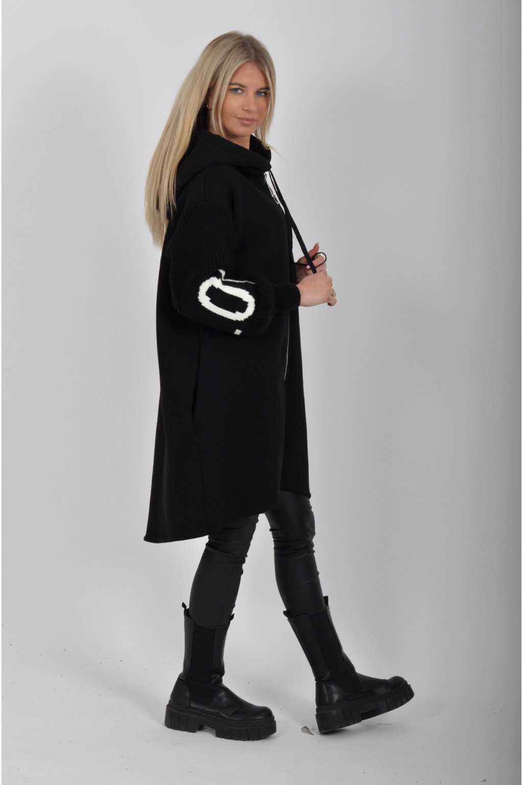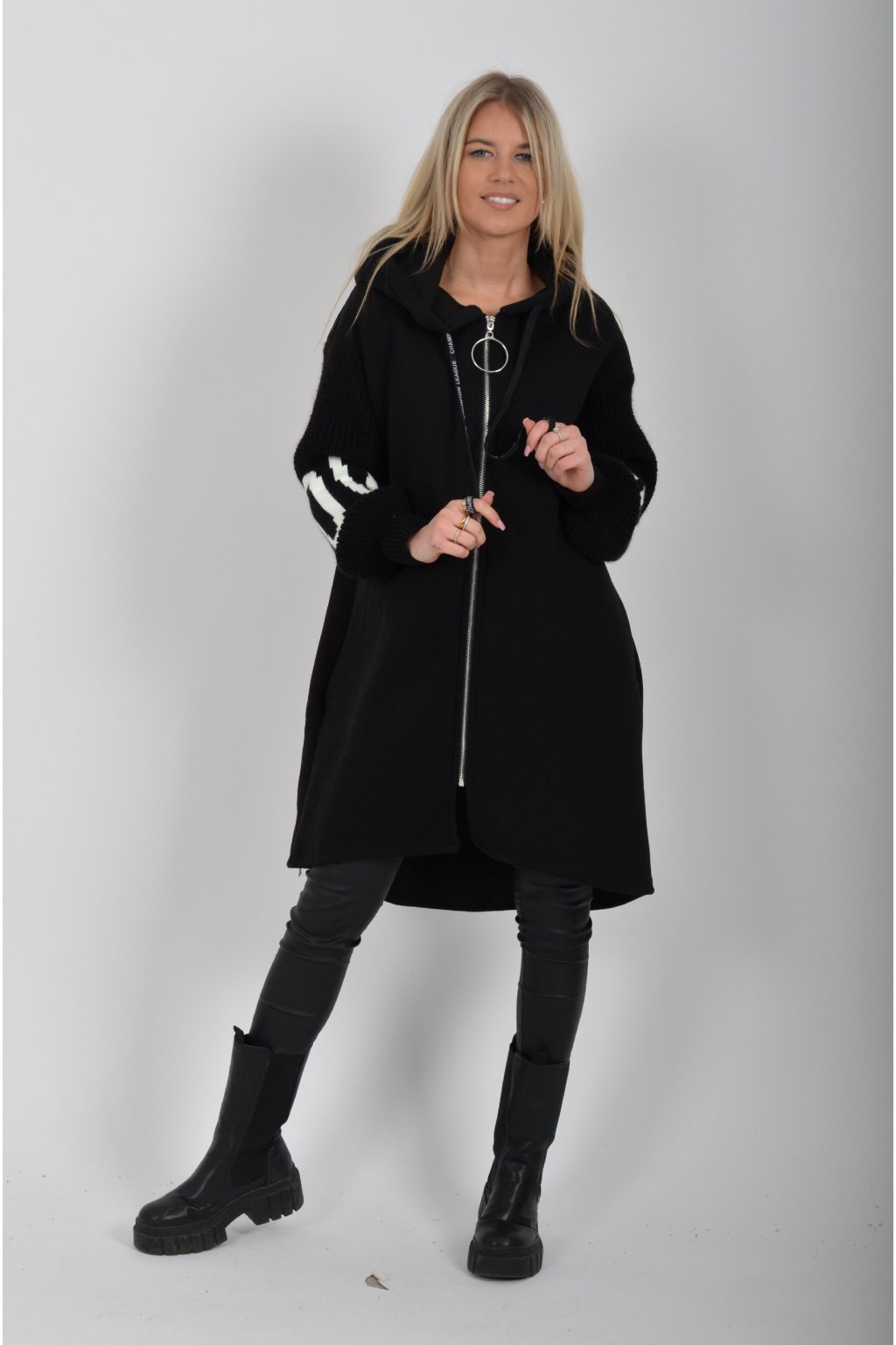 Mikina na zip s kapucí, dlouhým rukávem a kapsami na bocích. Mikina má pletené rukávy a v zadní části stříbrnou aplikaci. Je vyrobena z velice příjemného a kvalitního materiálu.