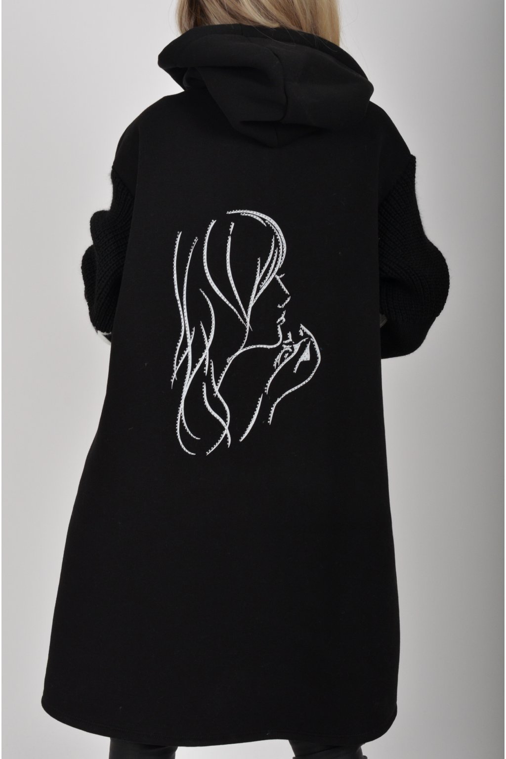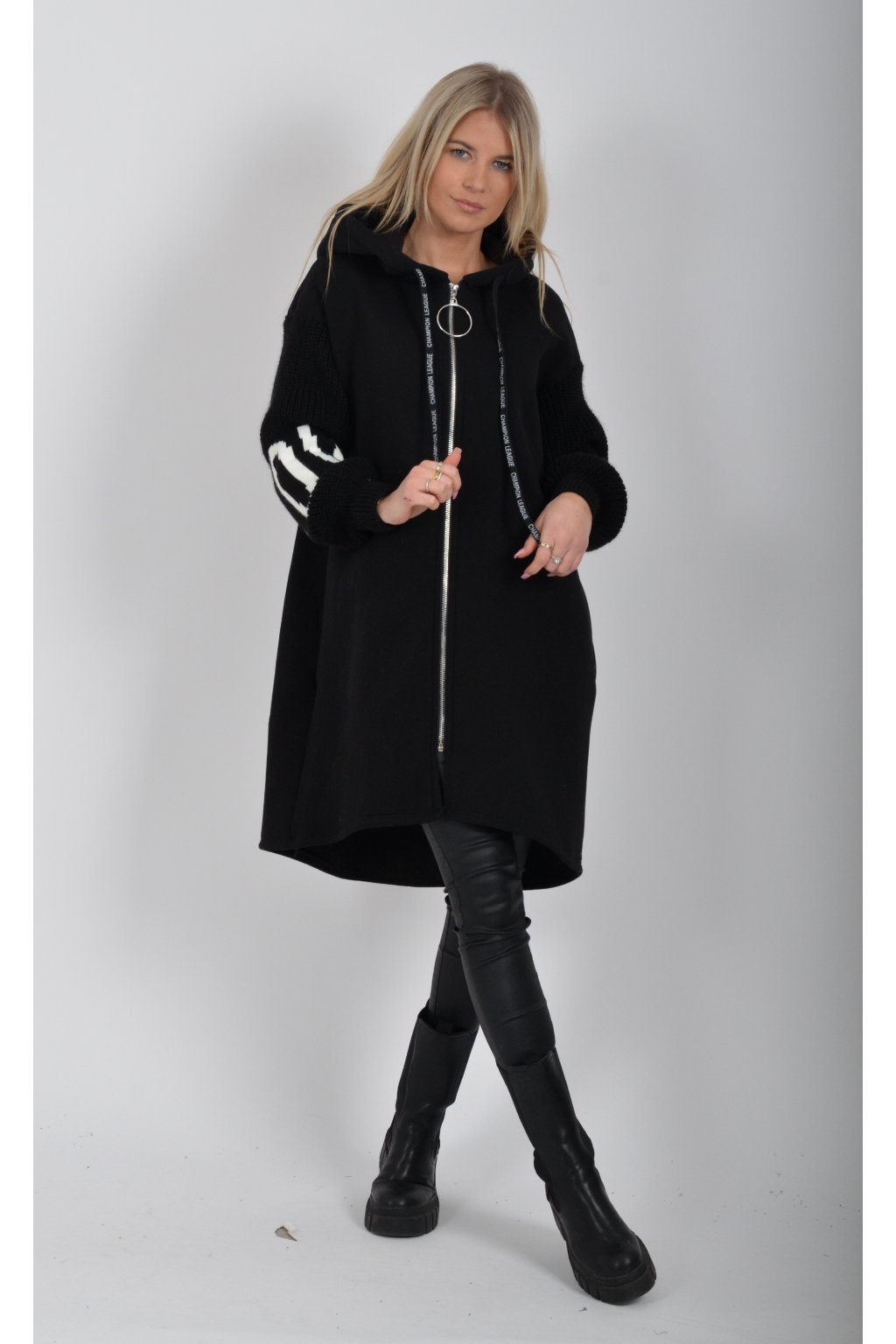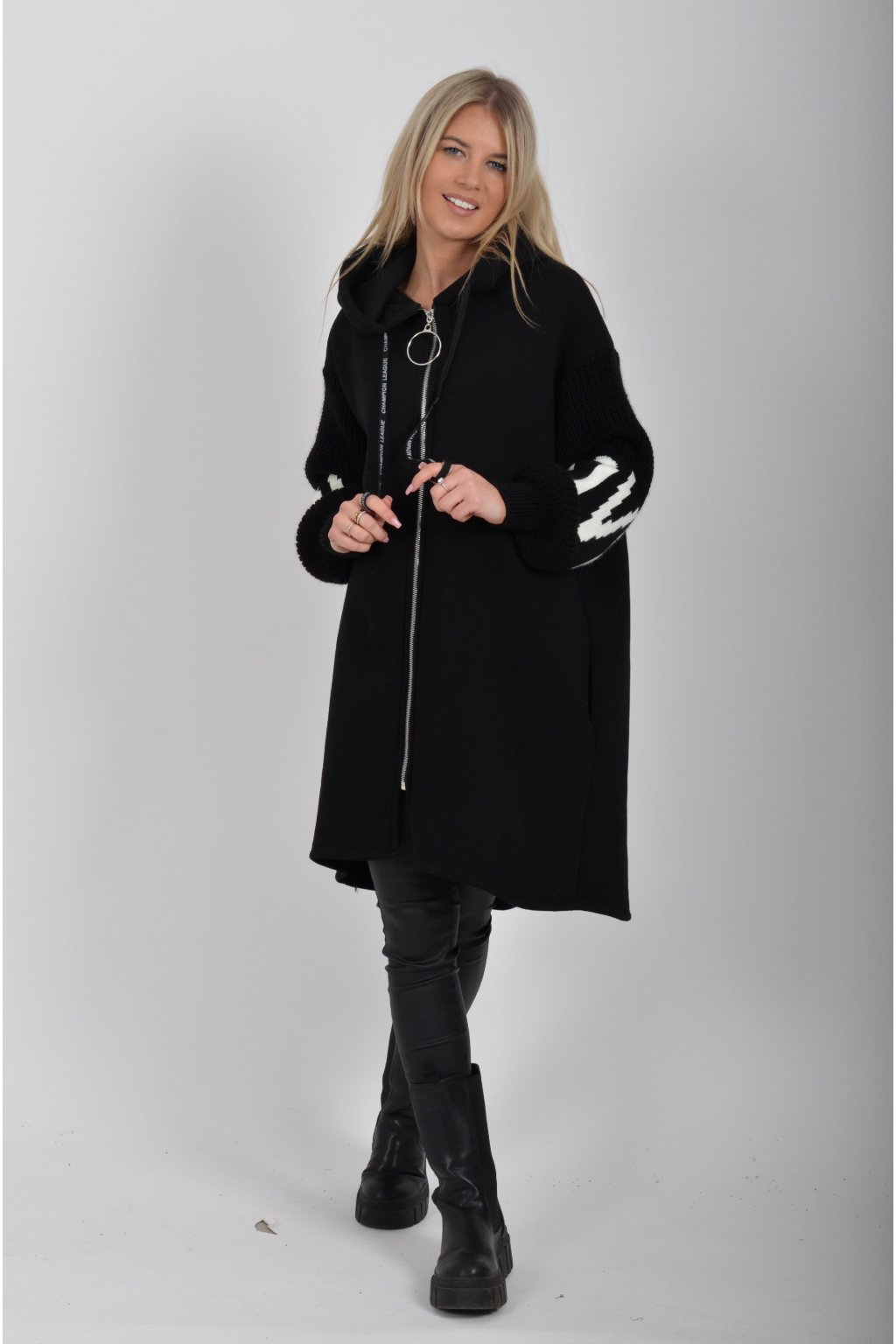 Mikina na zip s kapucí, dlouhým rukávem a kapsami na bocích. Mikina má pletené rukávy a v zadní části stříbrnou aplikaci. Je vyrobena z velice příjemného a kvalitního materiálu.