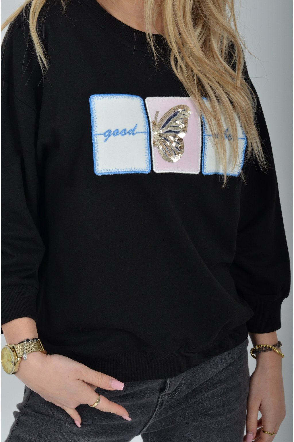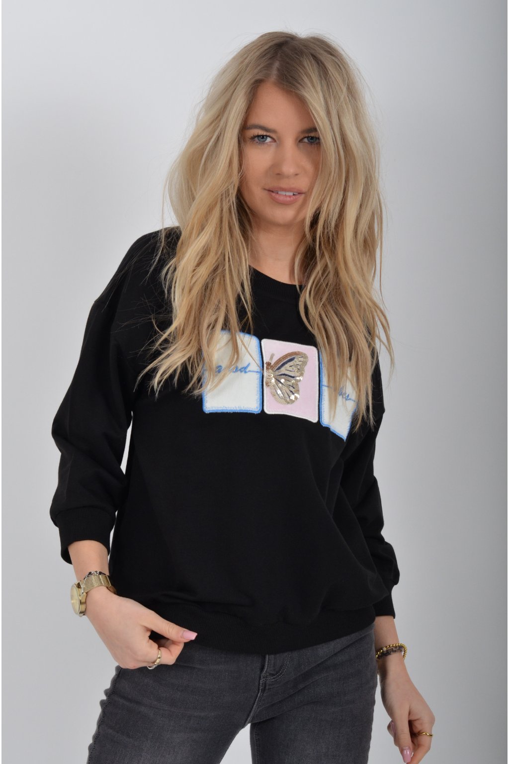 Mikina turecké značky Megi s 3/4 rukávem, a vyšívaným vzorem. Je ideální pro nošení do jarního počasí. Je vyrobena z velice příjemné a kvalitnáí turecké bavlny. Ve spodní části je do rantlu.